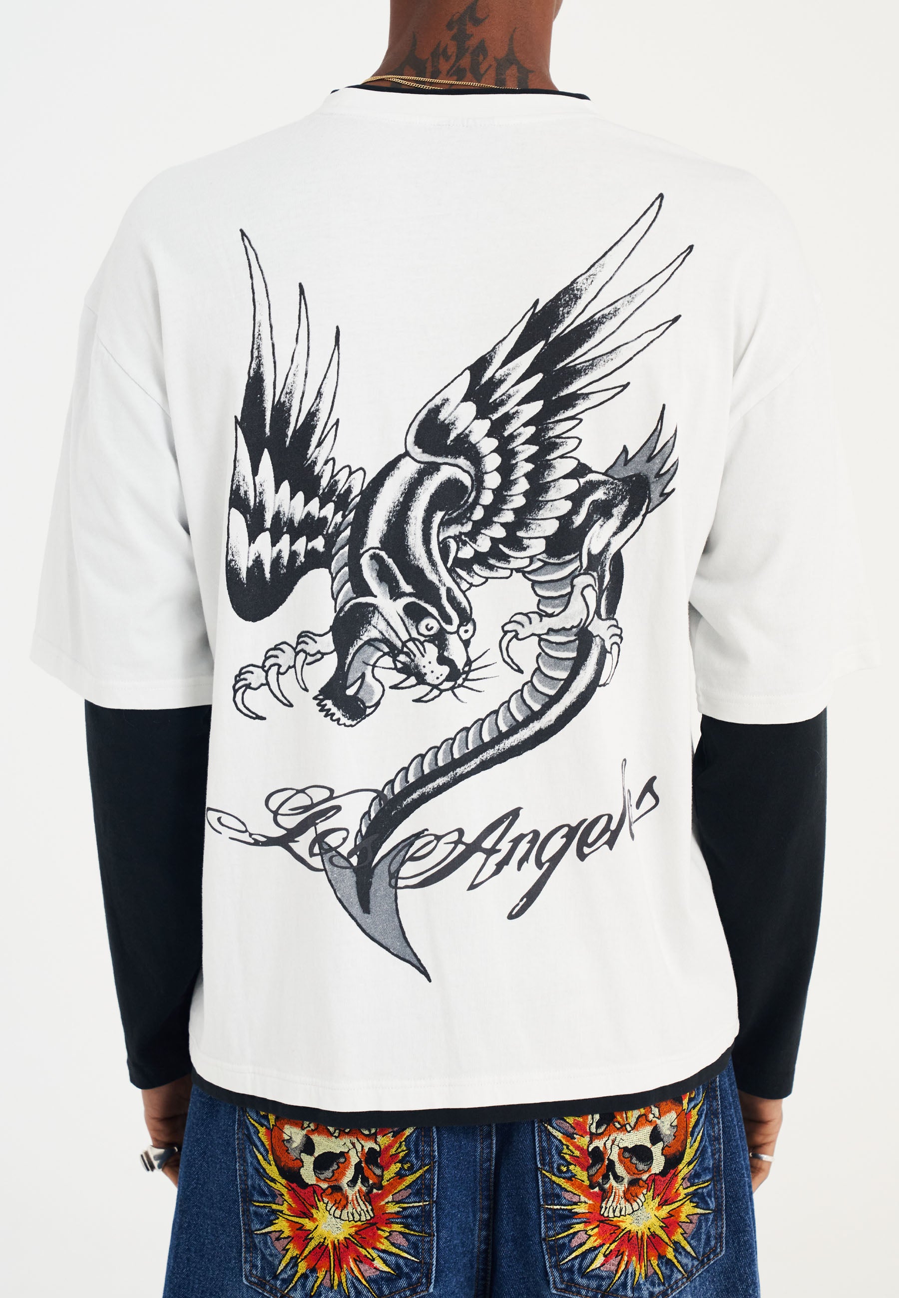 Featuring a powerful panther and dragon graphic drawn from Ed’s legendary designs and a bold Gothic logo across the chest, this tee channels the indomitable spirit of the brand.