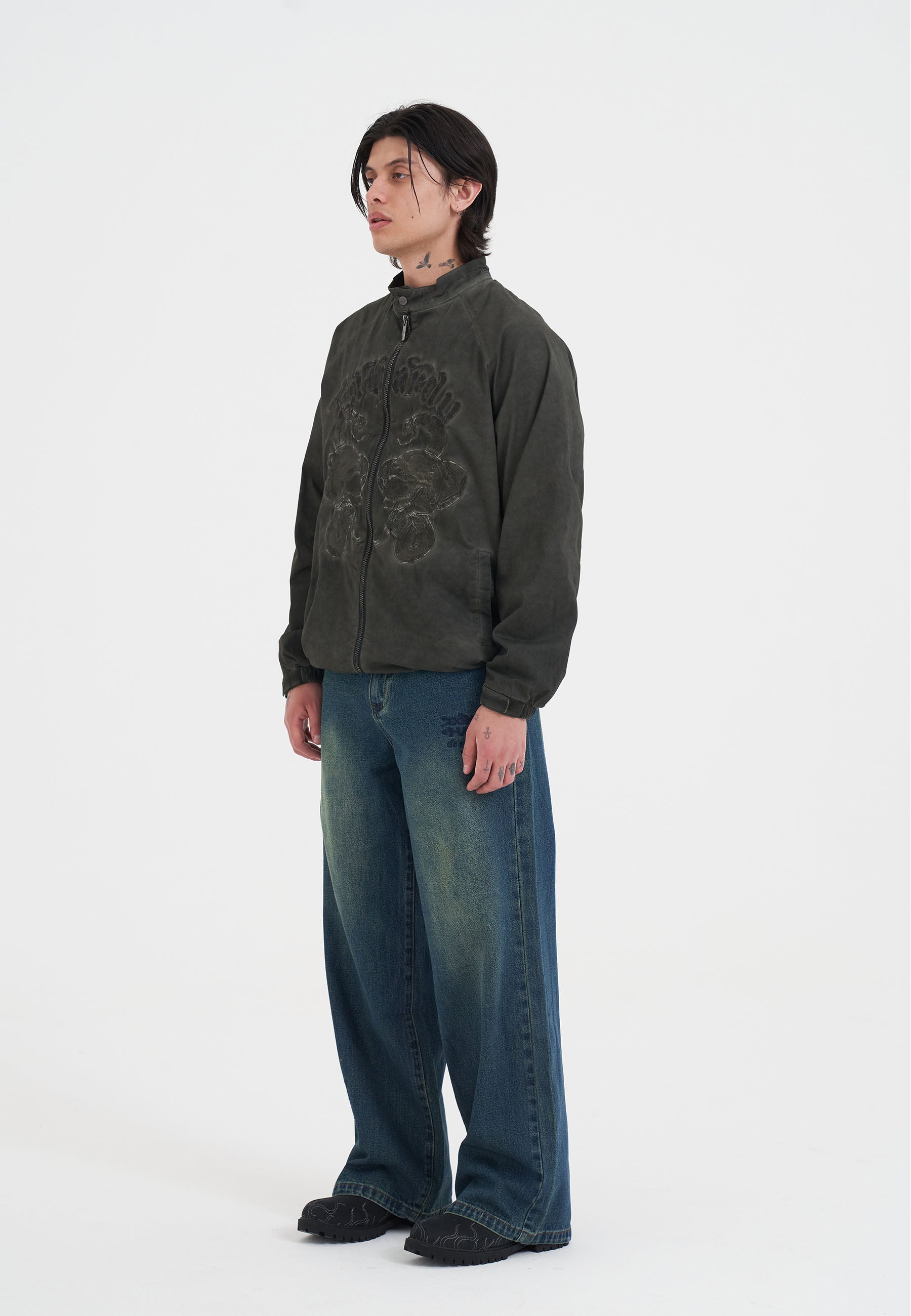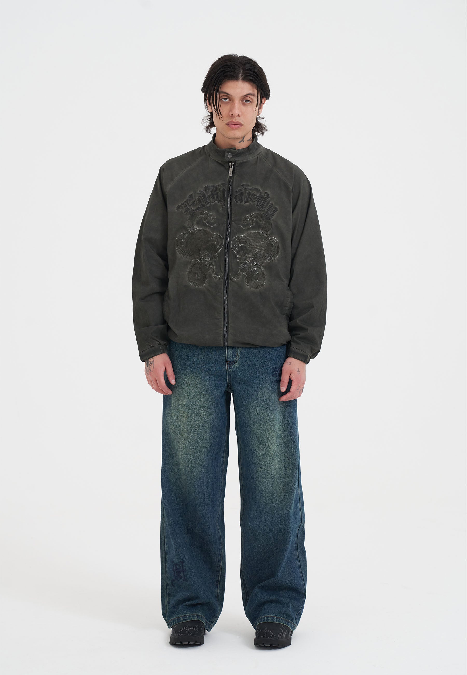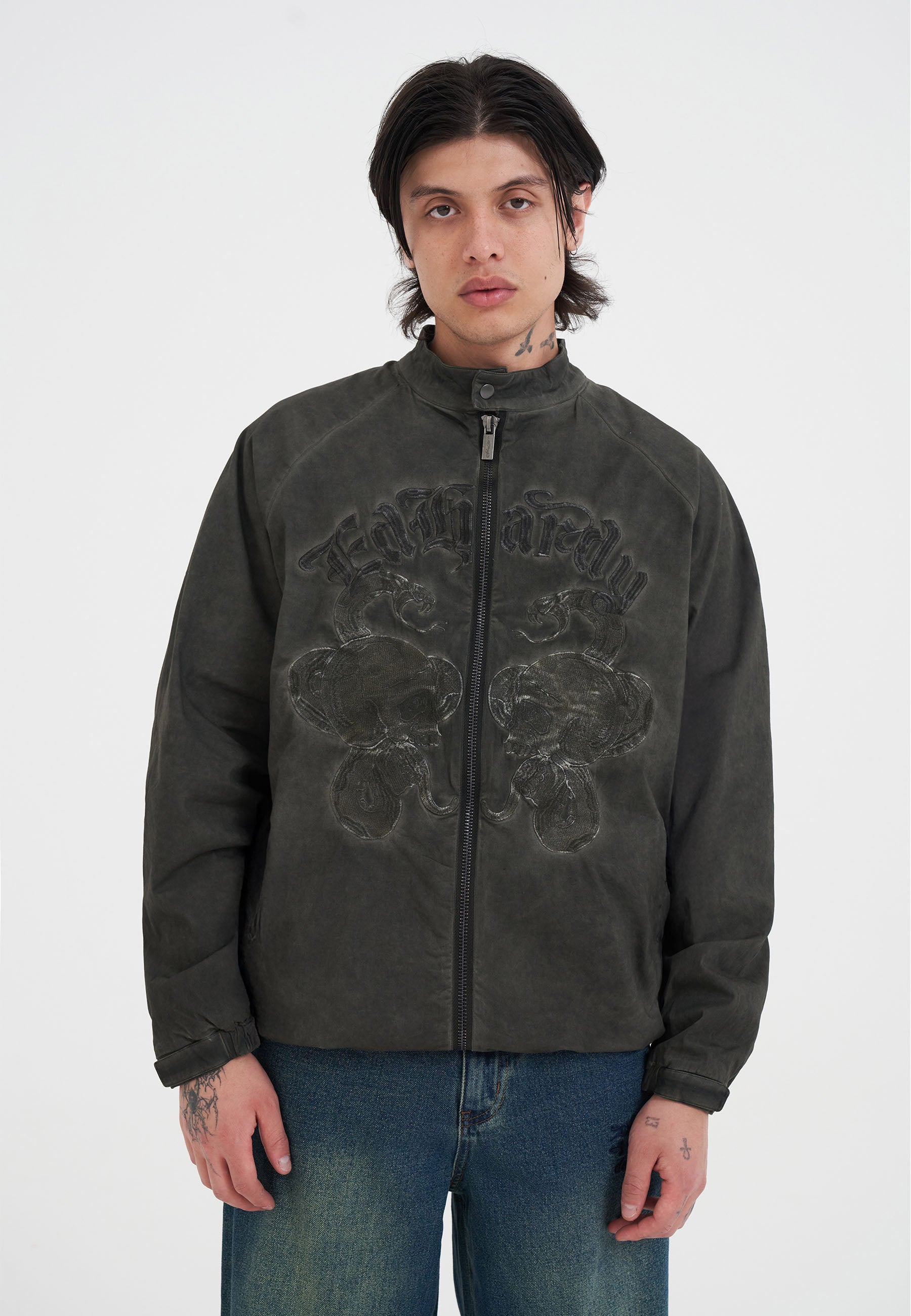 MENS SKULL AND SNAKE POLY JACKET in Green