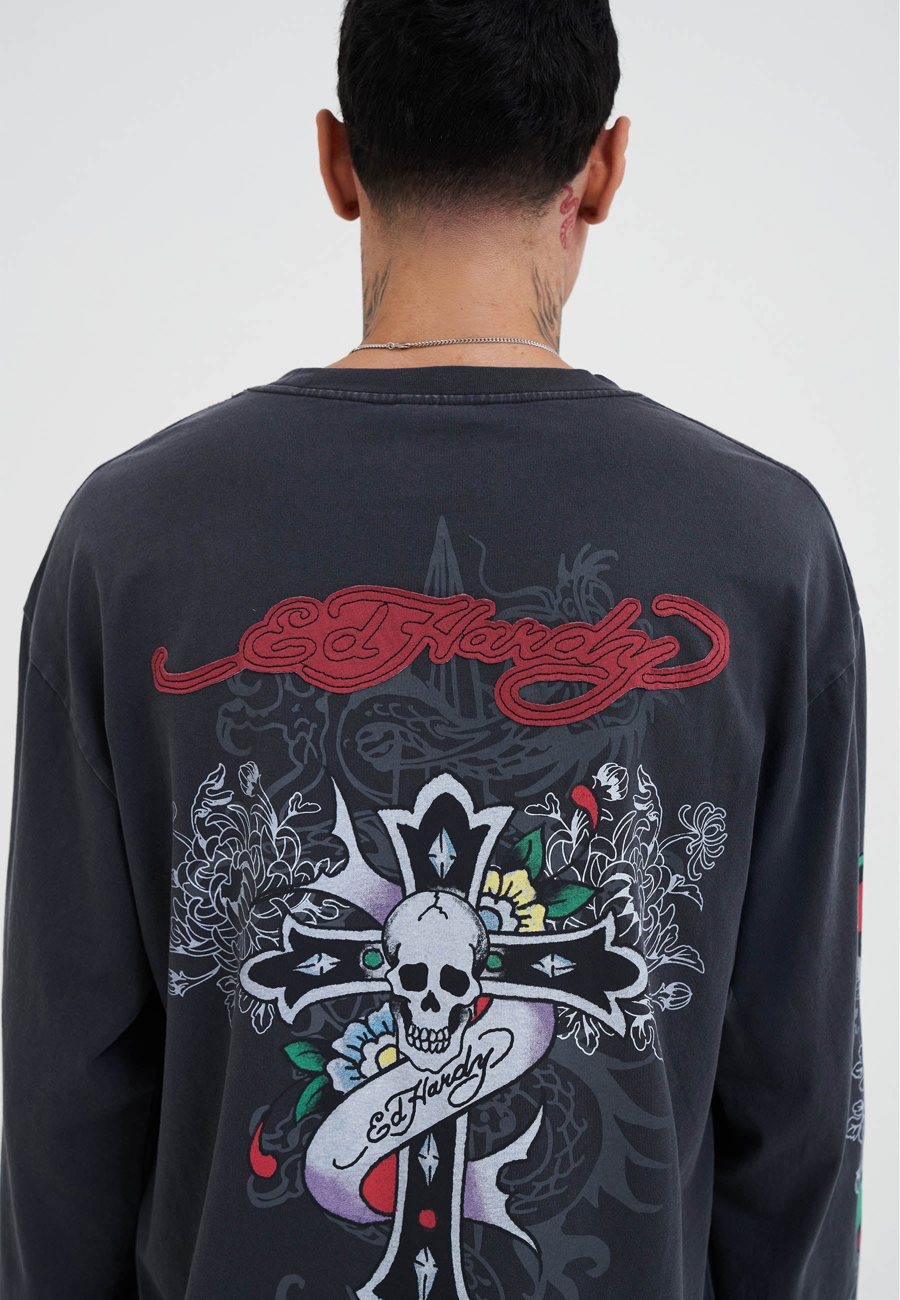 SKULL CROSS ABSTRACT LONG SLEEVE T-SHIRT
