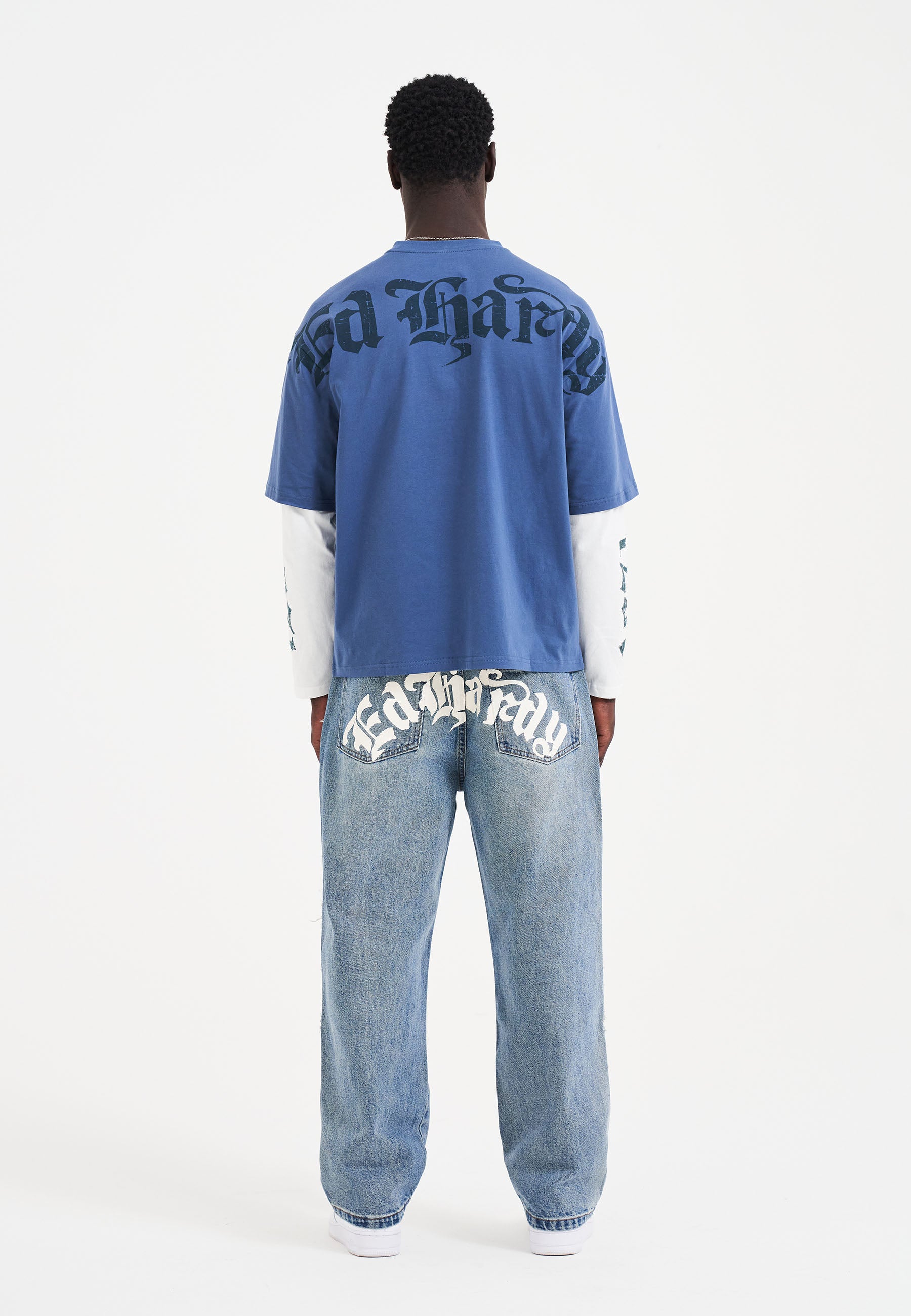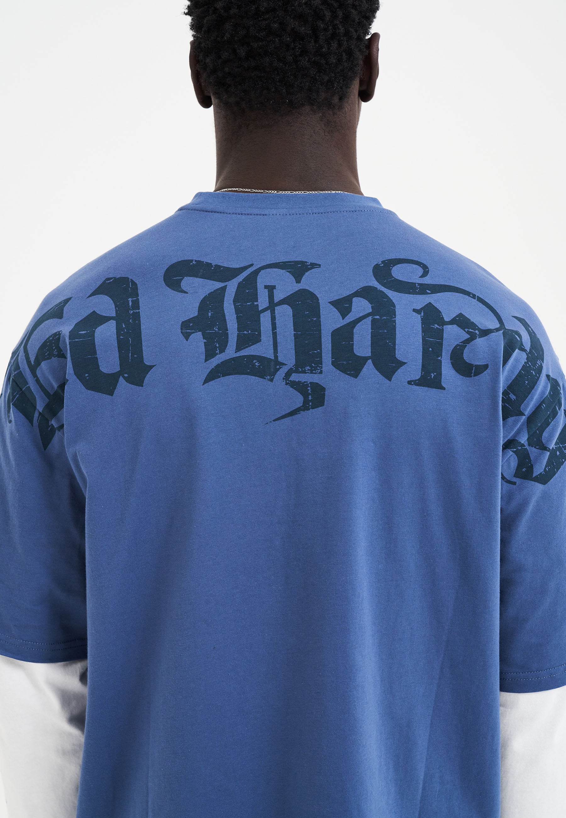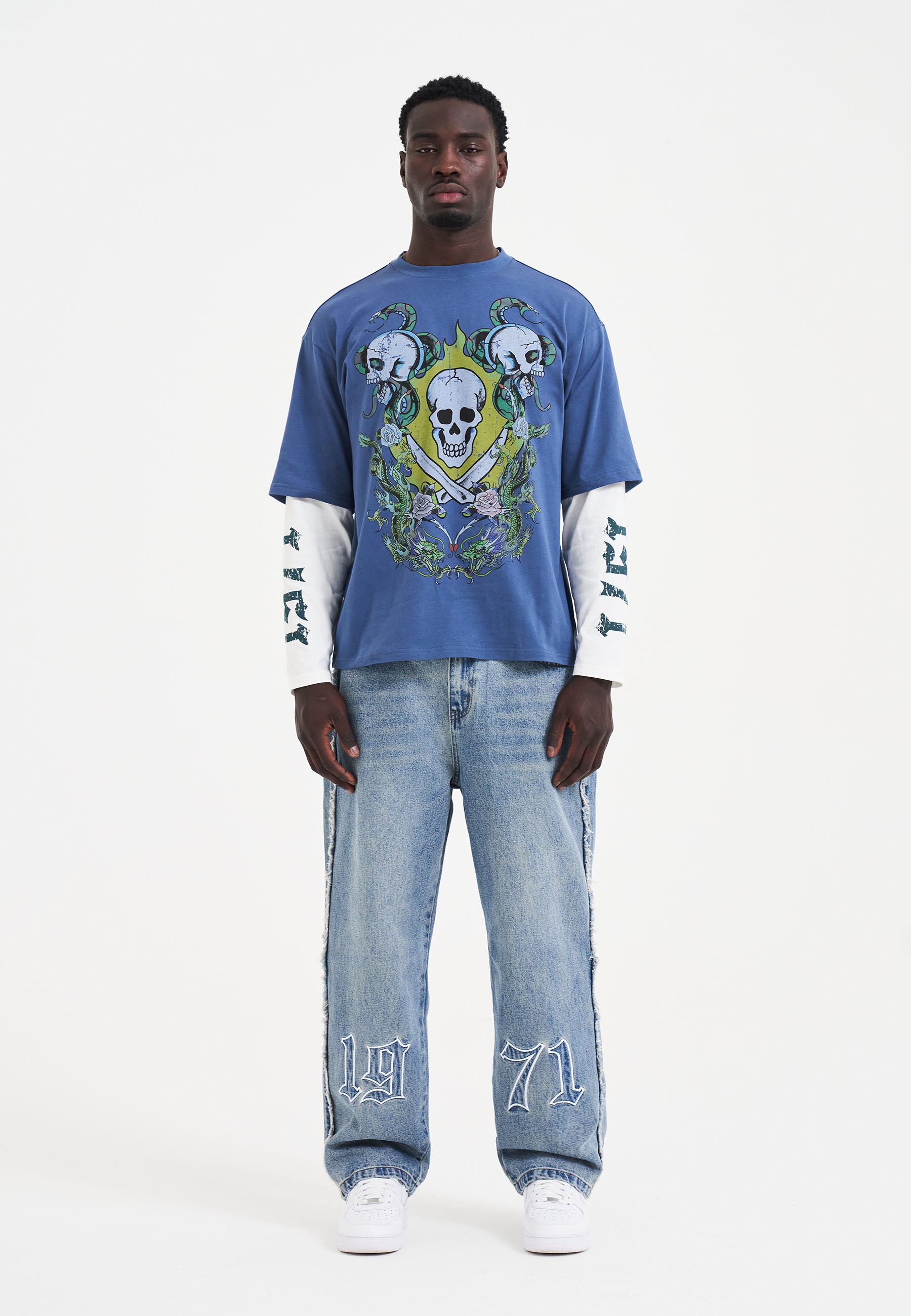 Mens Skull King Double Layer Long Sleeve Tshirt - Blue/White