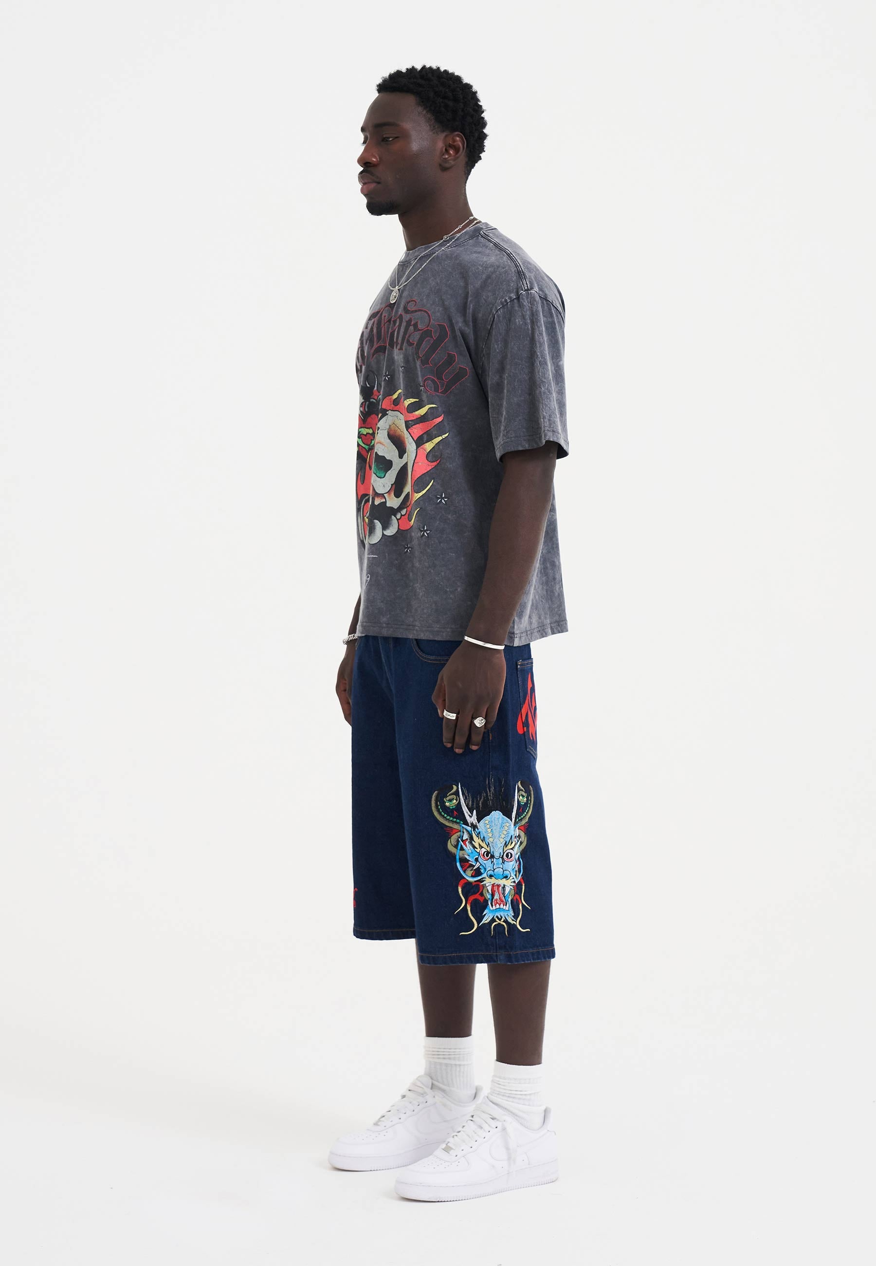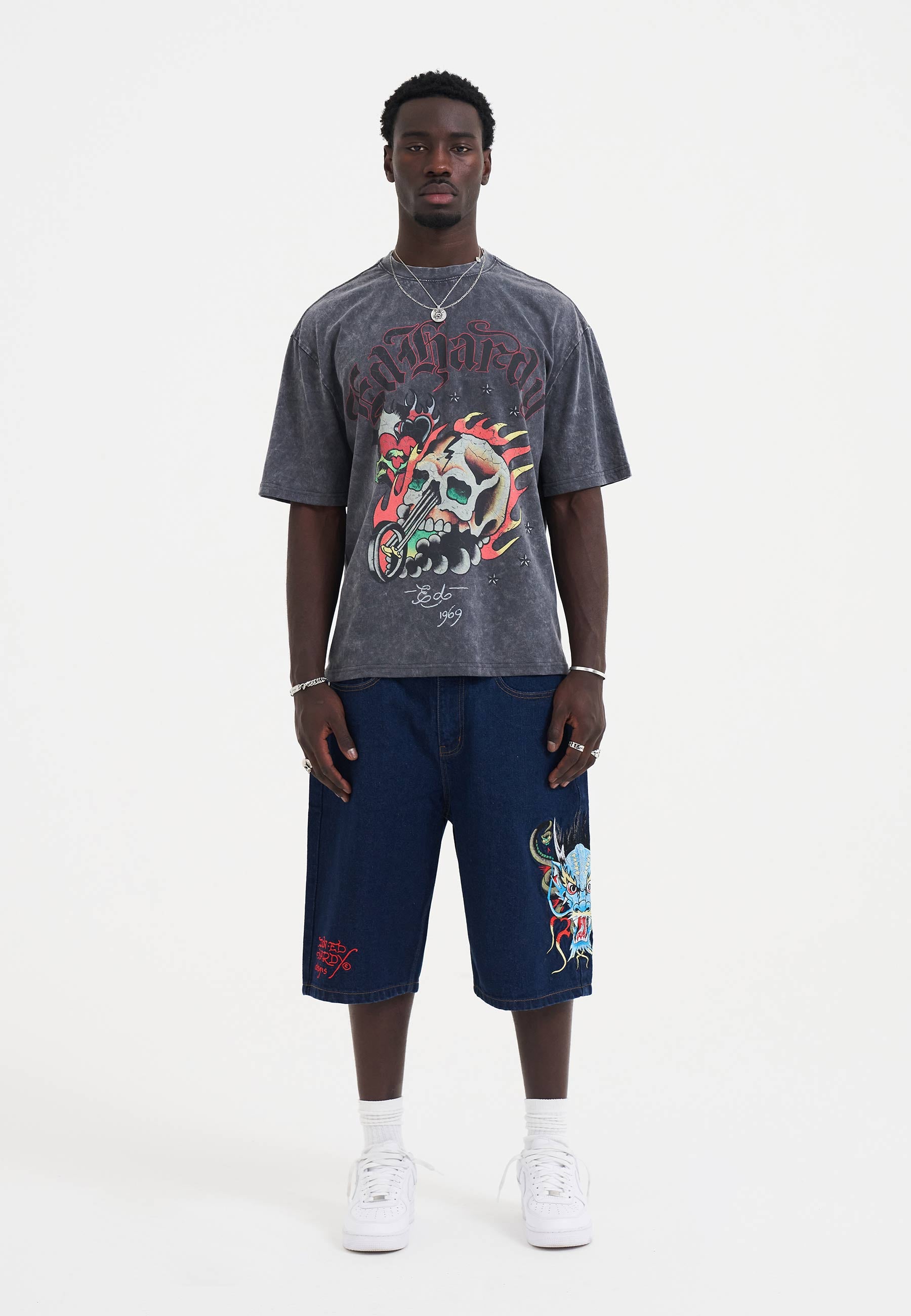 Mens Skull Out Of Hell Relaxed T-Shirt - Charcoal