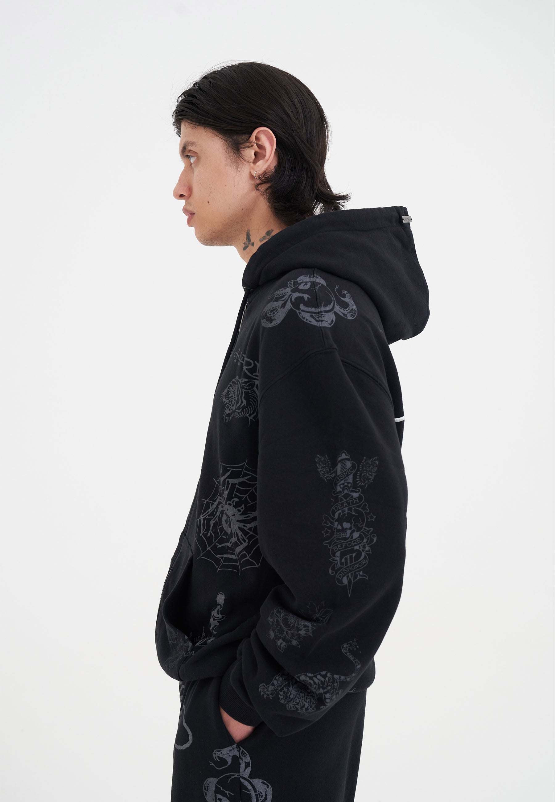 MENS TATTOO CLUB ZIP THRU HOODIE in Black