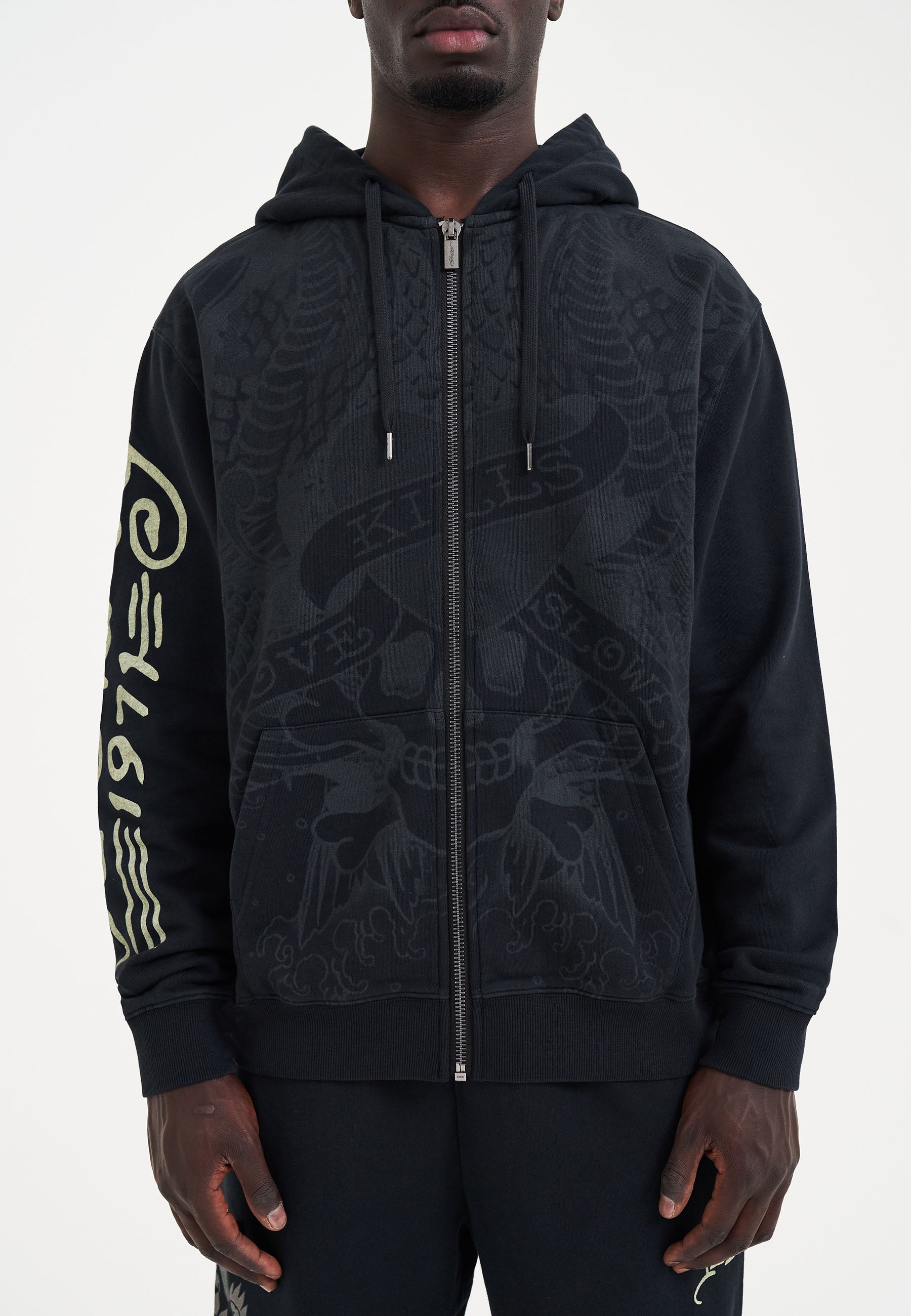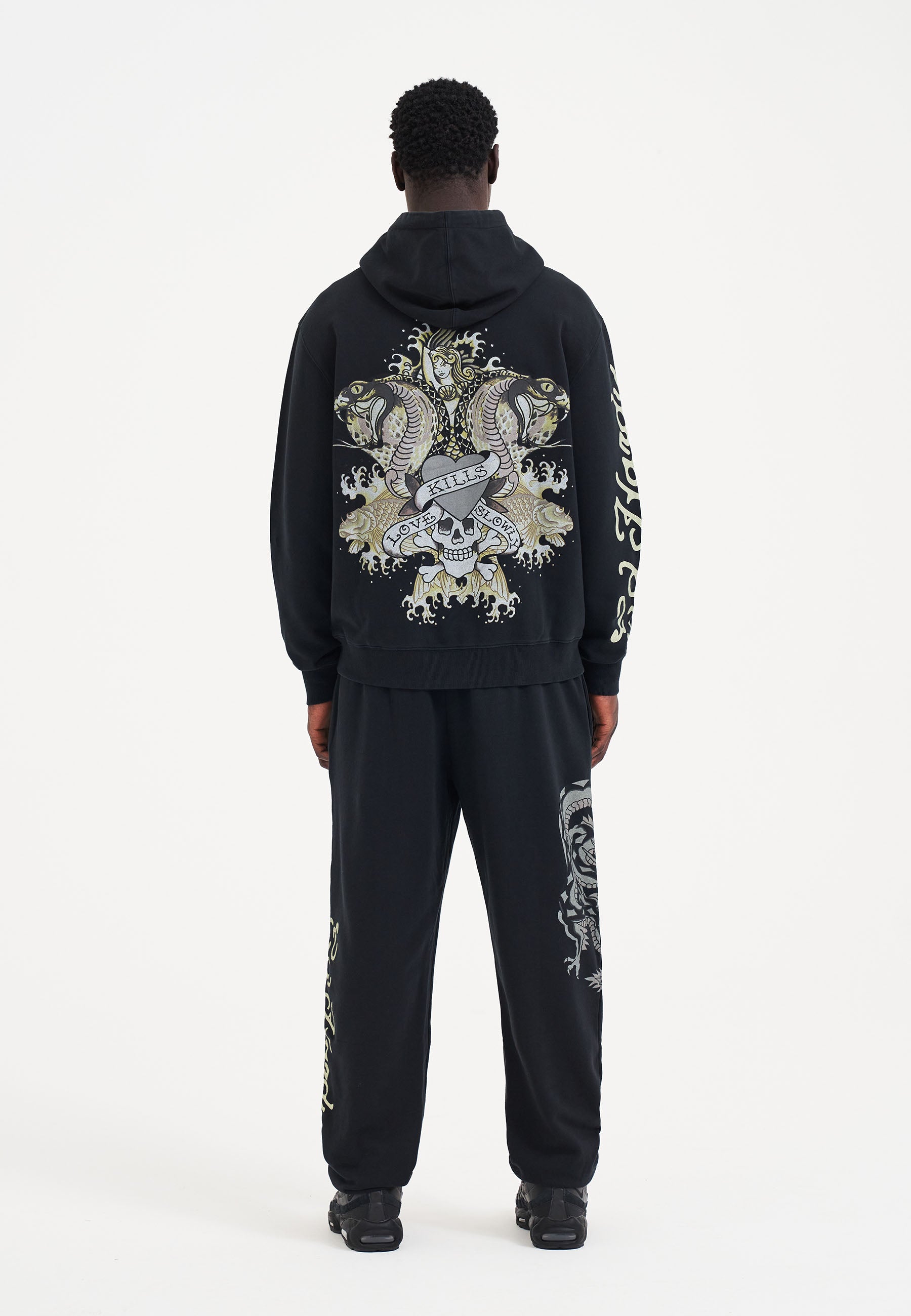 The 1871 Crawling Dragon Joggers pay tribute to Ed Hardy's influence across generations, celebrating his iconic artwork and designs.