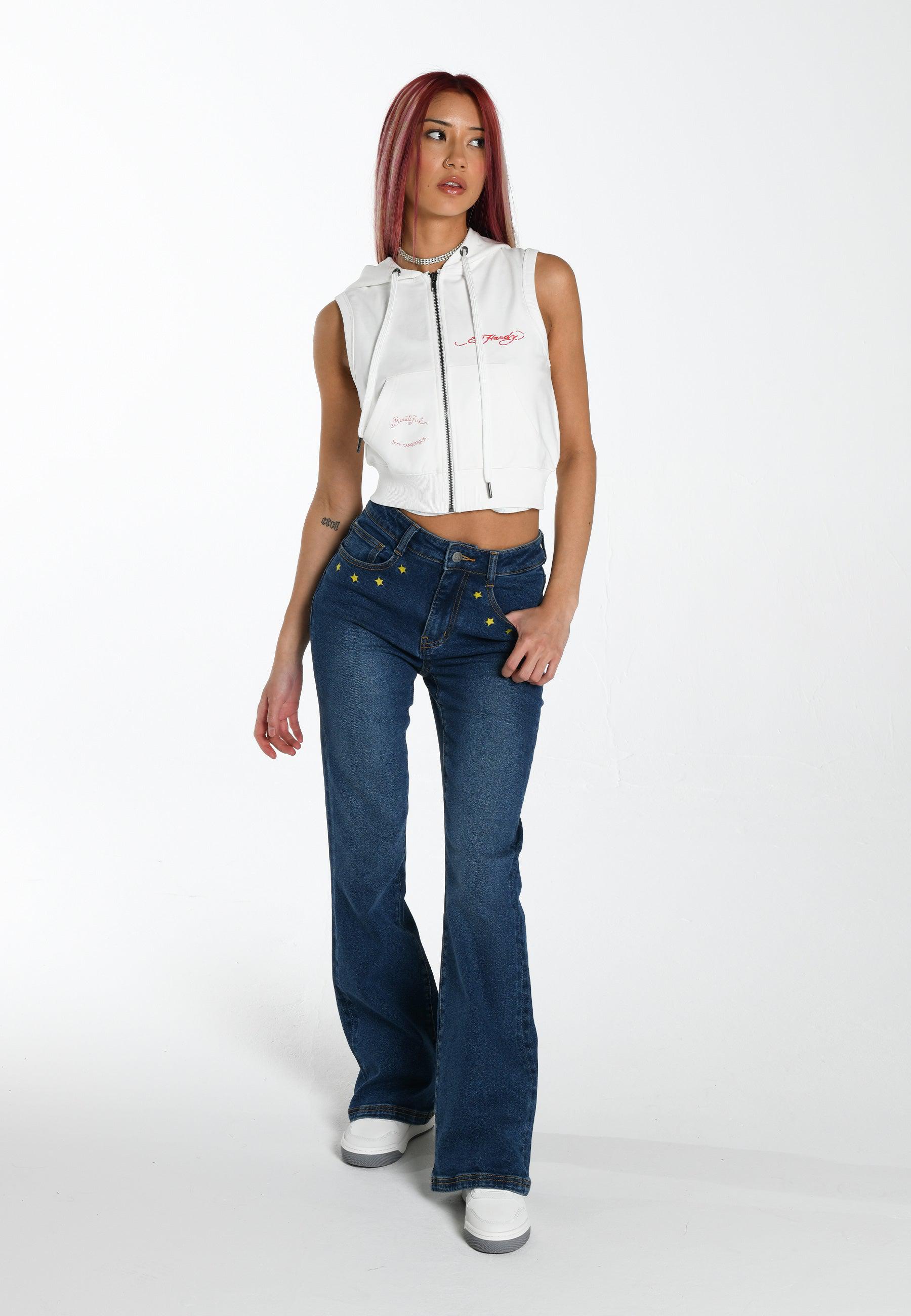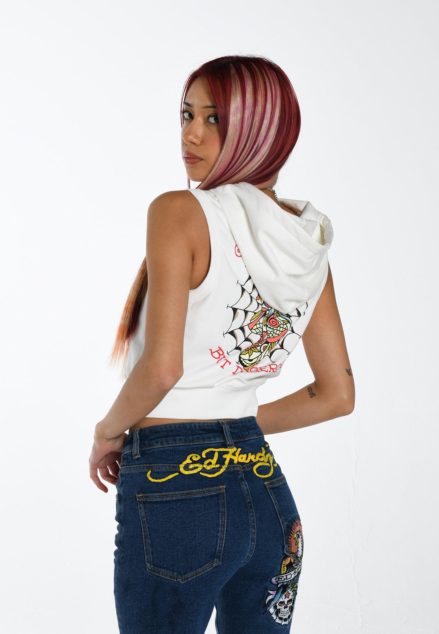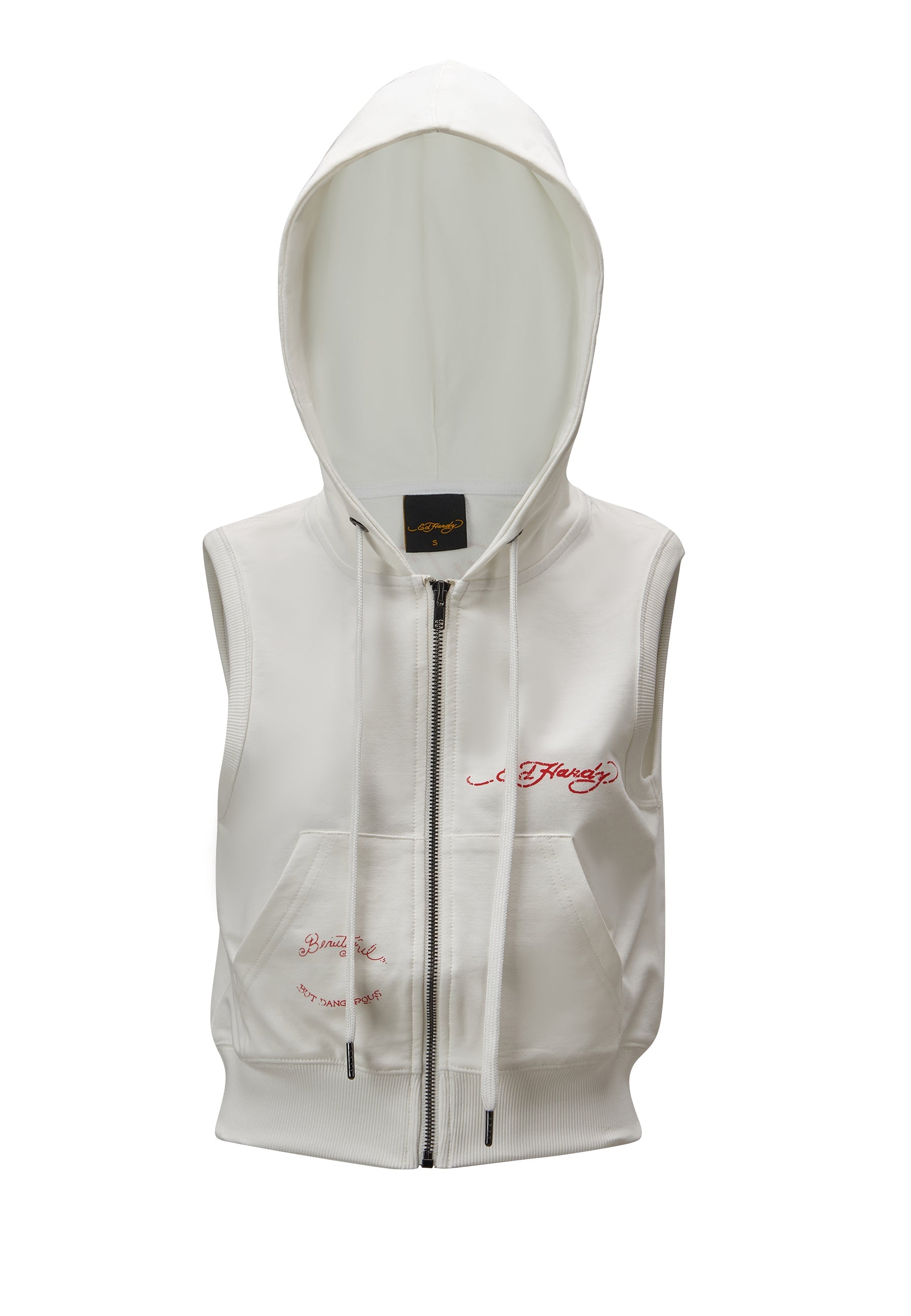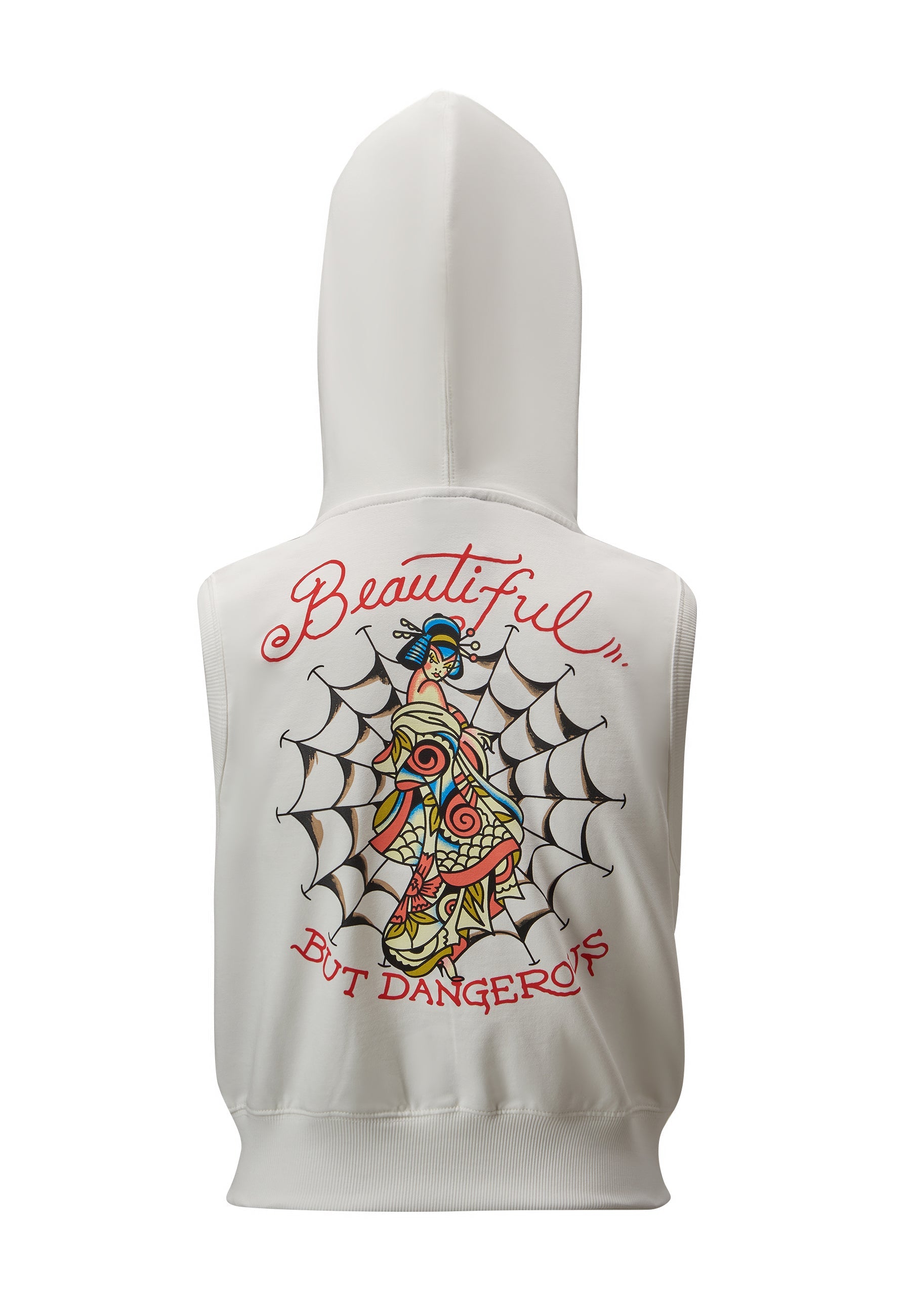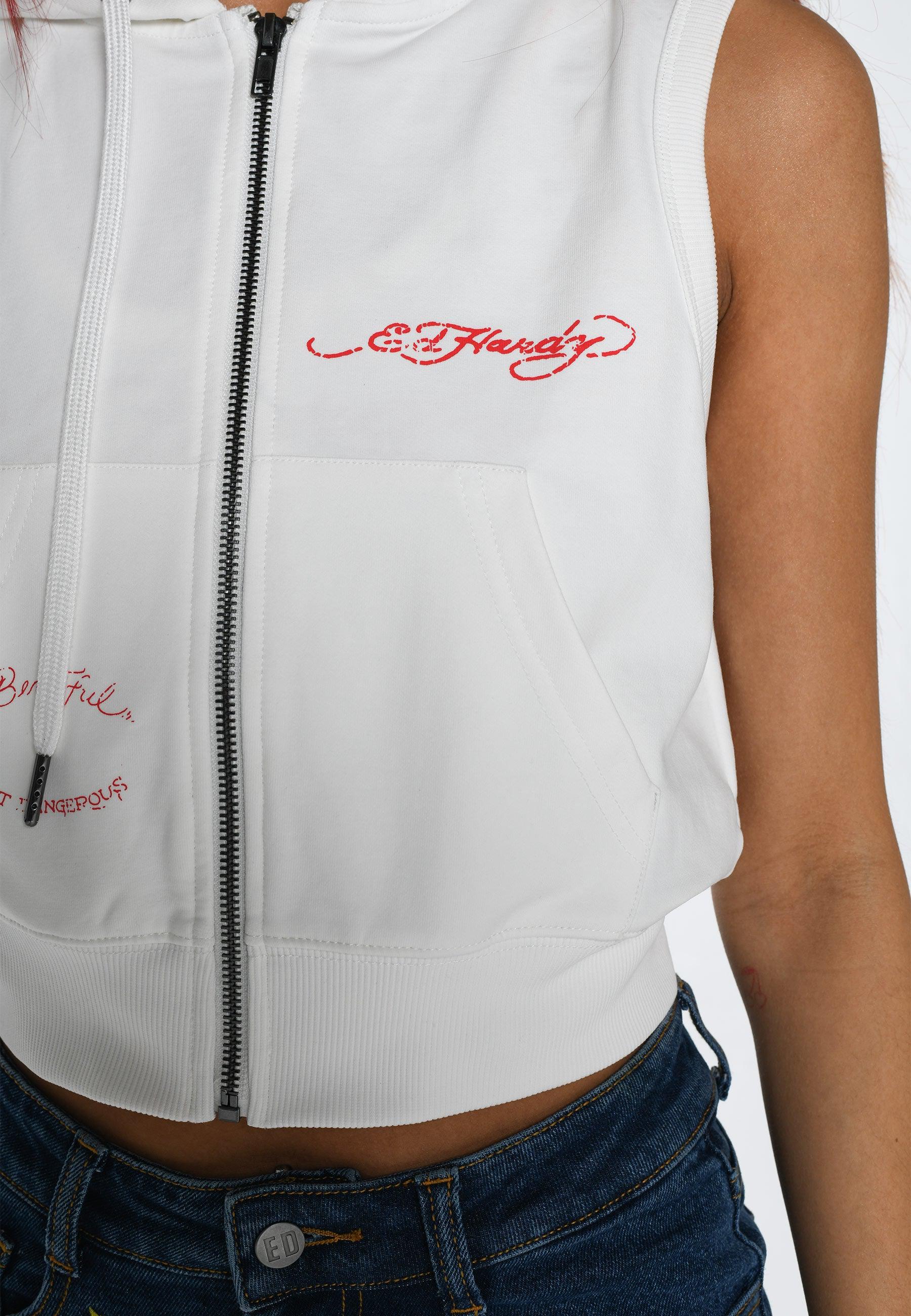 Smuk men farlig ærmeløs cropped hættetrøje til kvinder - hvid