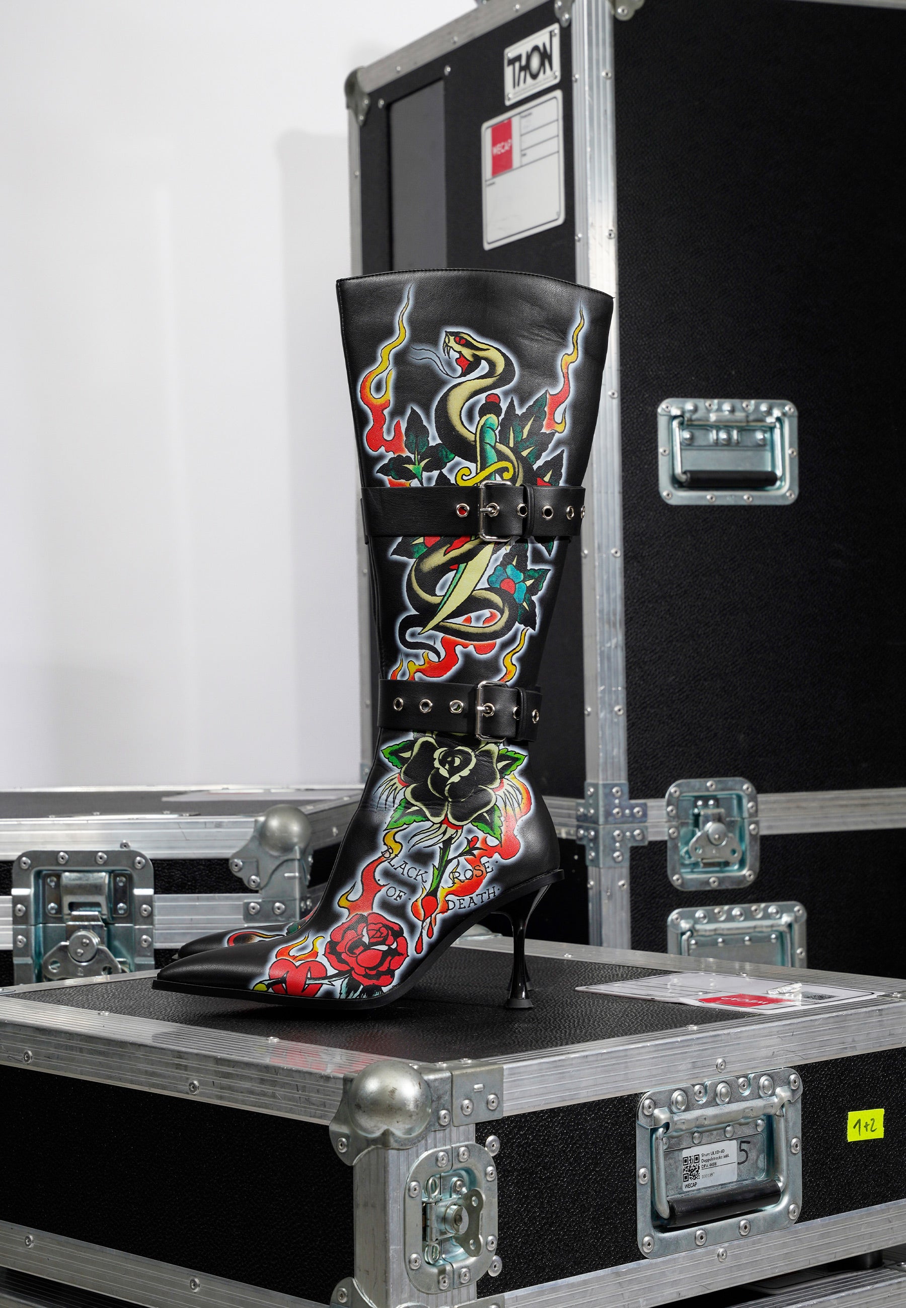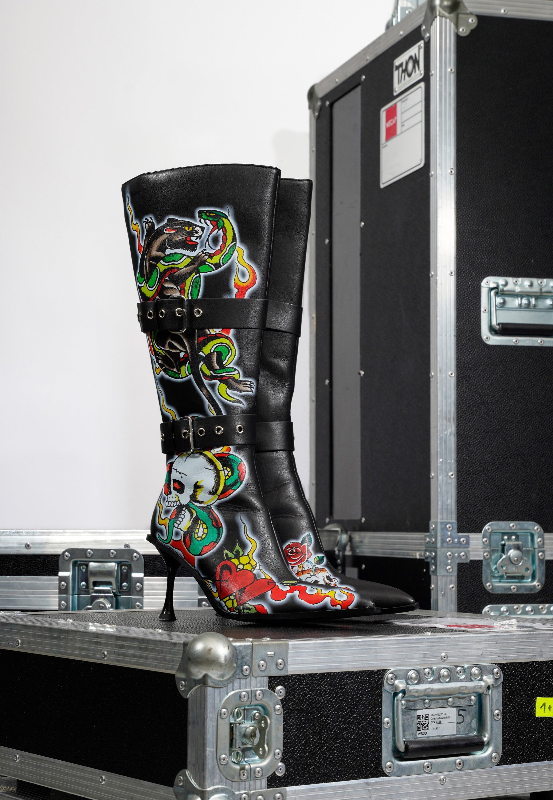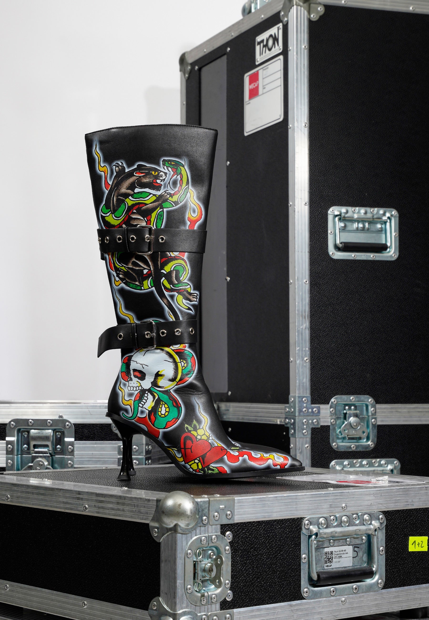 The Namilia x Ed Hardy Tattoo Belt Boots are for those who dare to be different.