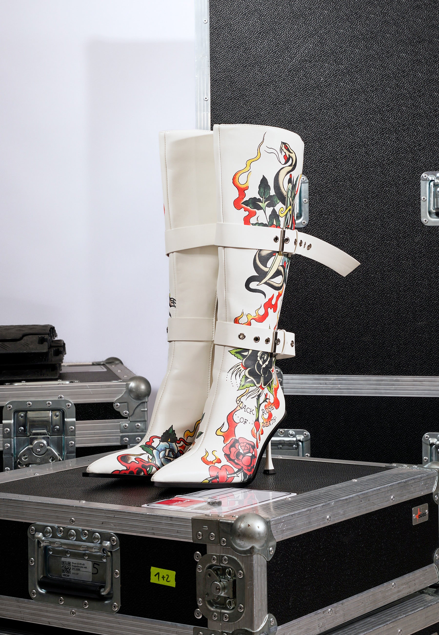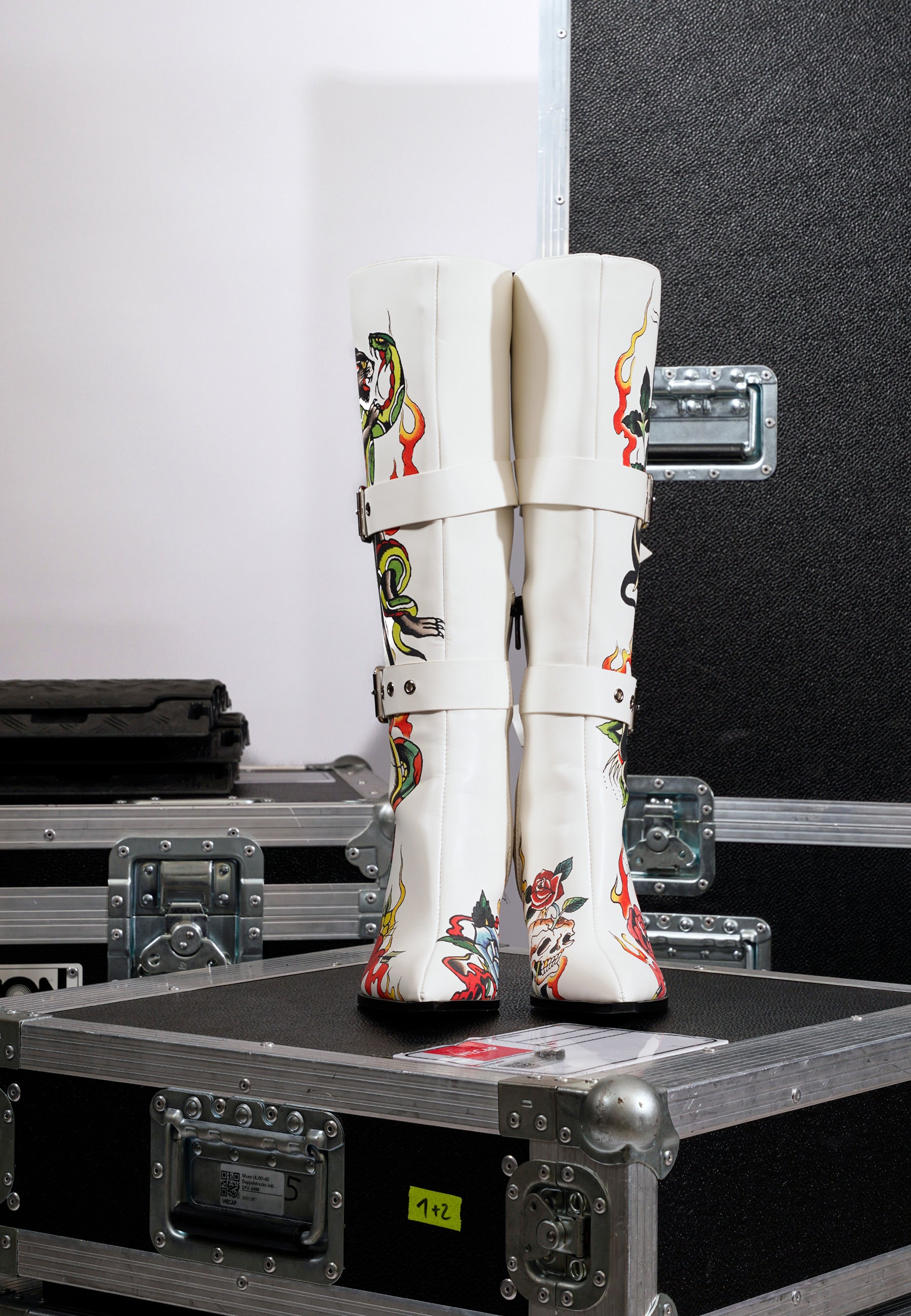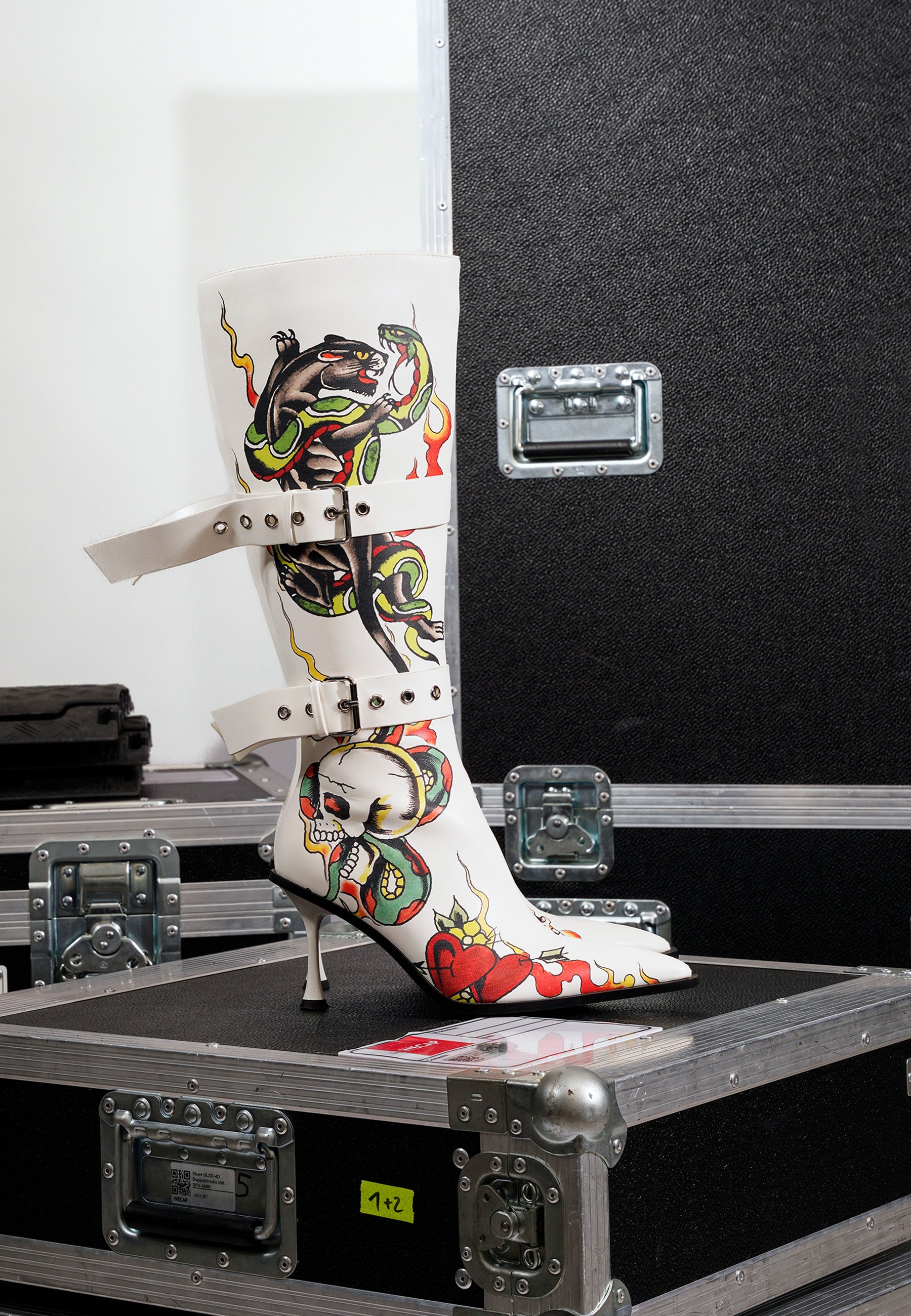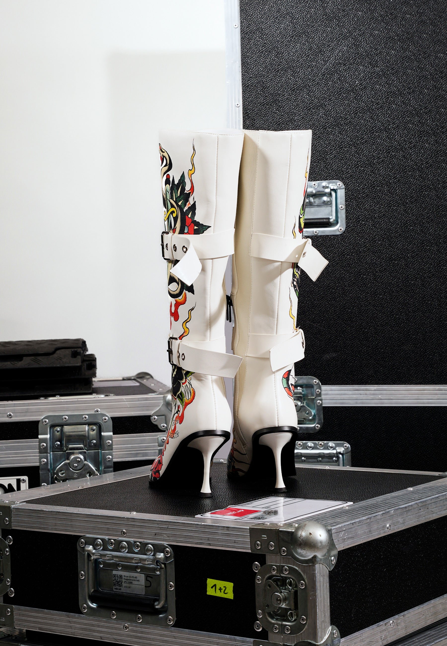 The Namilia x Ed Hardy Tattoo Belt Boots are for those who dare to be different.
