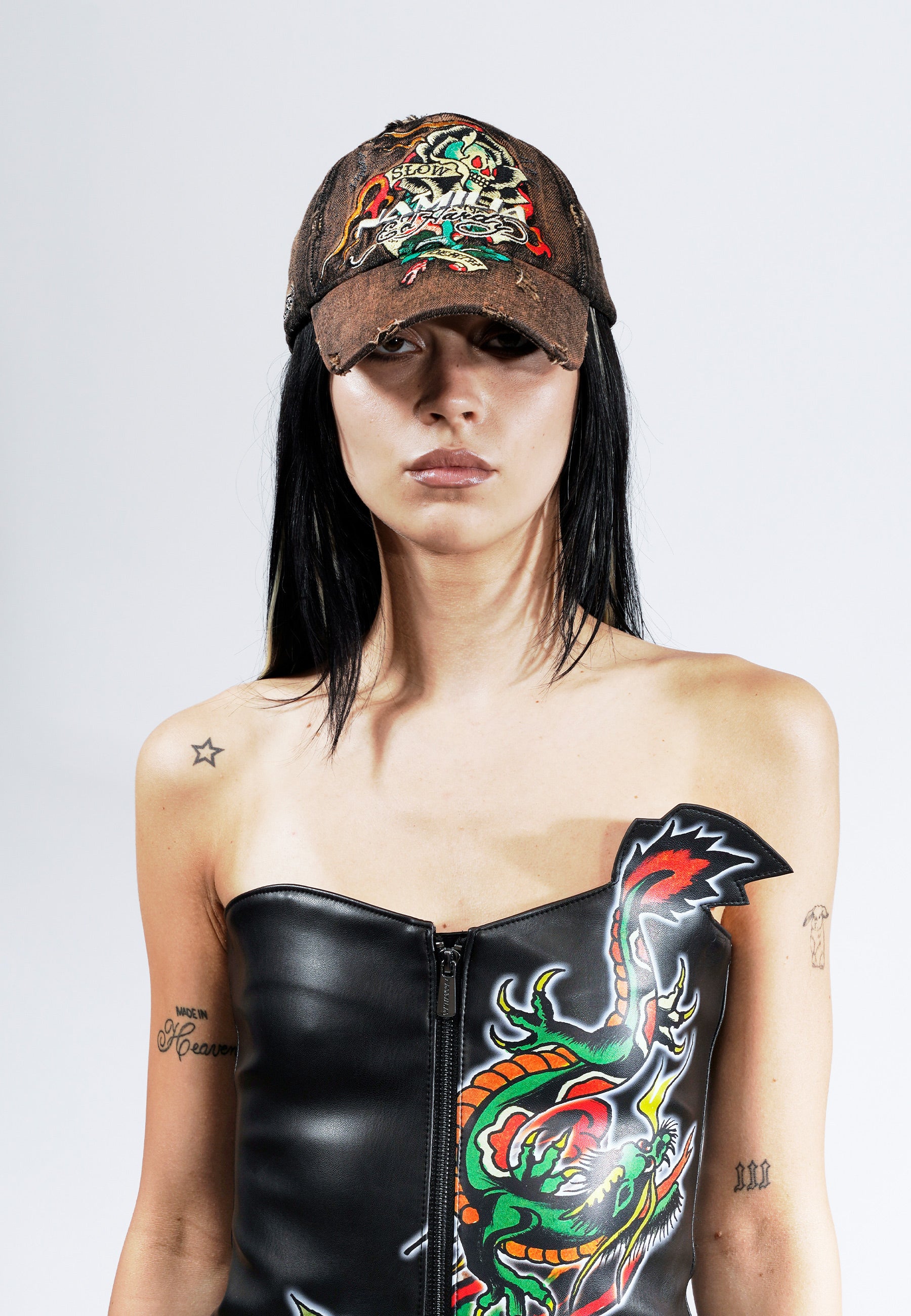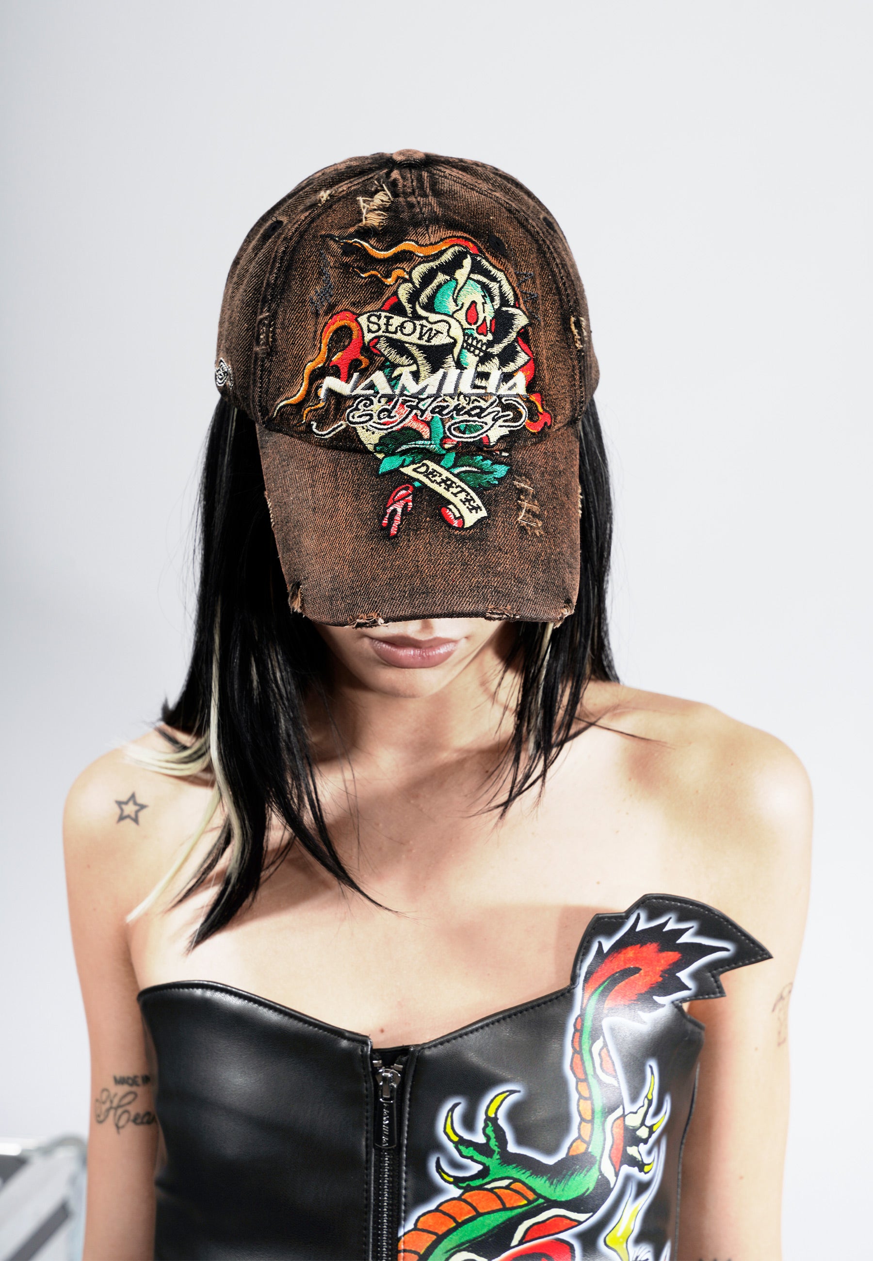 The Namilia x Ed Hardy Acid Wash Tattoo Cap is for those who live on the edge of fashion.