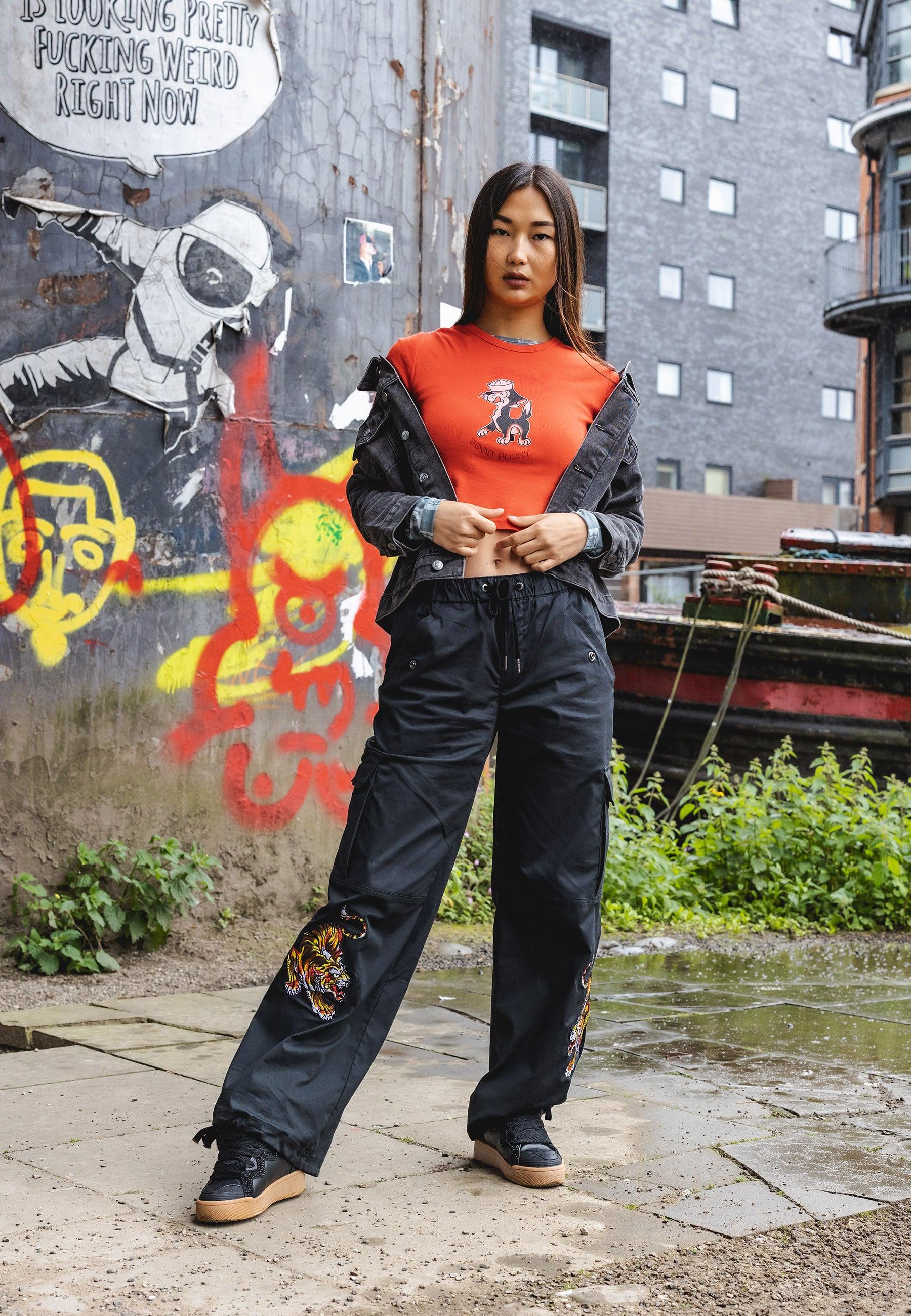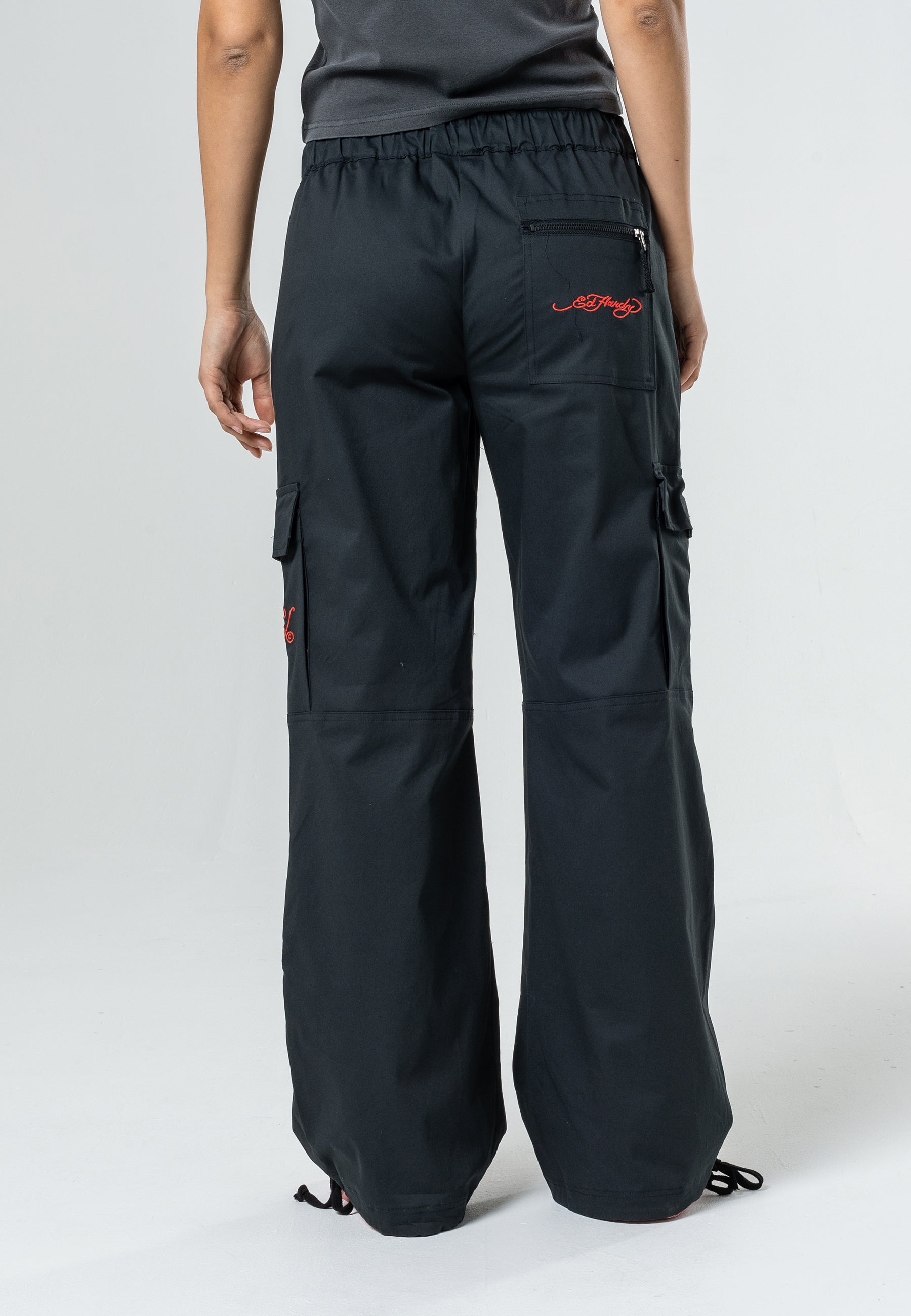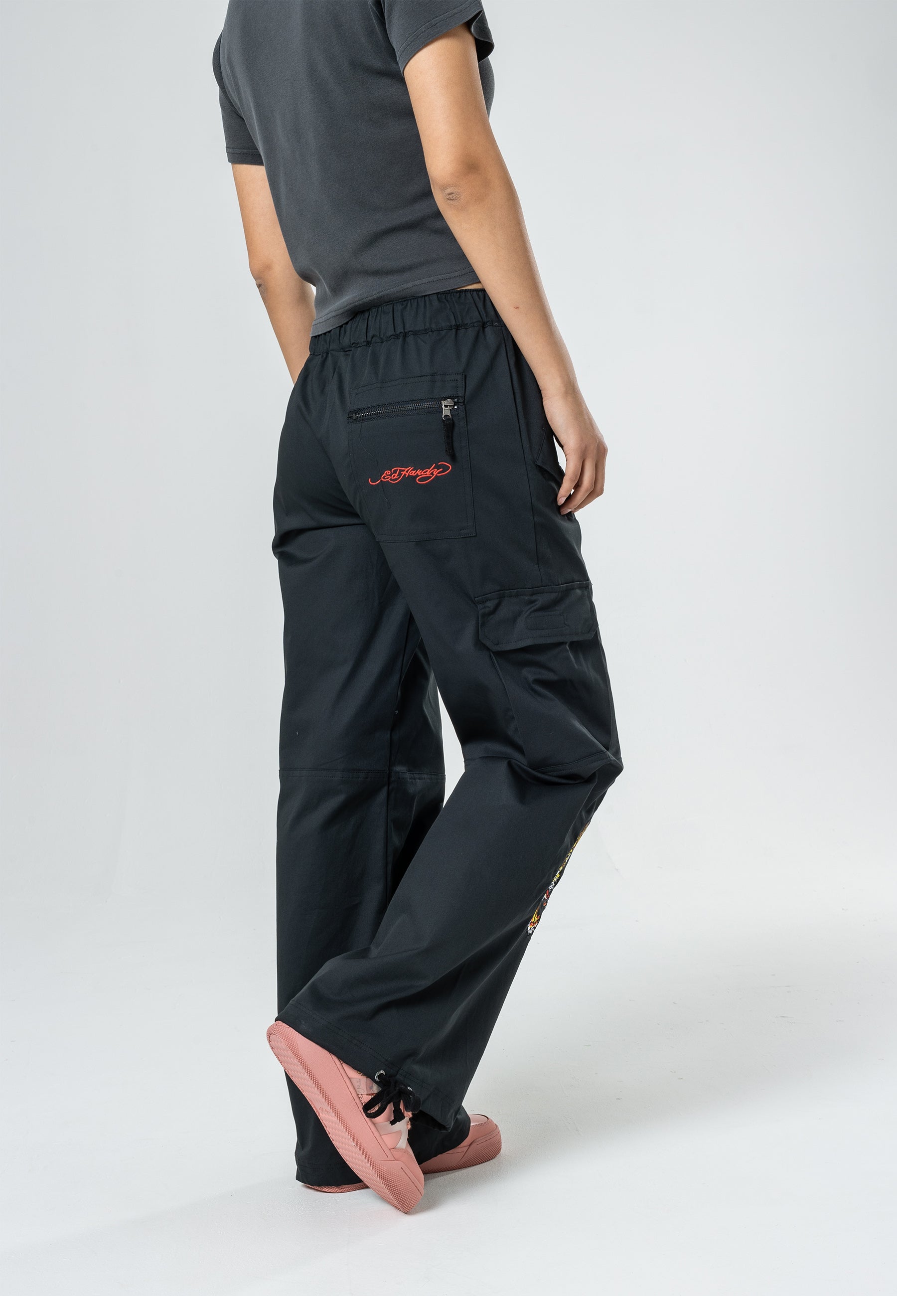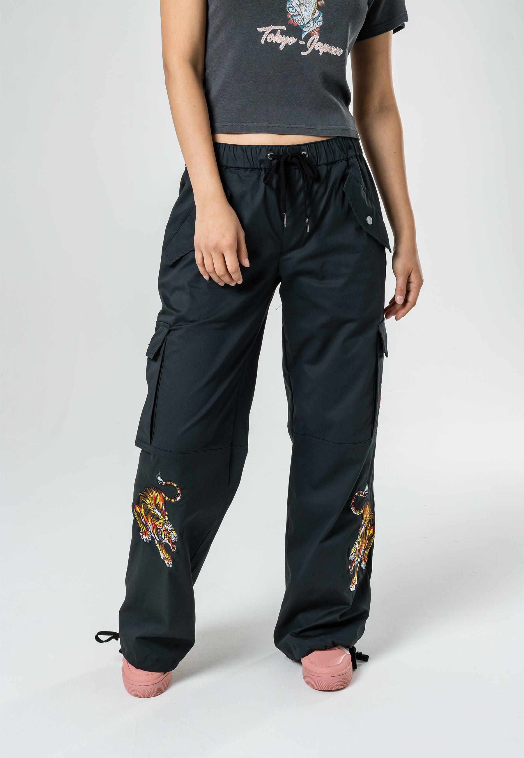Tiger Cargo Pant-Washed Black byder på det berygtede Eds-arkiv af high-definition broderede Tigers ved både de nederste for-/sideben samt det broderede Ed Hardy-logo på baglomme med lynlås og venstre sidelomme. Disse komfortable laster er perfekte til chill, dag og nat vibes.