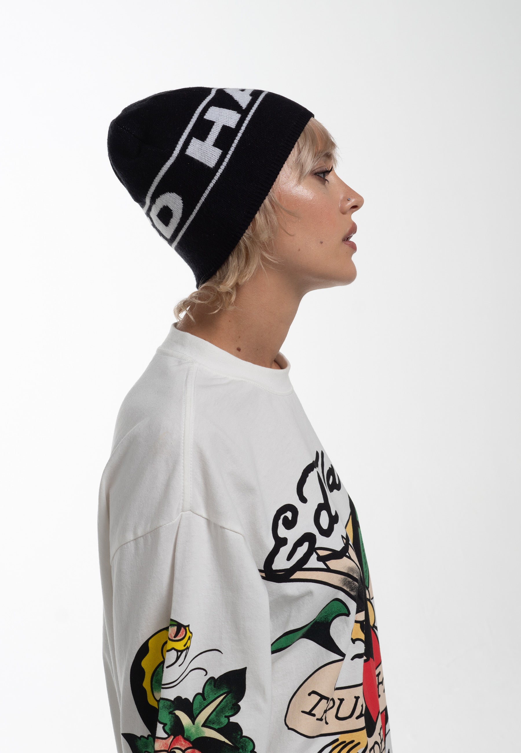 Unisex Ed Hardy Block Logo Beanie Hat - Sort