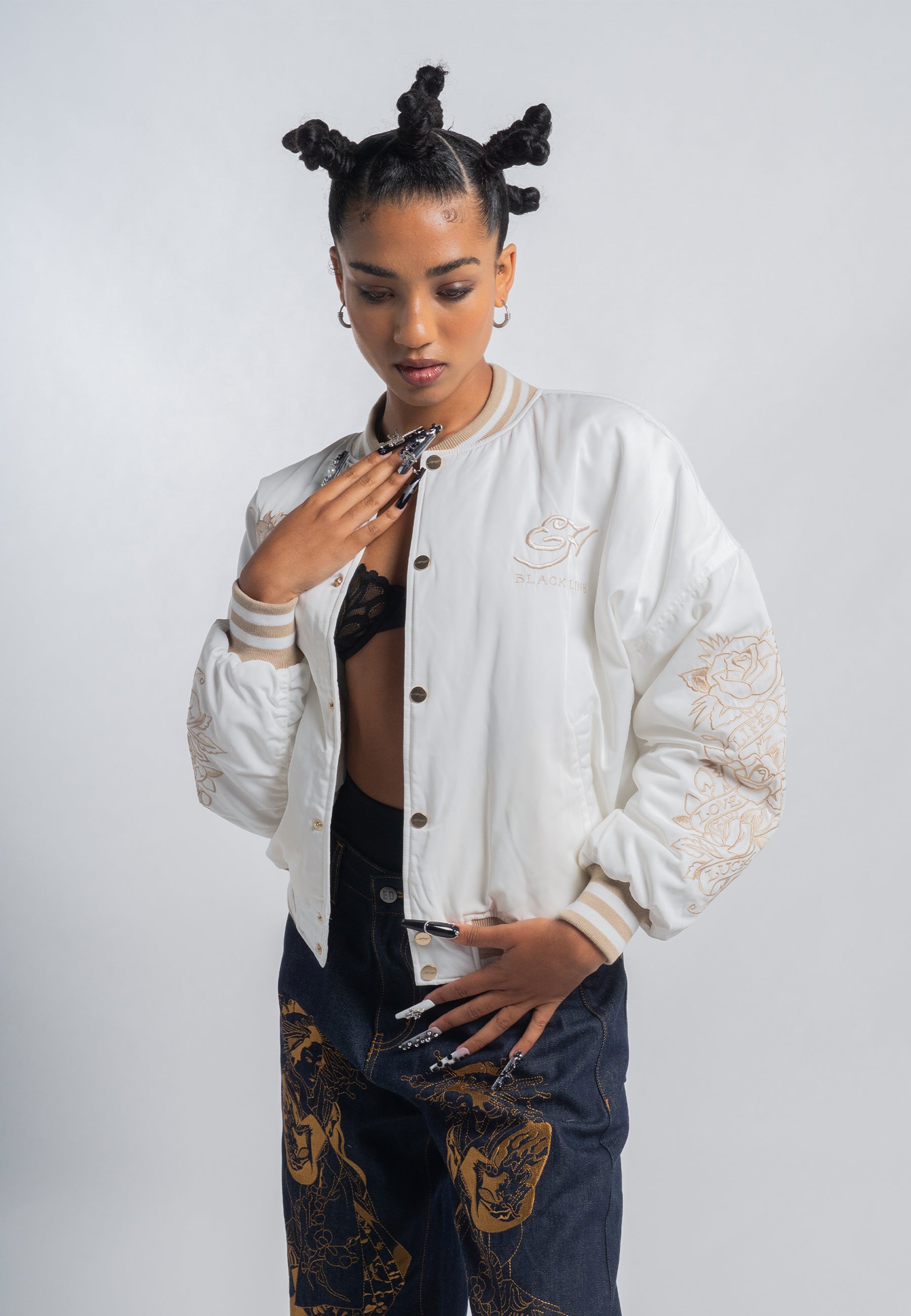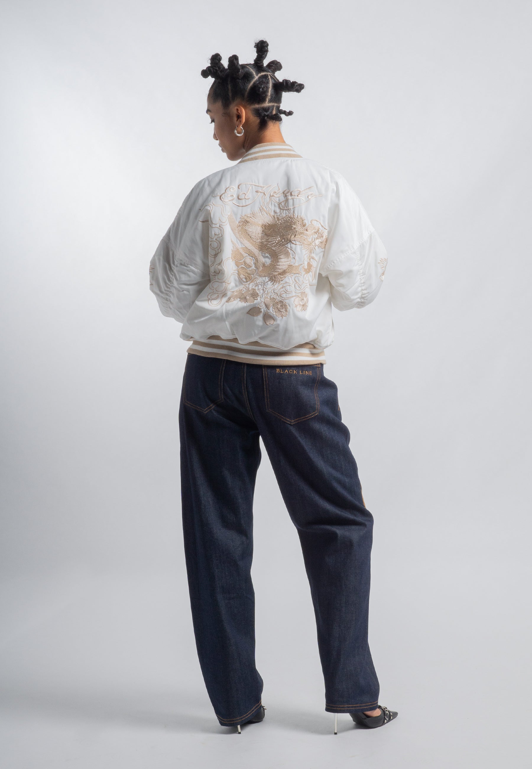 Vintage-Dragon Varsity bomberjakke til kvinder - hvid