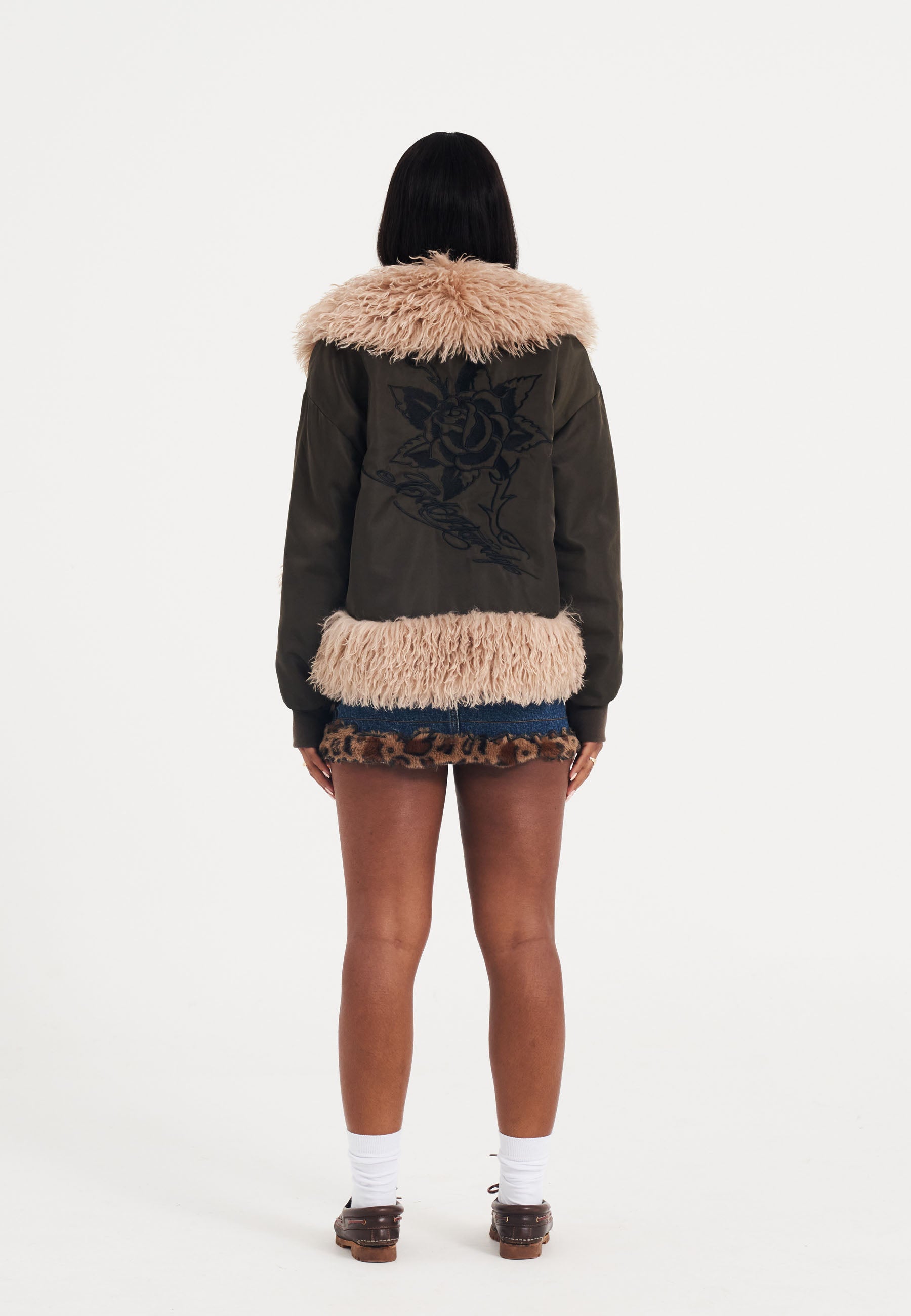 The Women's Death Rose Fur Jacket is a true Ed Hardy statement piece.