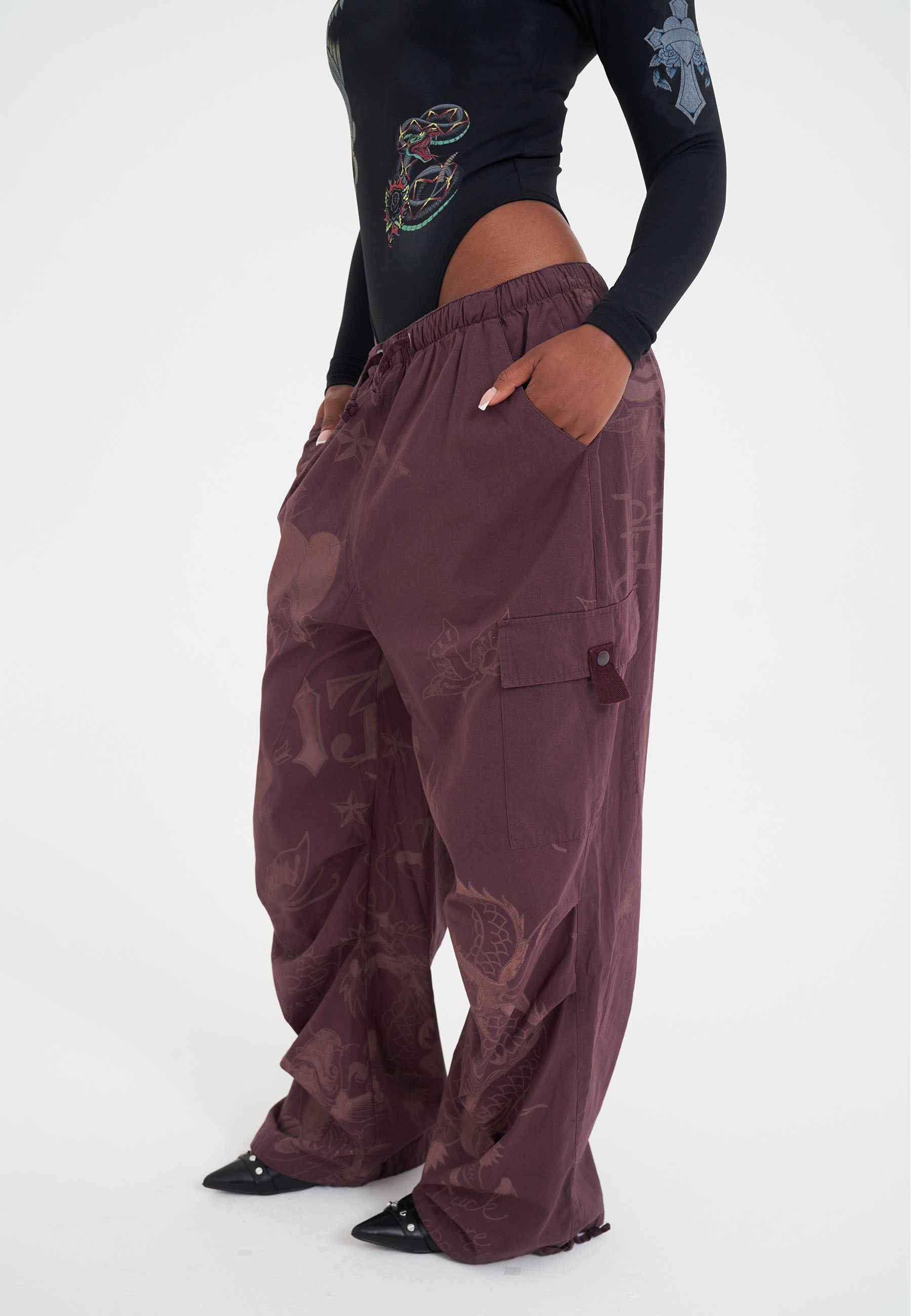 Womens Don Ed Cargo Pants - Burgundy