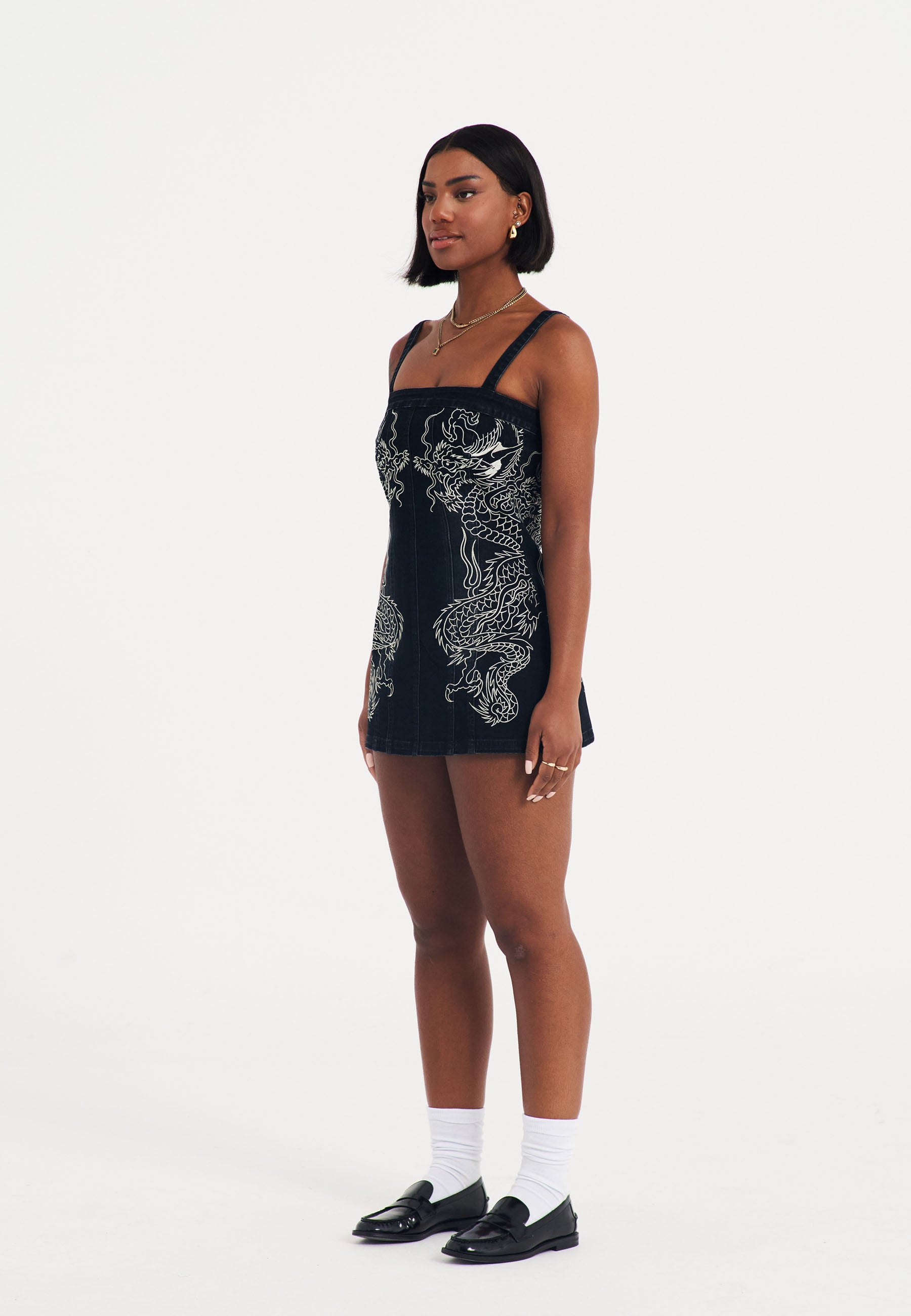 Womens Dragon Flame Denim Mini Dress - Black