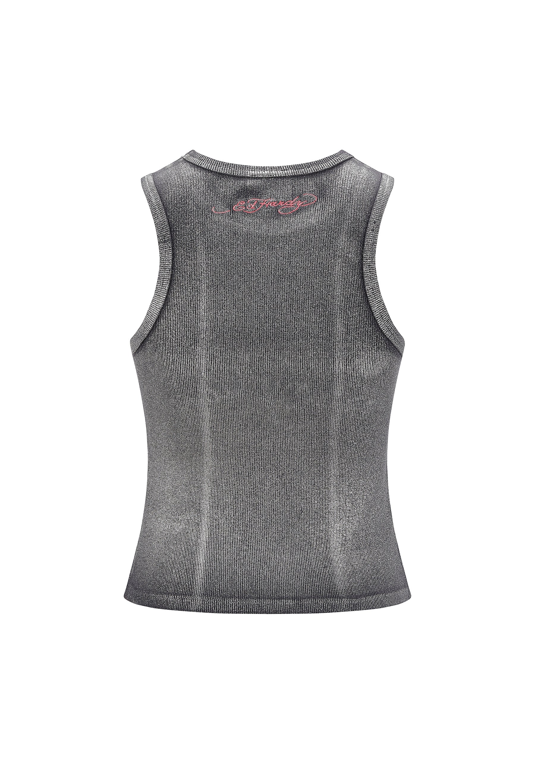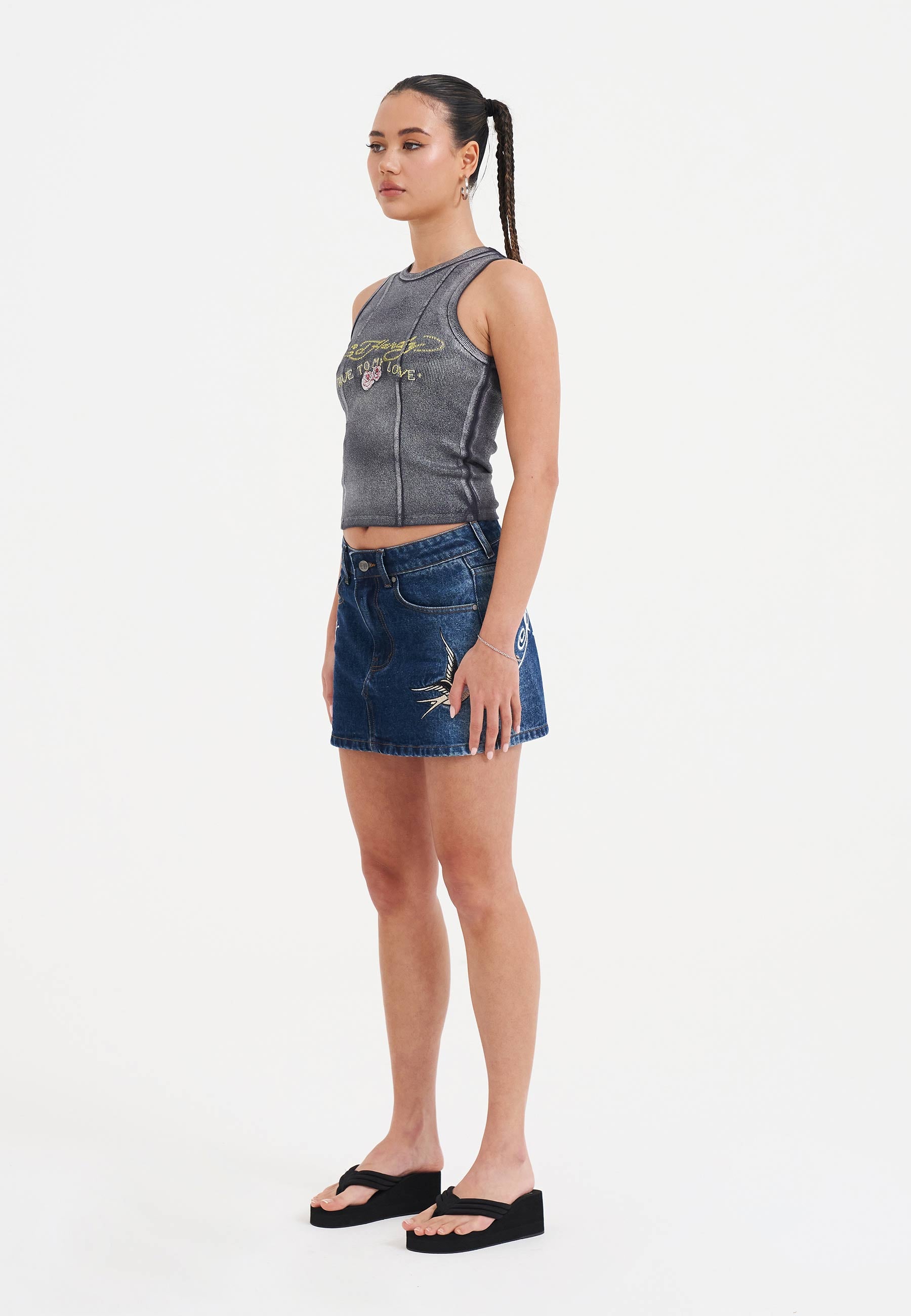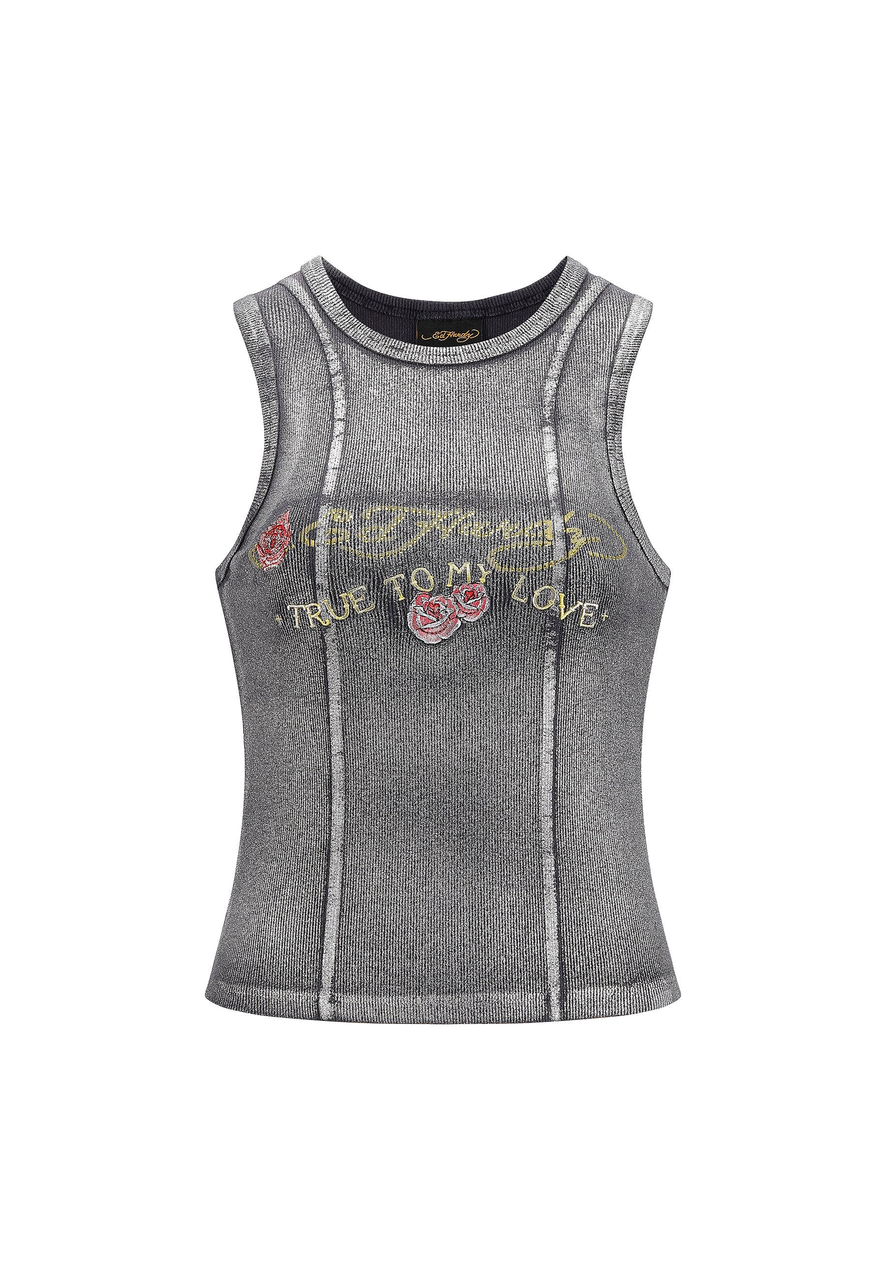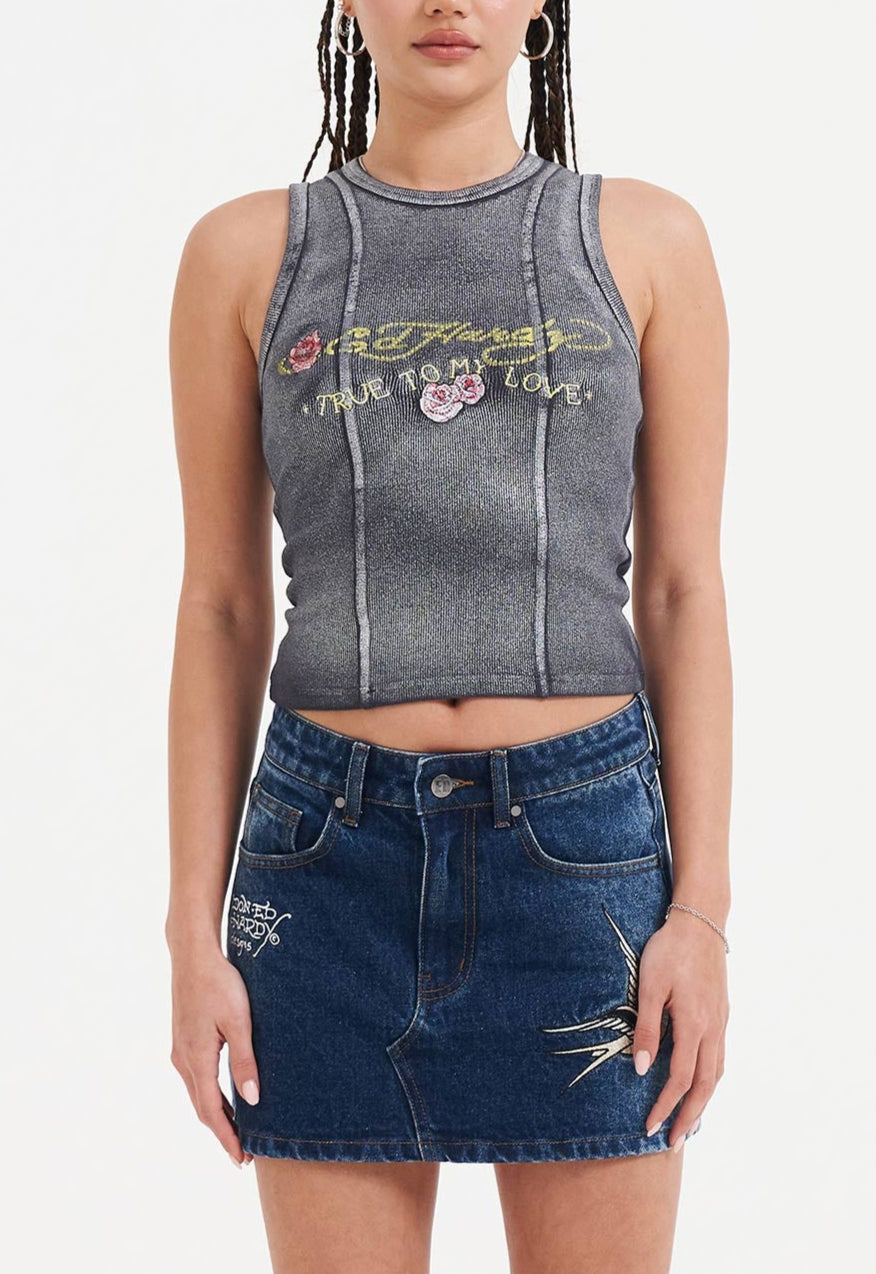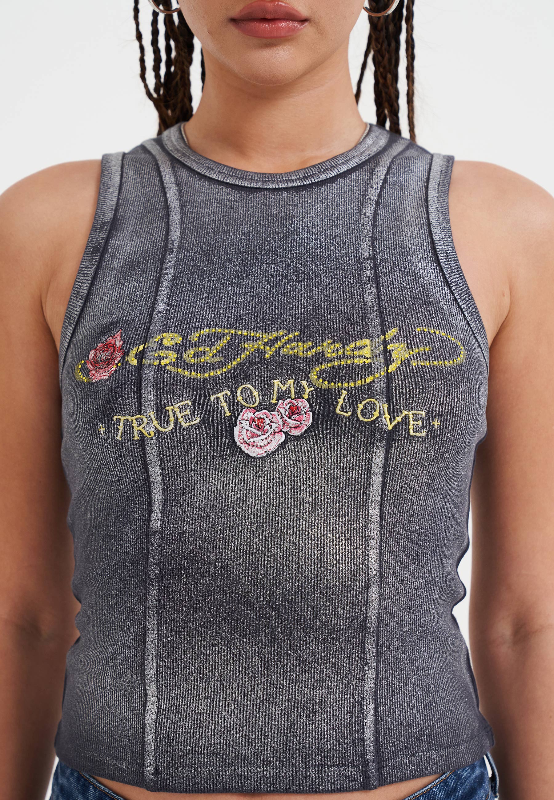 Womens Ed Hardy True Love Diamante Vest Top - Charcoal
