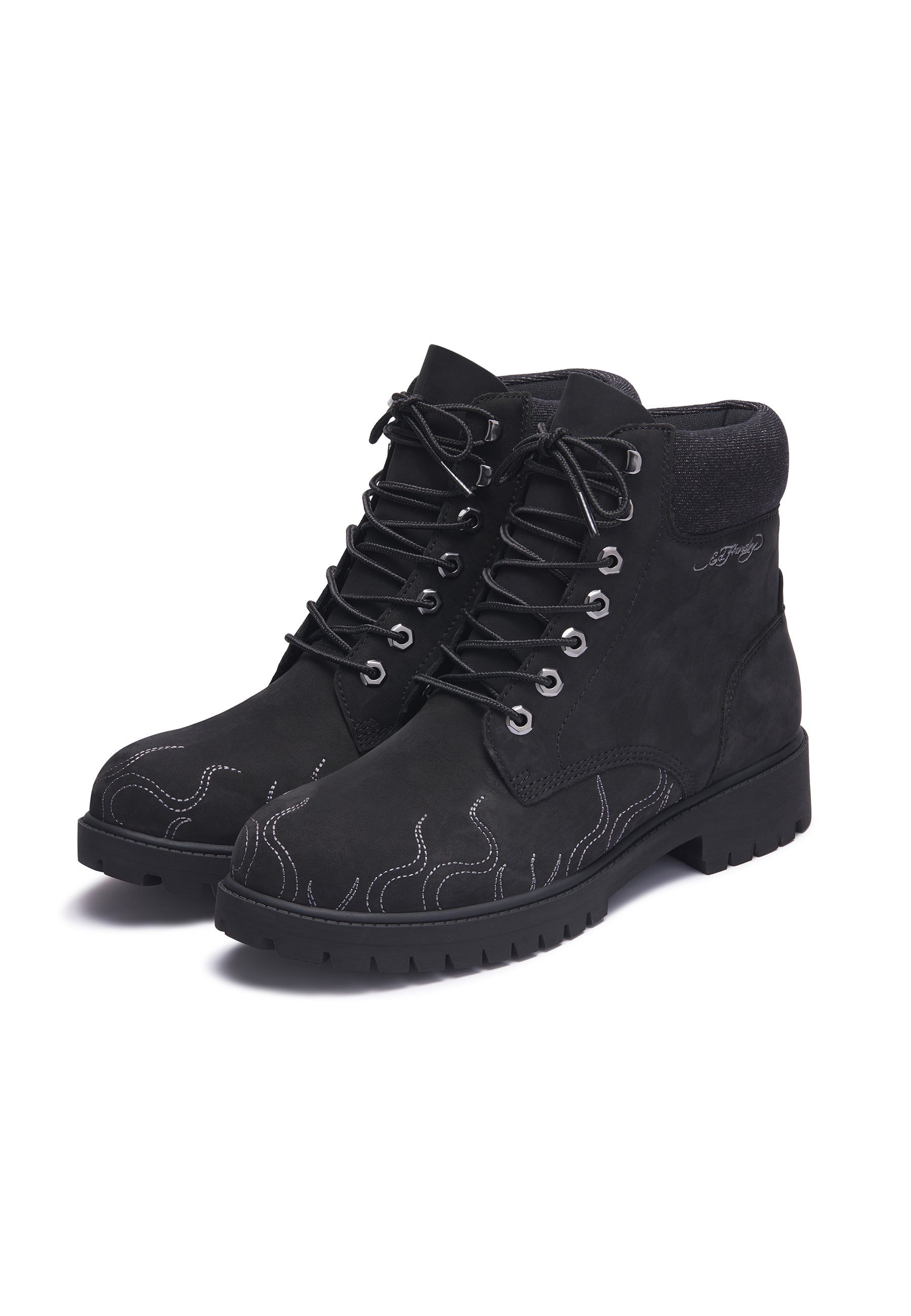 - White flame embroidery graphic decorates the shoe, adding a touch of dynamism and uniqueness.