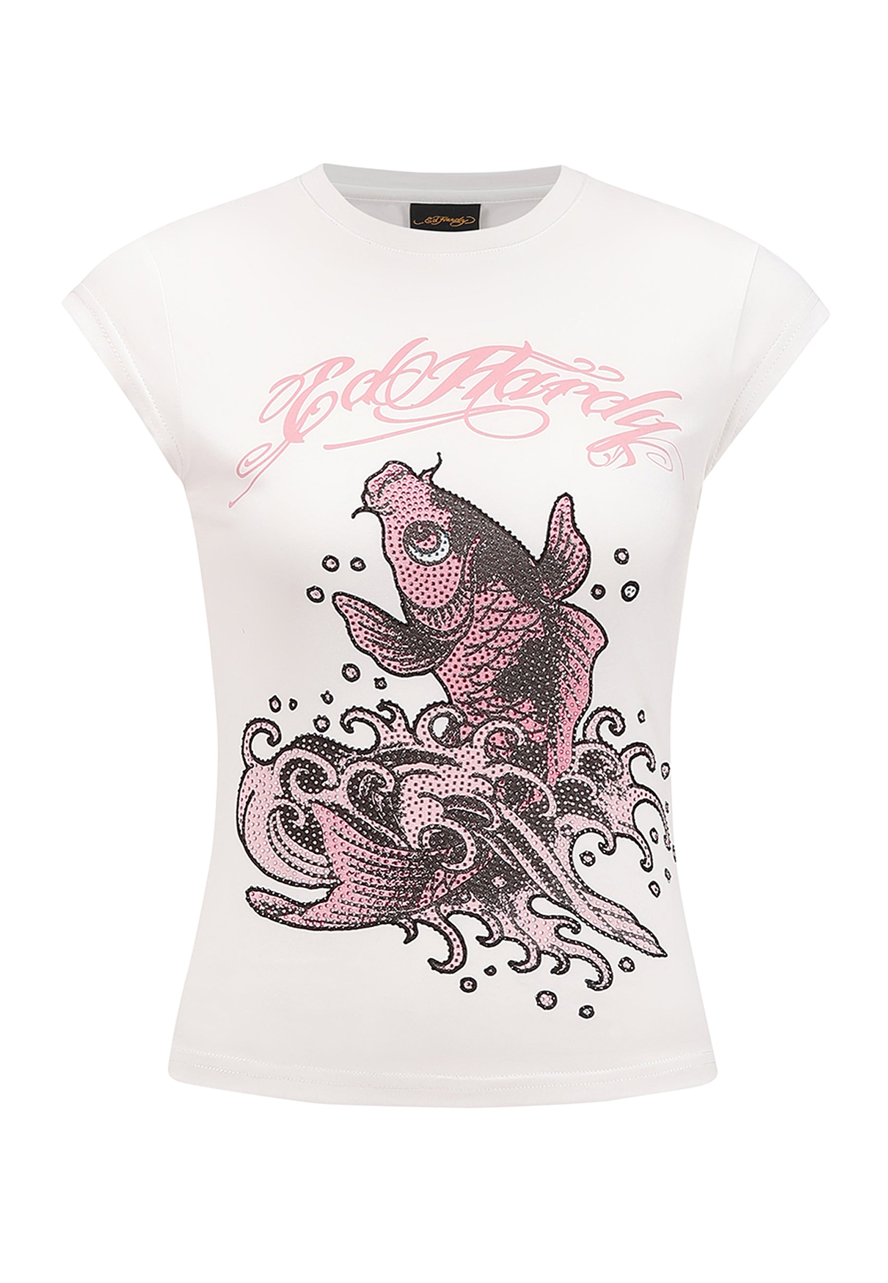 KOI FISH DIAMANTE CAP SLEEVE T-SHIRT