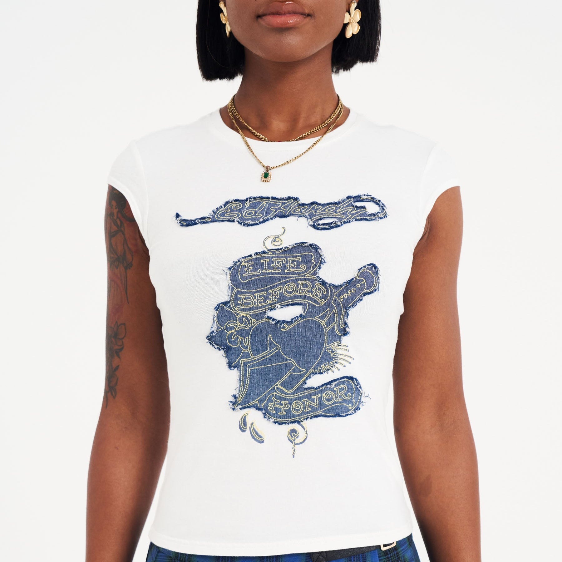 Discover a new era of Ed's legacy with the Women's Life Before Honor Cap Sleeve T-Shirt Top.