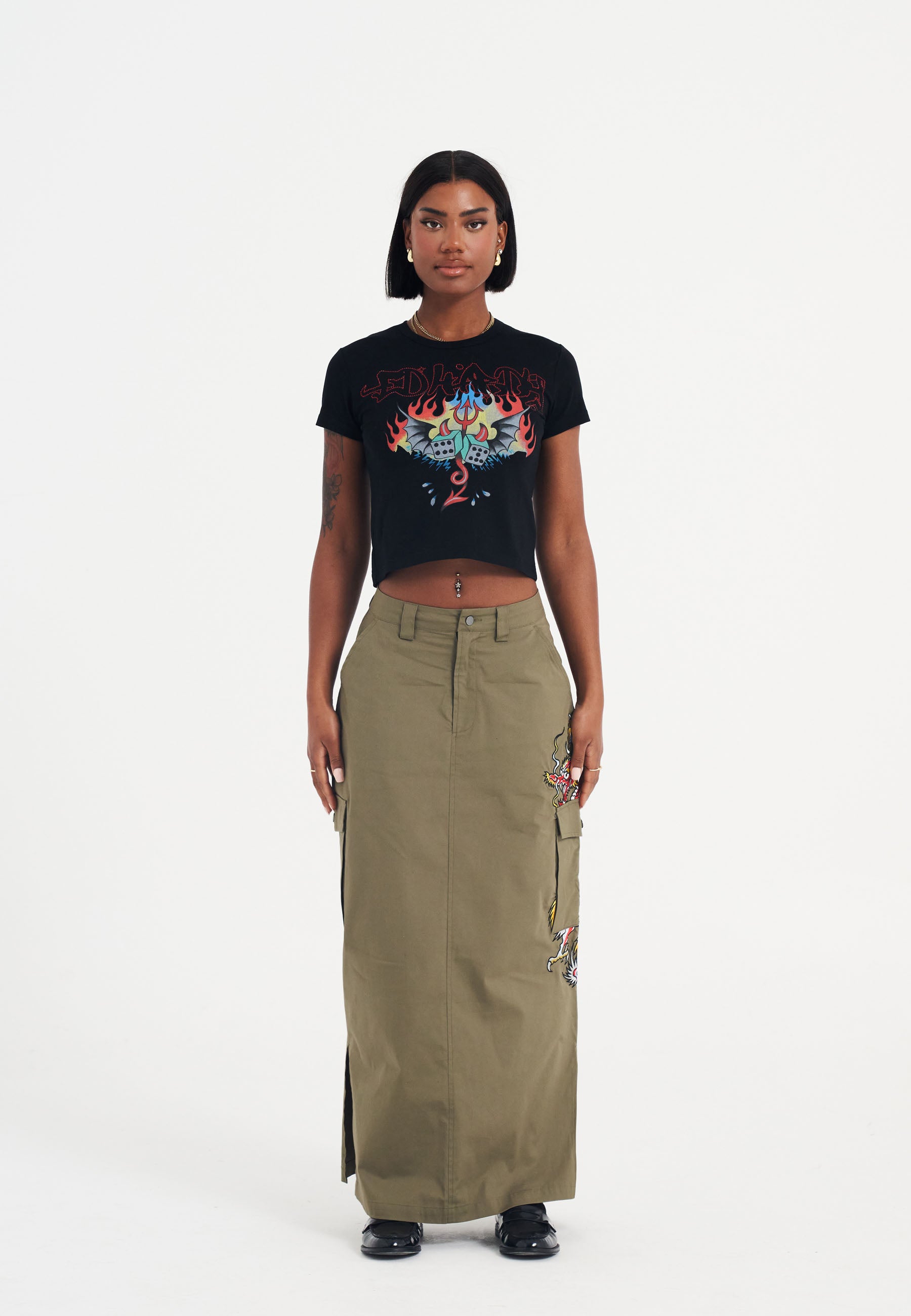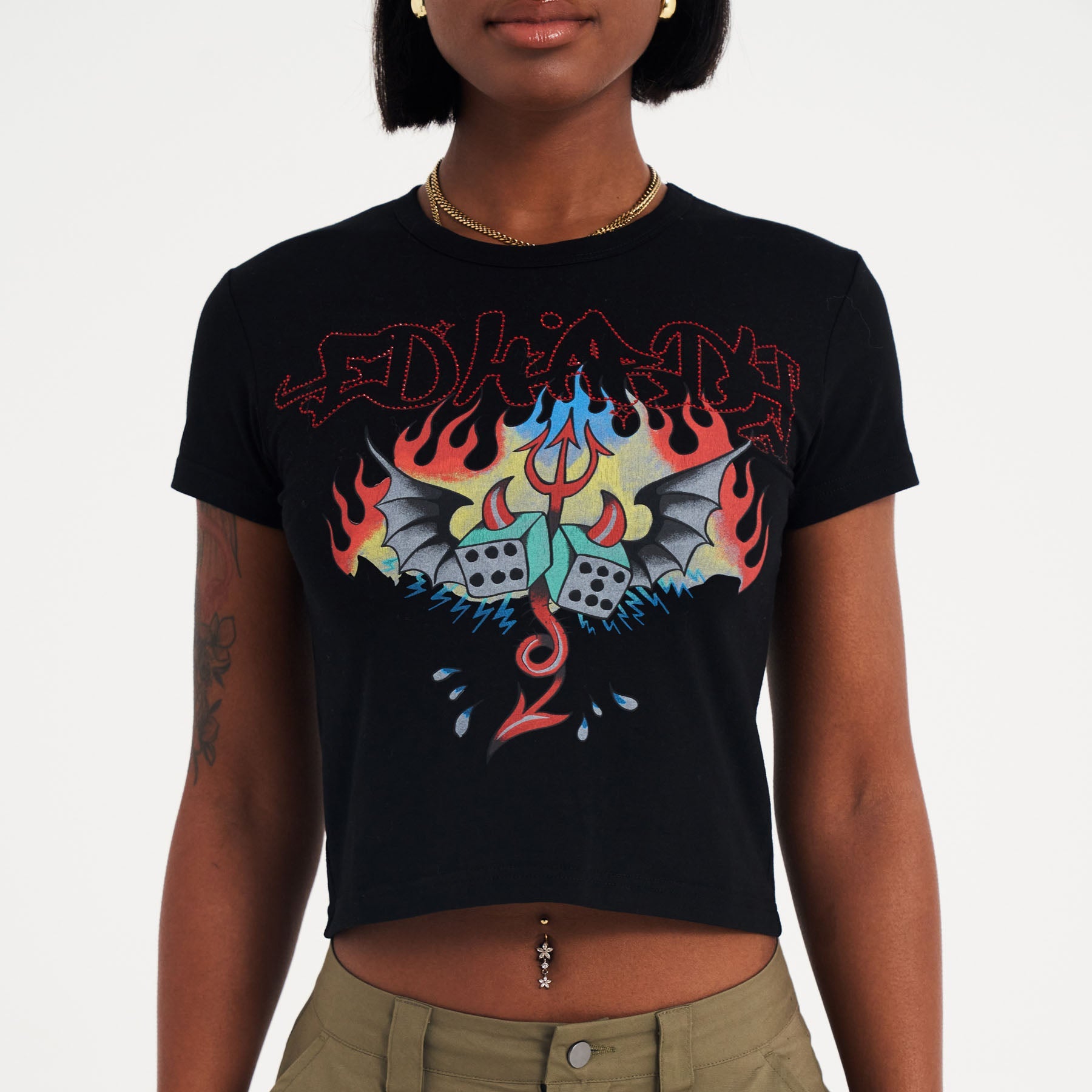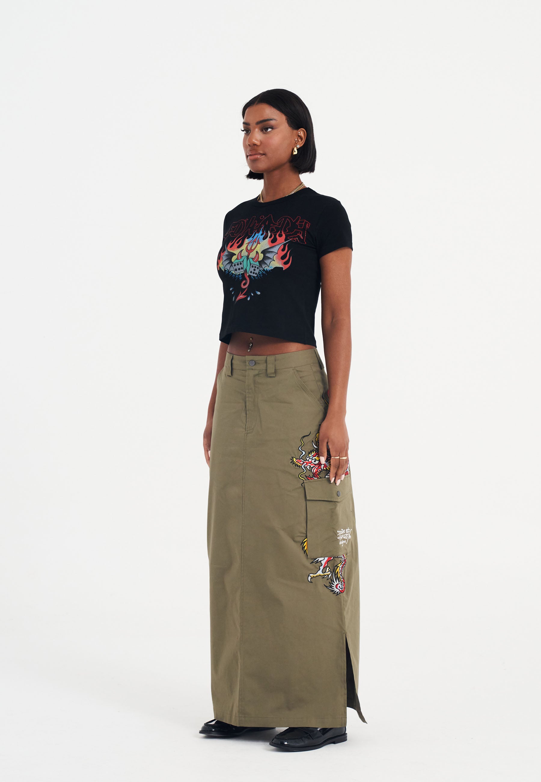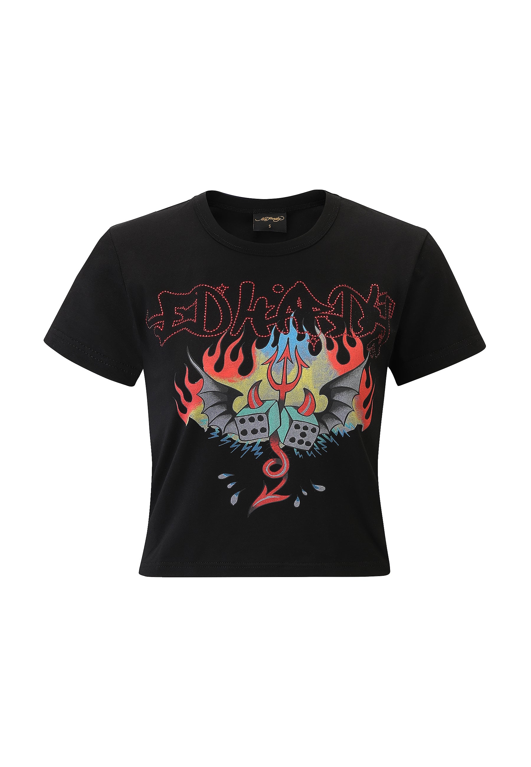 Shining with AW diamante detailing, it features a full-colour graphic from Ed’s flash archives and a graffiti logo outlined in diamantes. Finished with the legacy signature logo at the back neck.