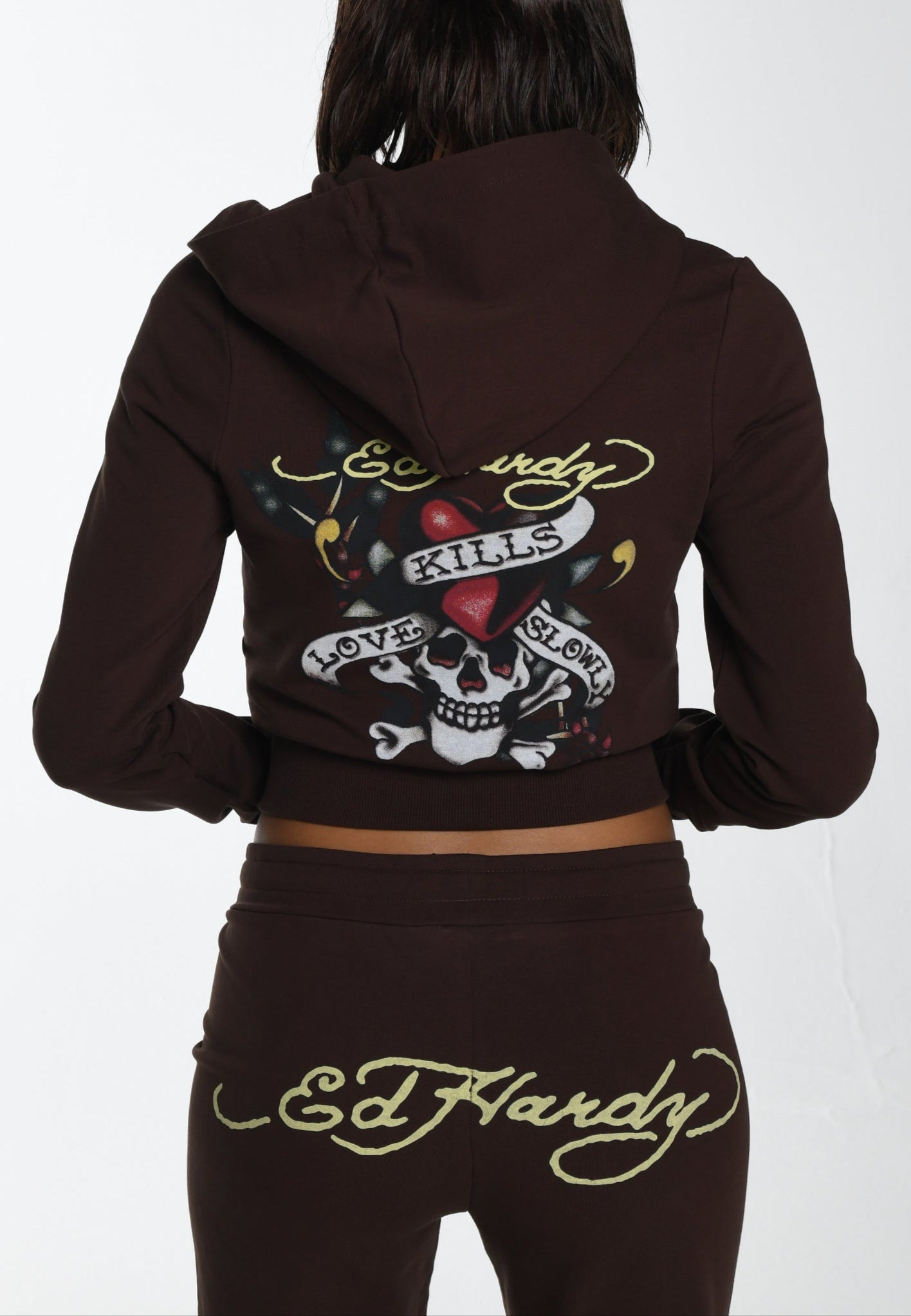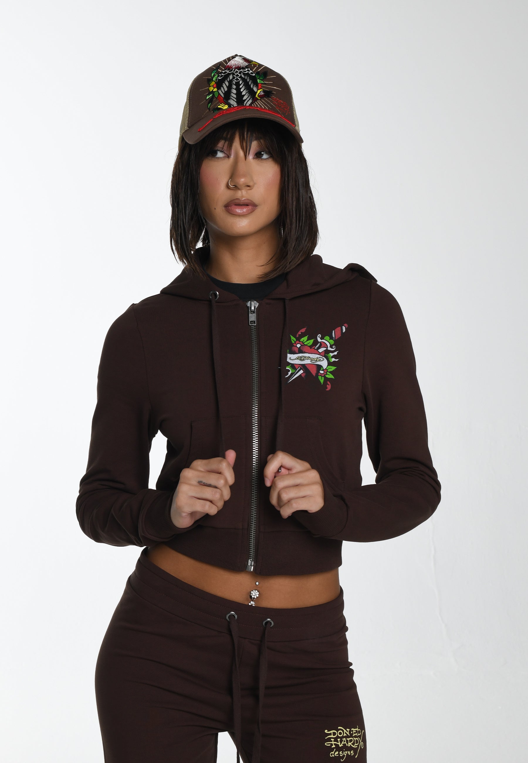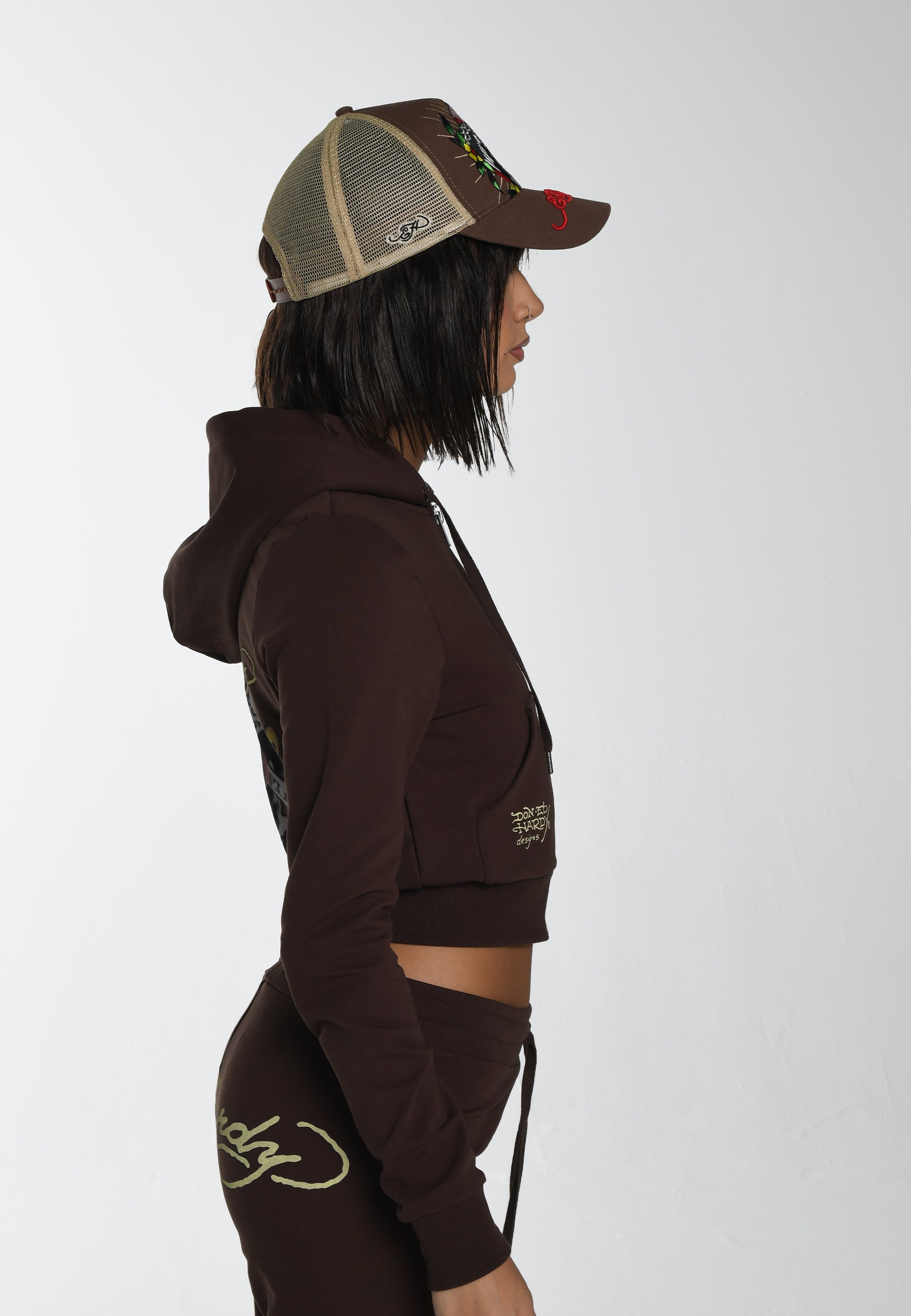 Womens Lks Graphic Cropped Zip Thru Hoodie - Brown