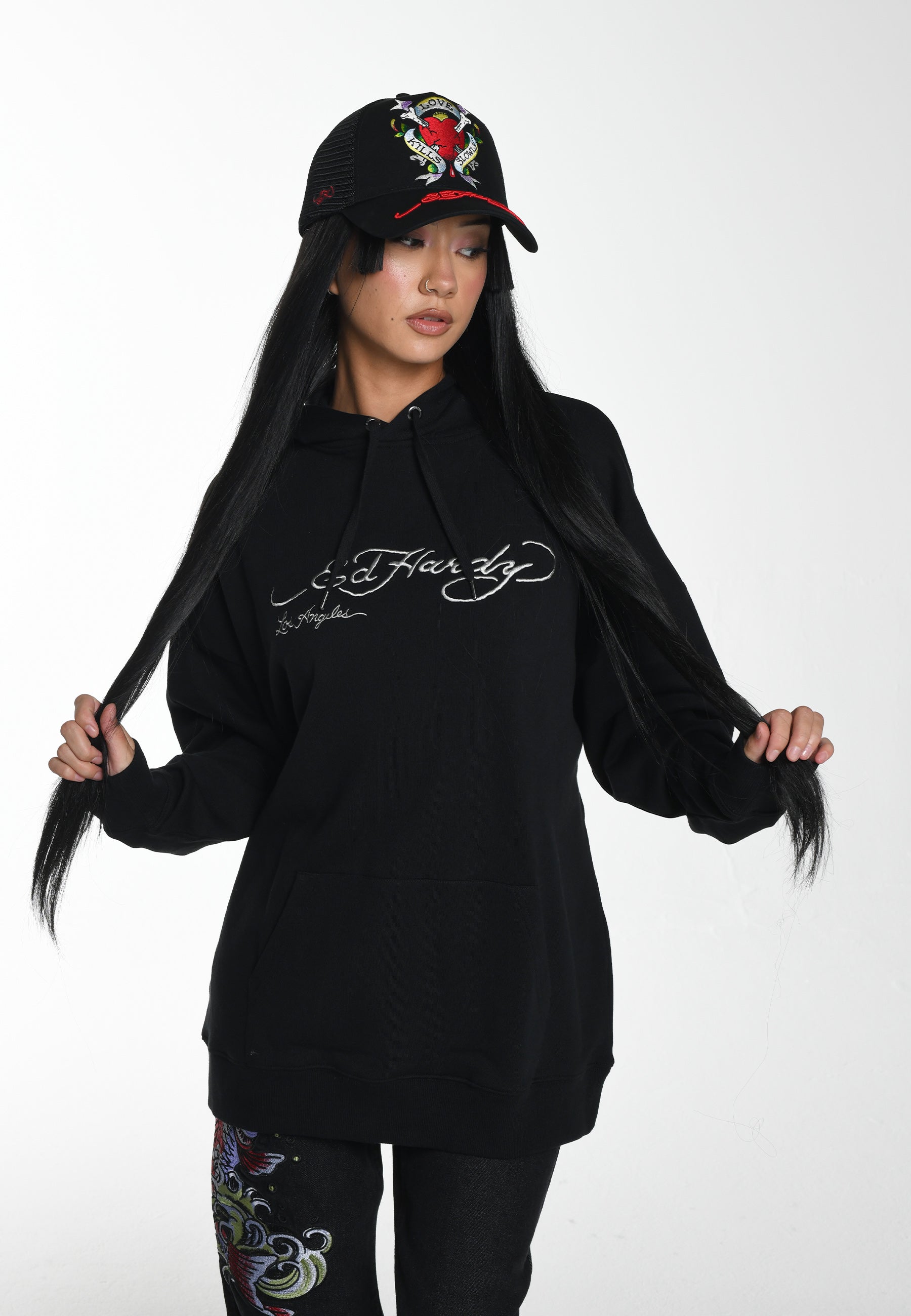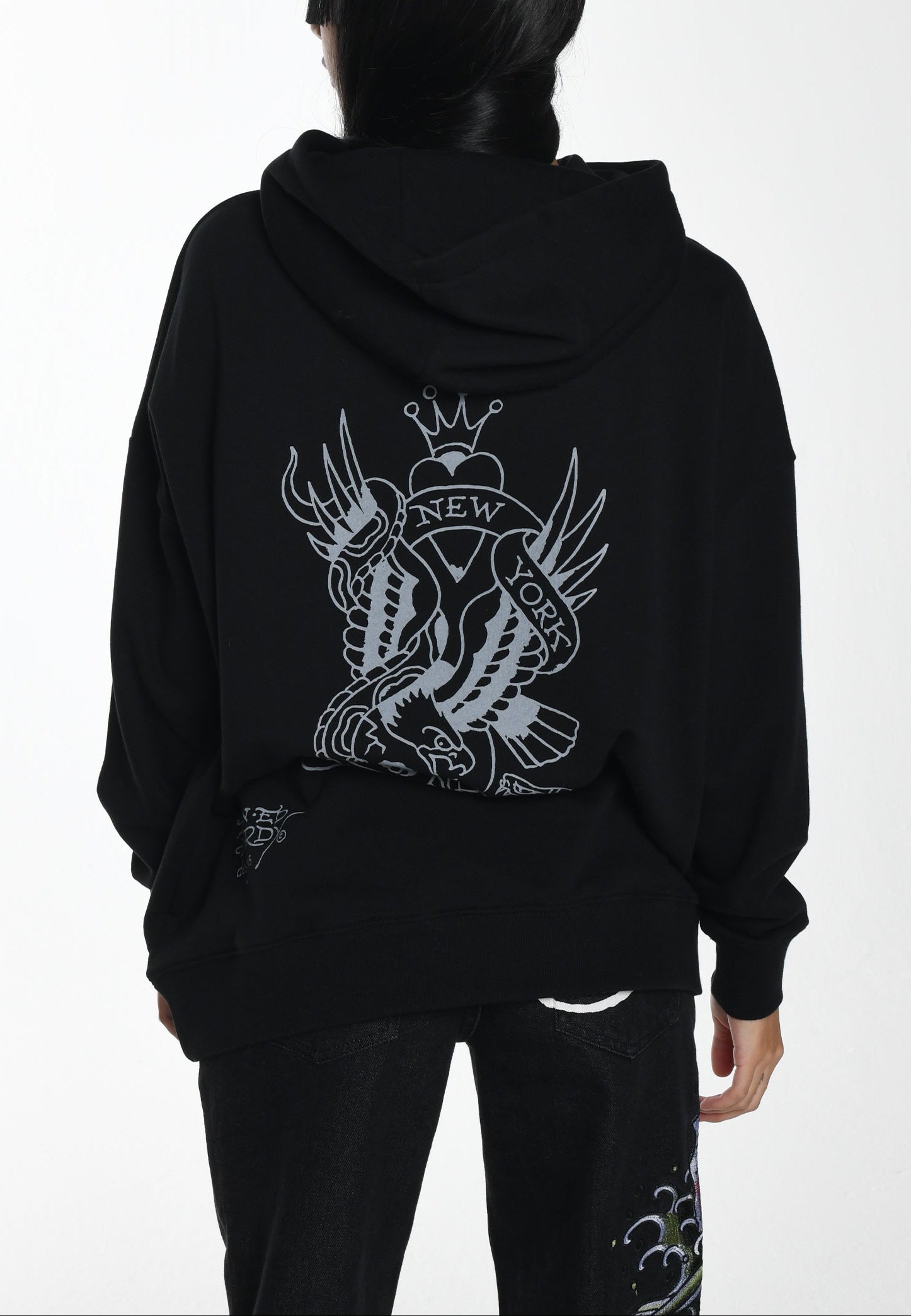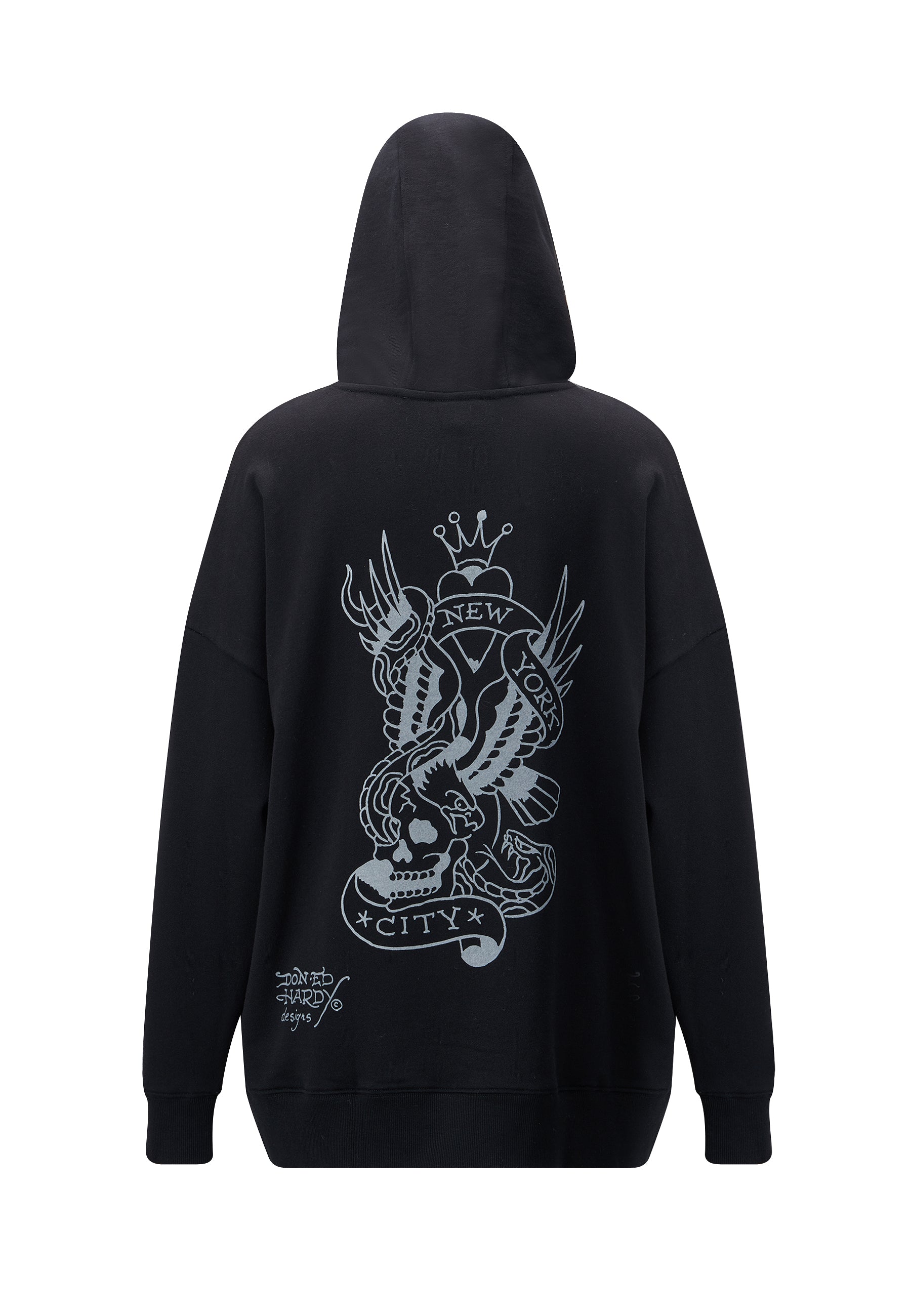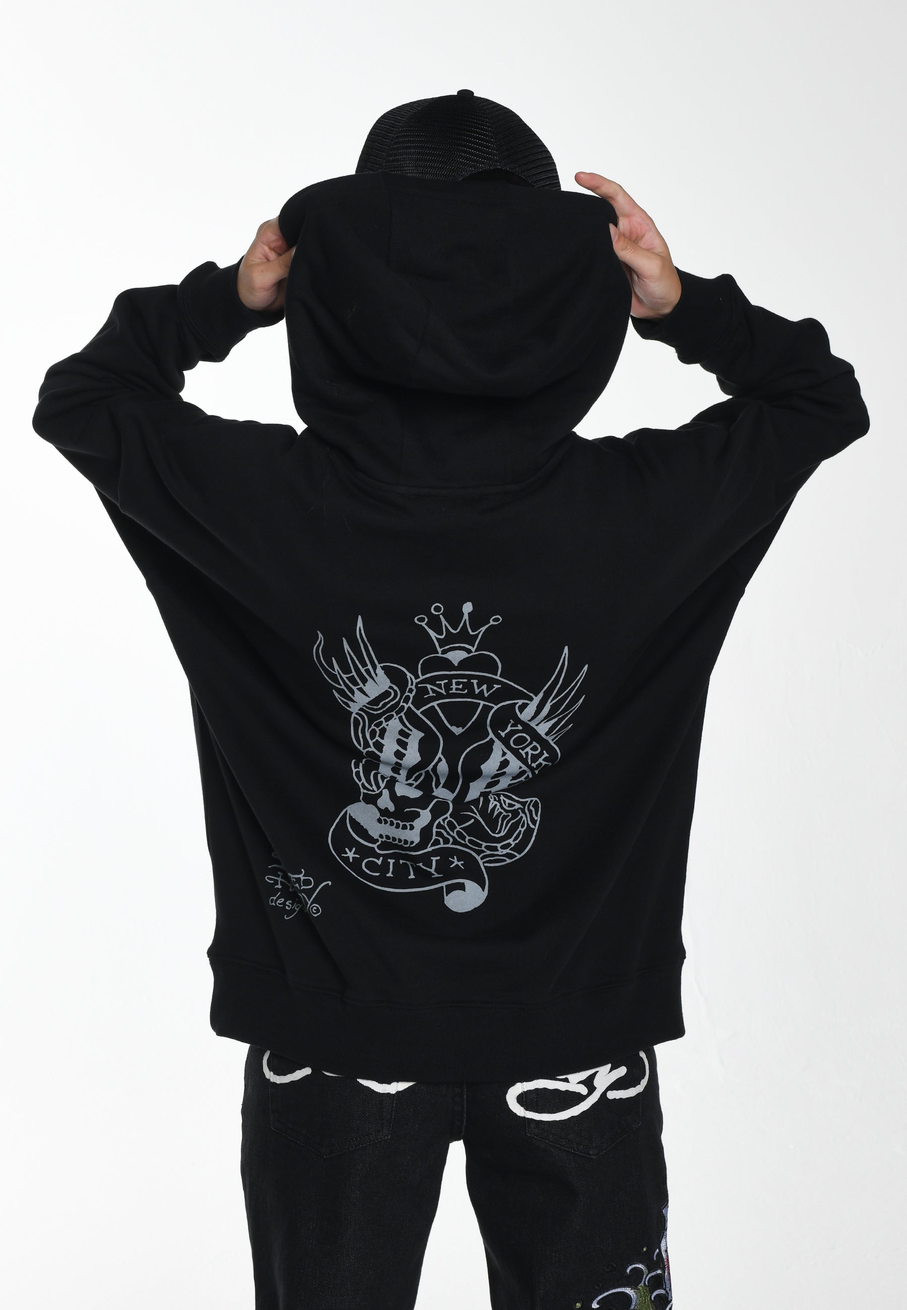 Featuring a large monochrome embroidered skull graphic across the back and the Ed Hardy signature on the front of the chest; this piece has been designed for generations of wear.