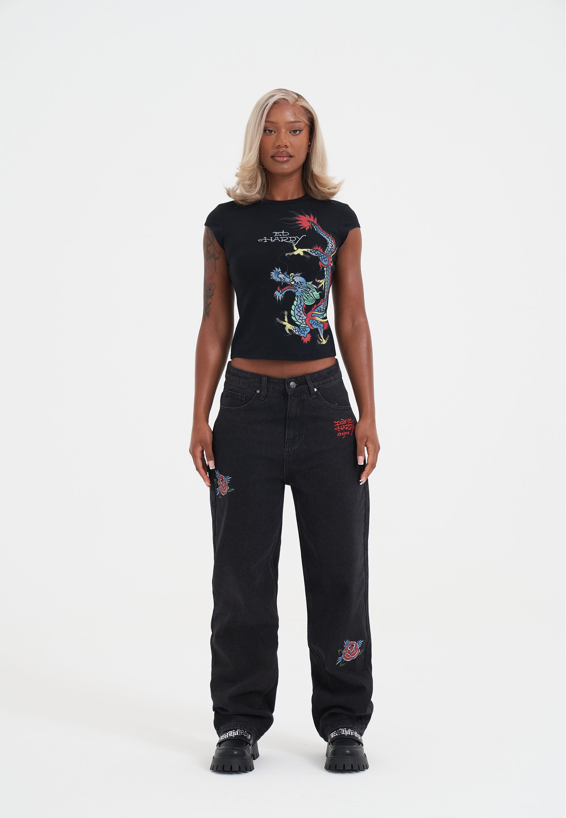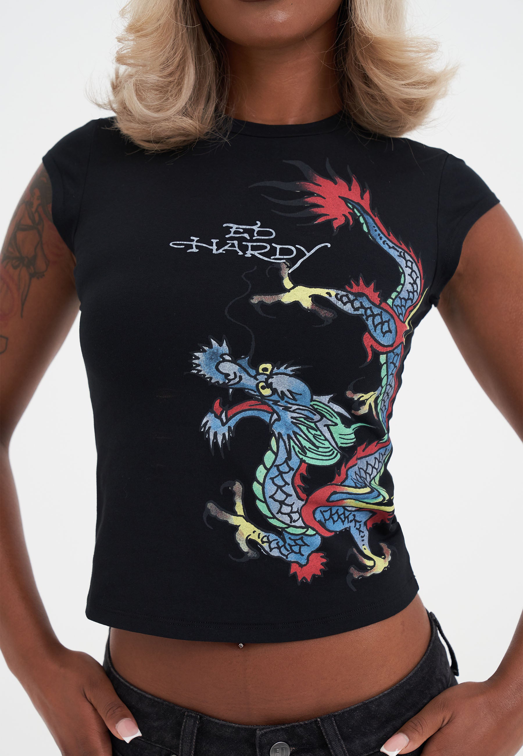 Womens Rawling Dragon Cap Sleeve T-Shirt - Black