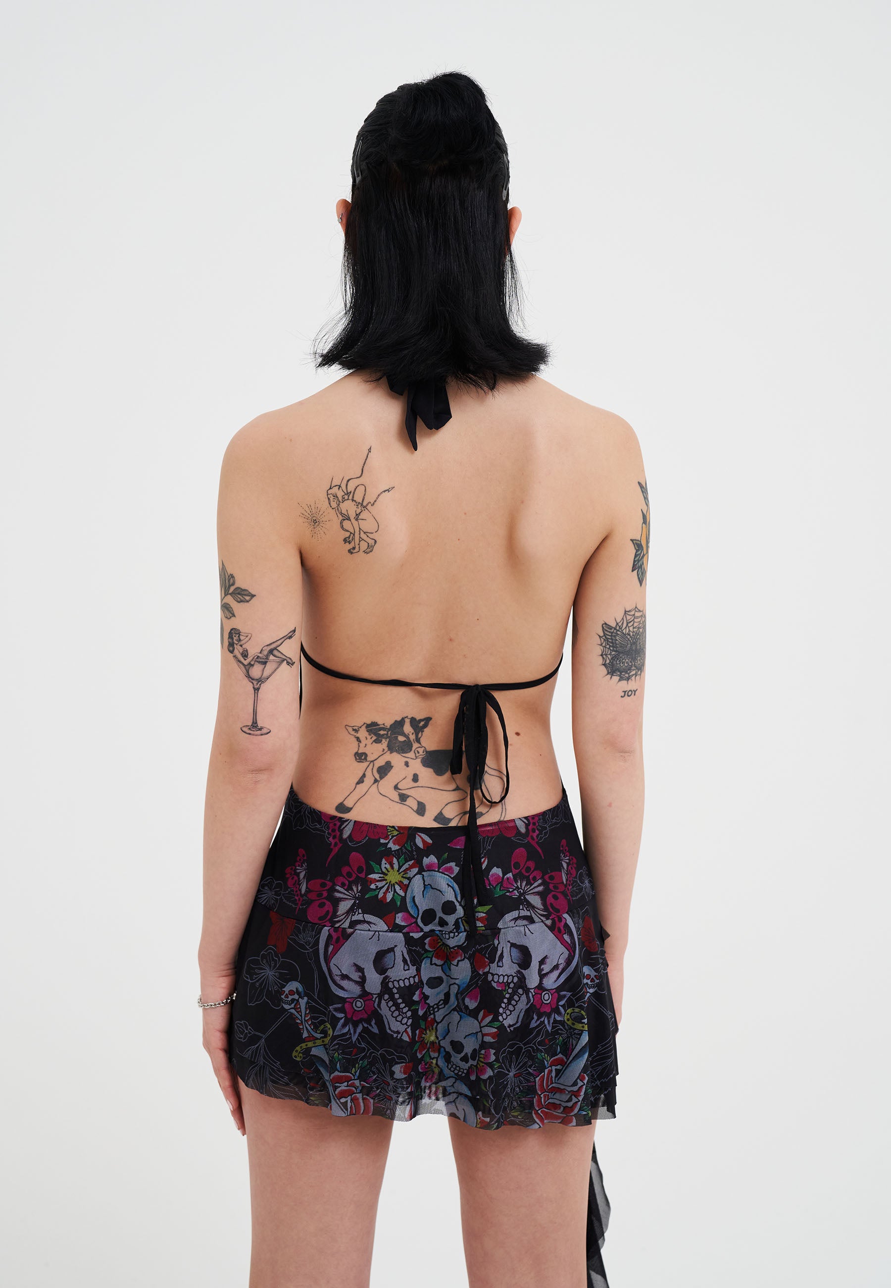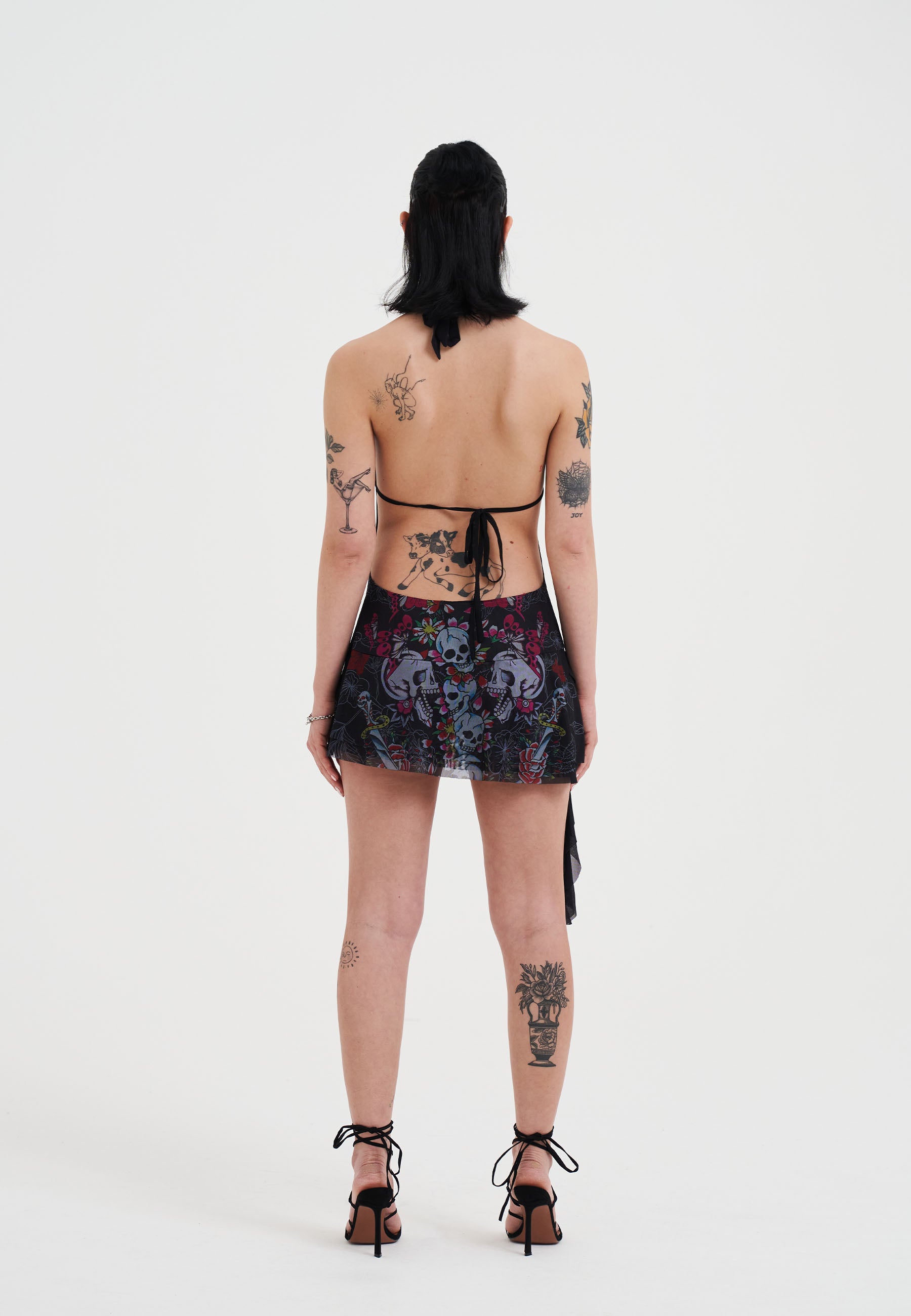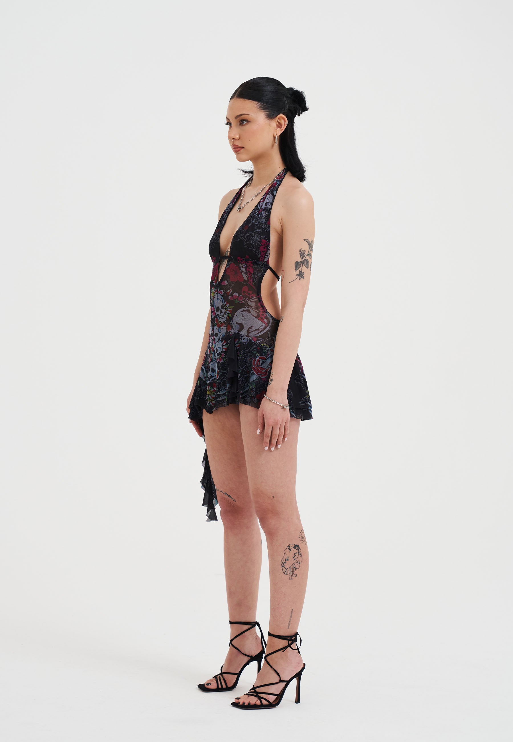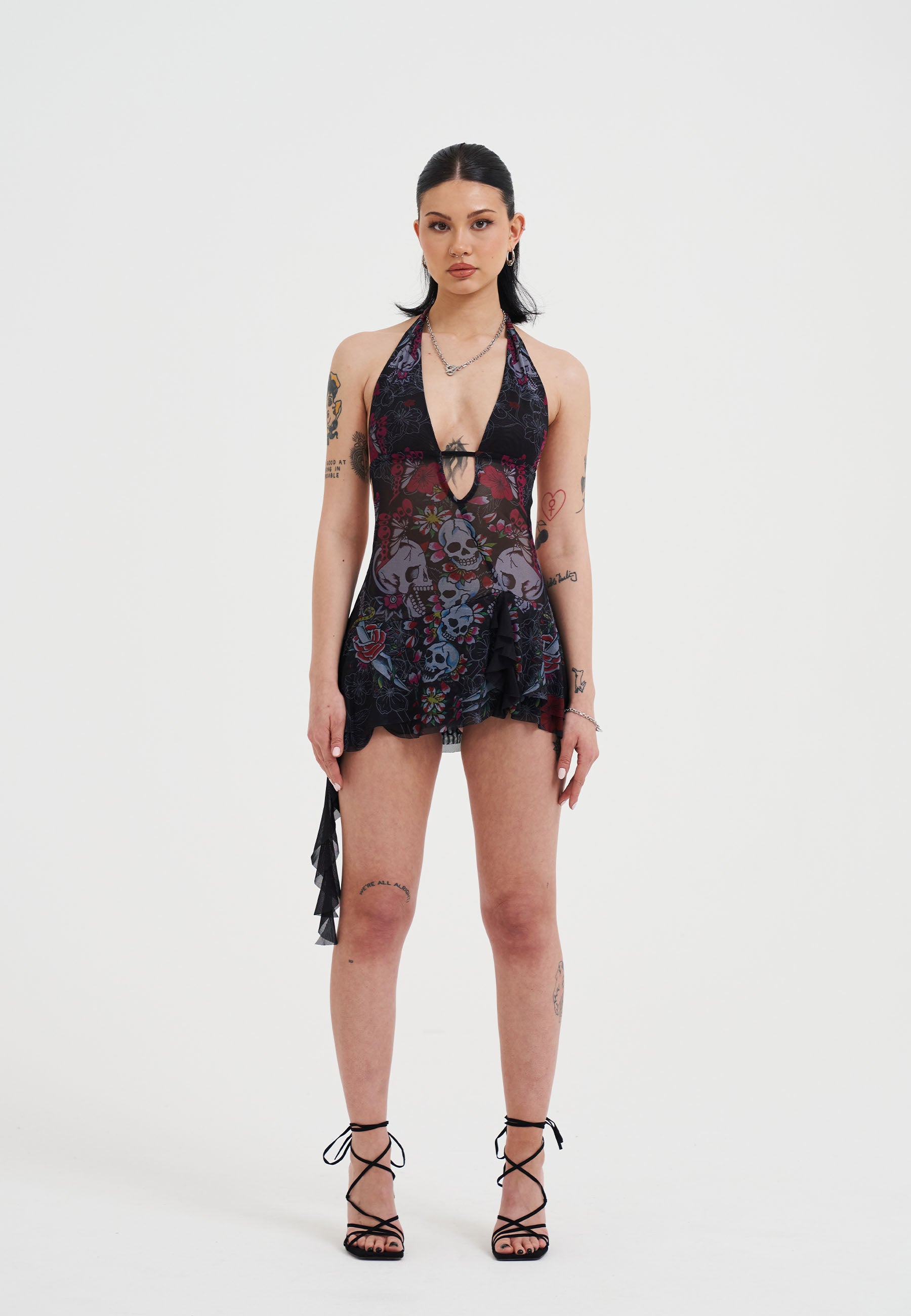 SKULL AND FLOWERS HALTER NECK MINI DRESS