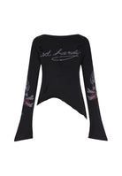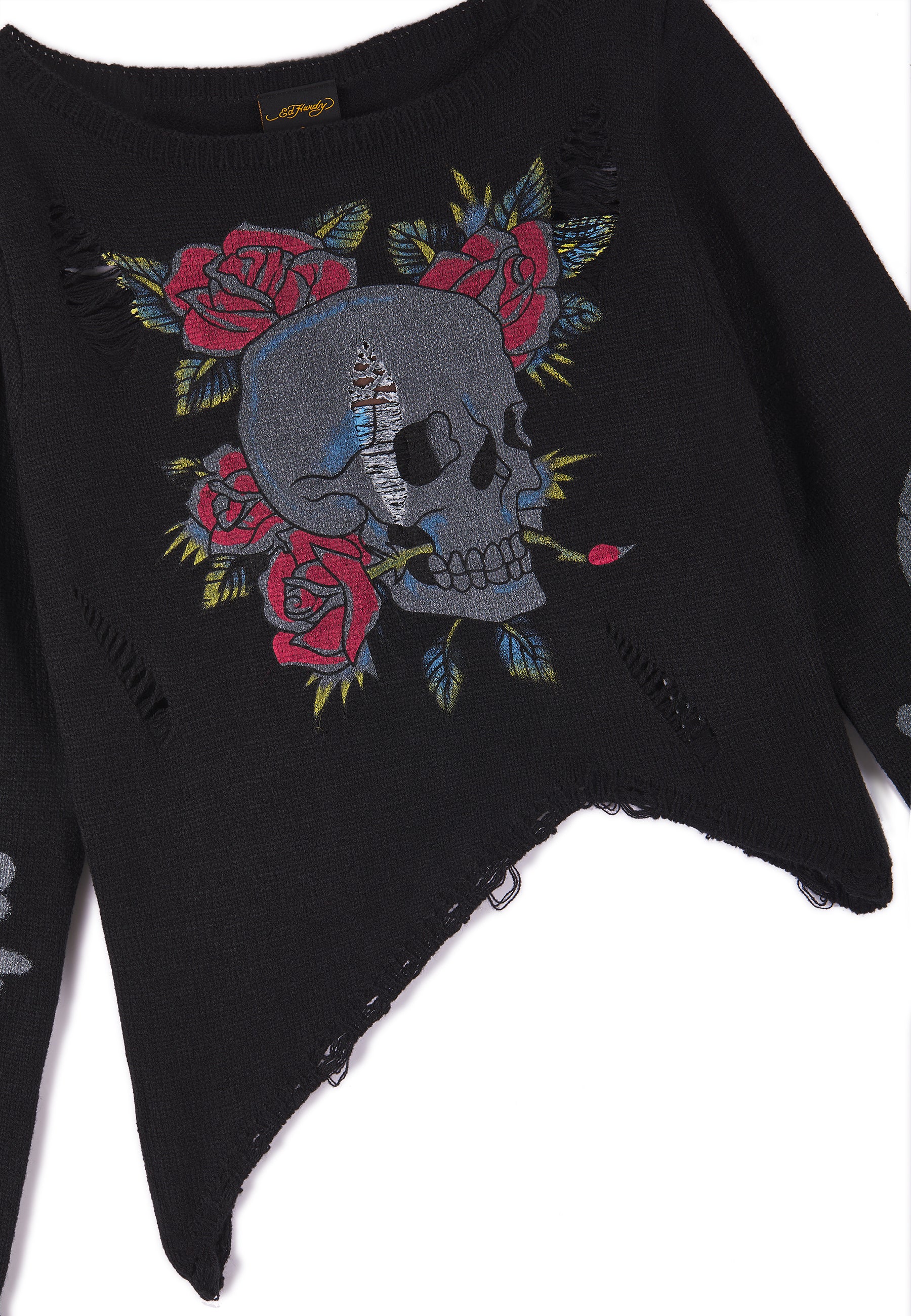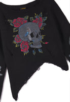Womens Skull And Roses Distressed Knitted Jumper - Black