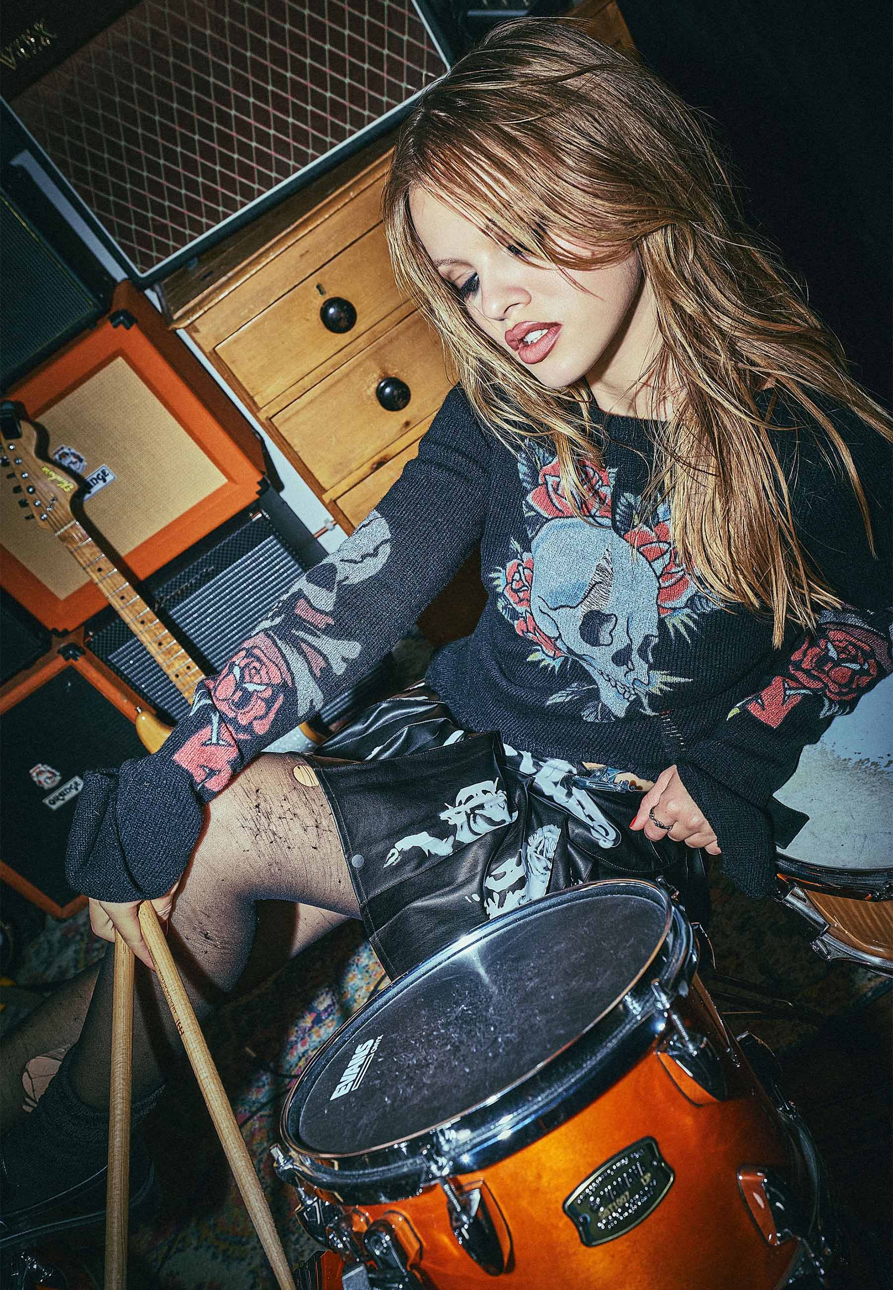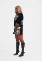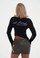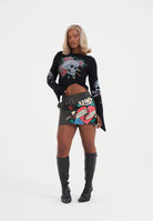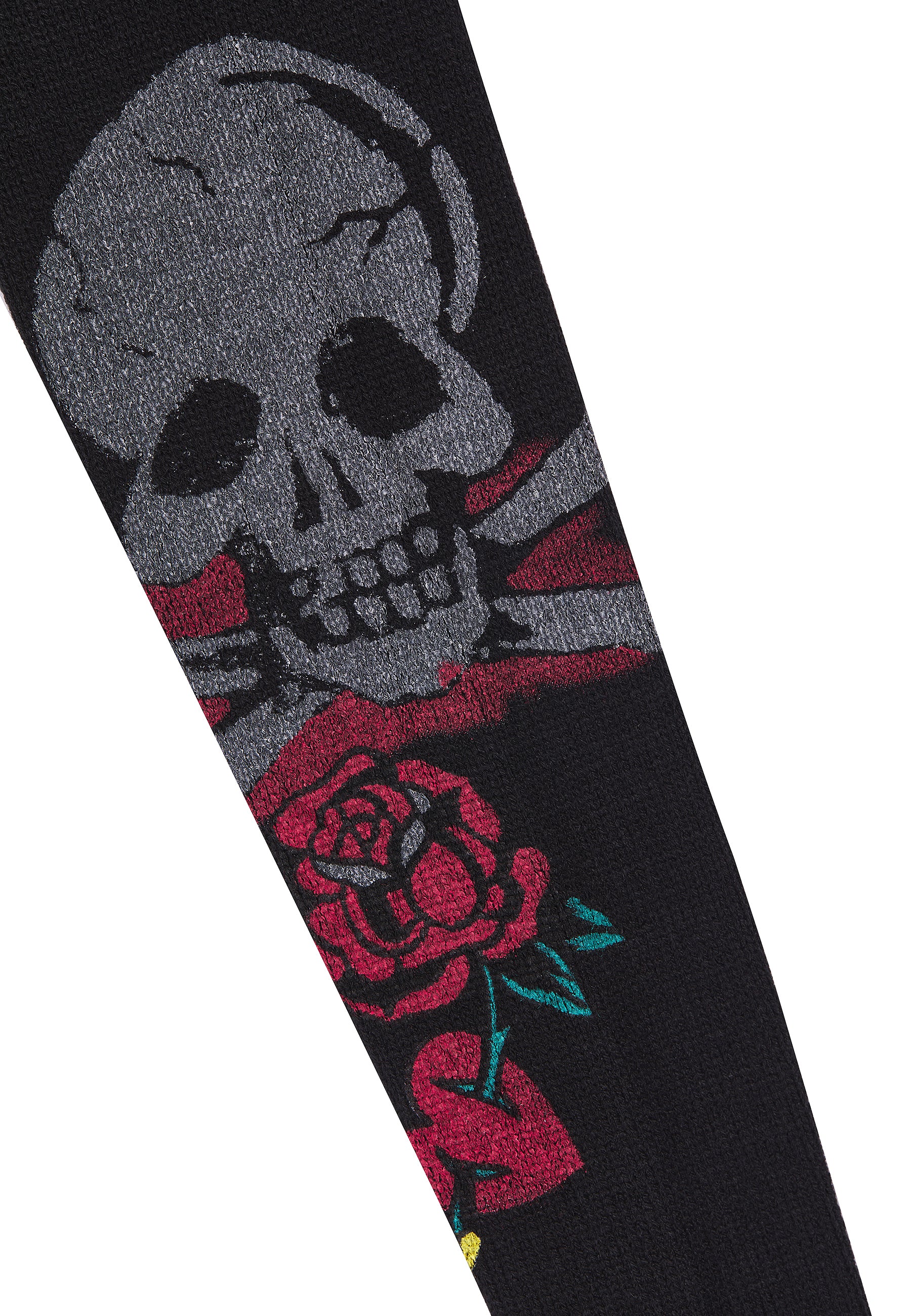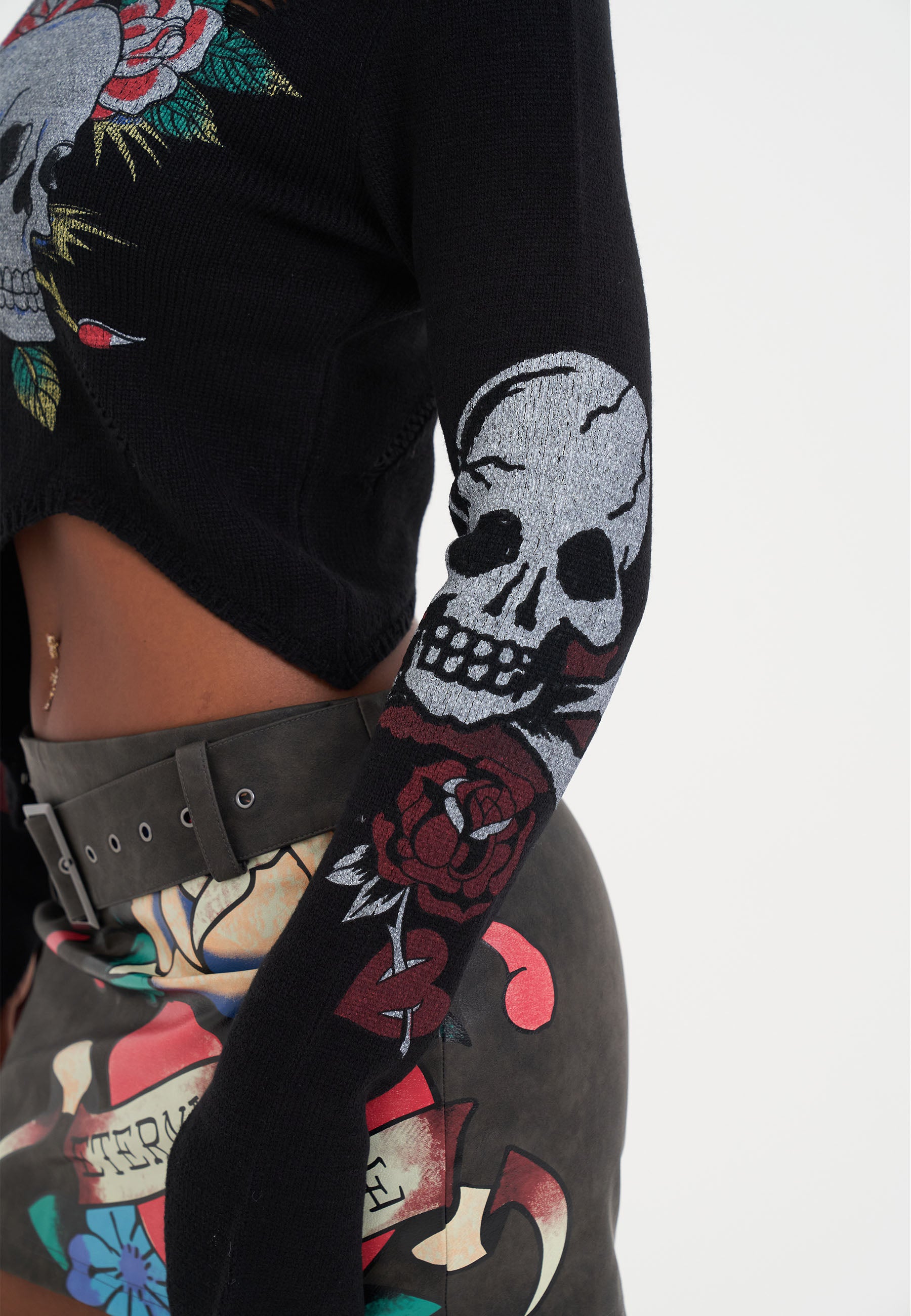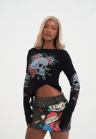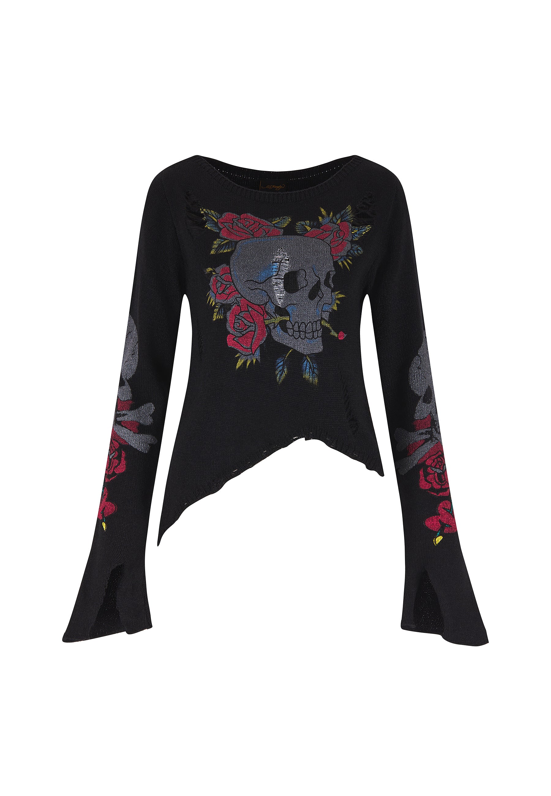 WOMENS SKULL AND ROSES DISTRESSED KNITTED JUMPER in Black