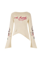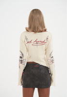 Womens Skull And Roses Distressed Knitted Jumper - Ecru