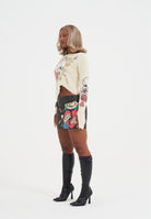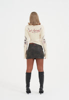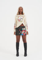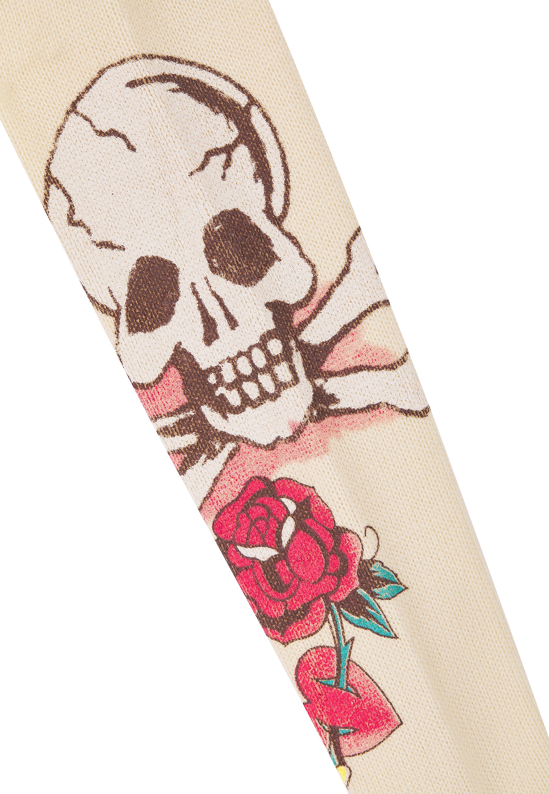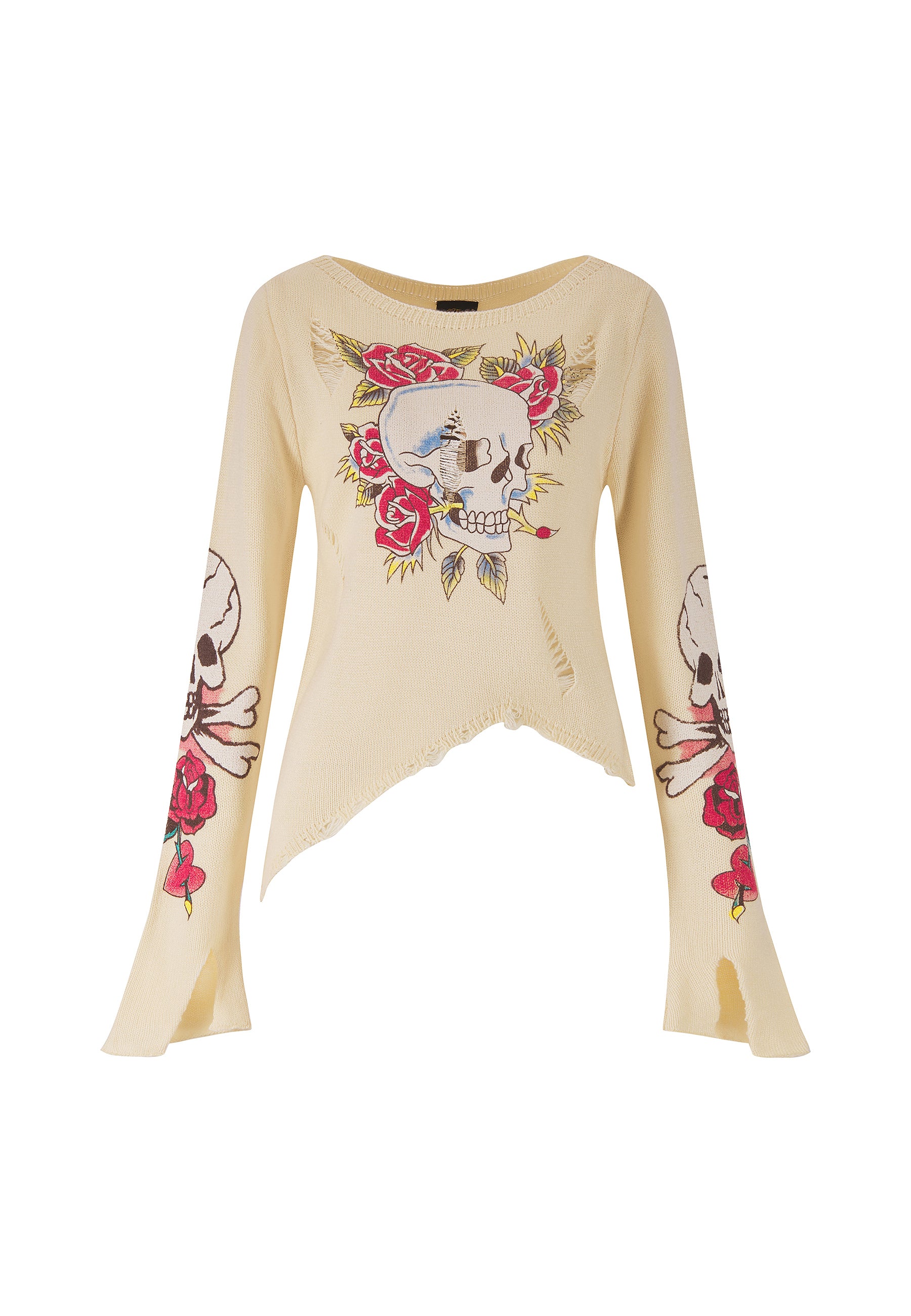 WOMENS SKULL AND ROSES DISTRESSED KNITTED JUMPER in Ecru