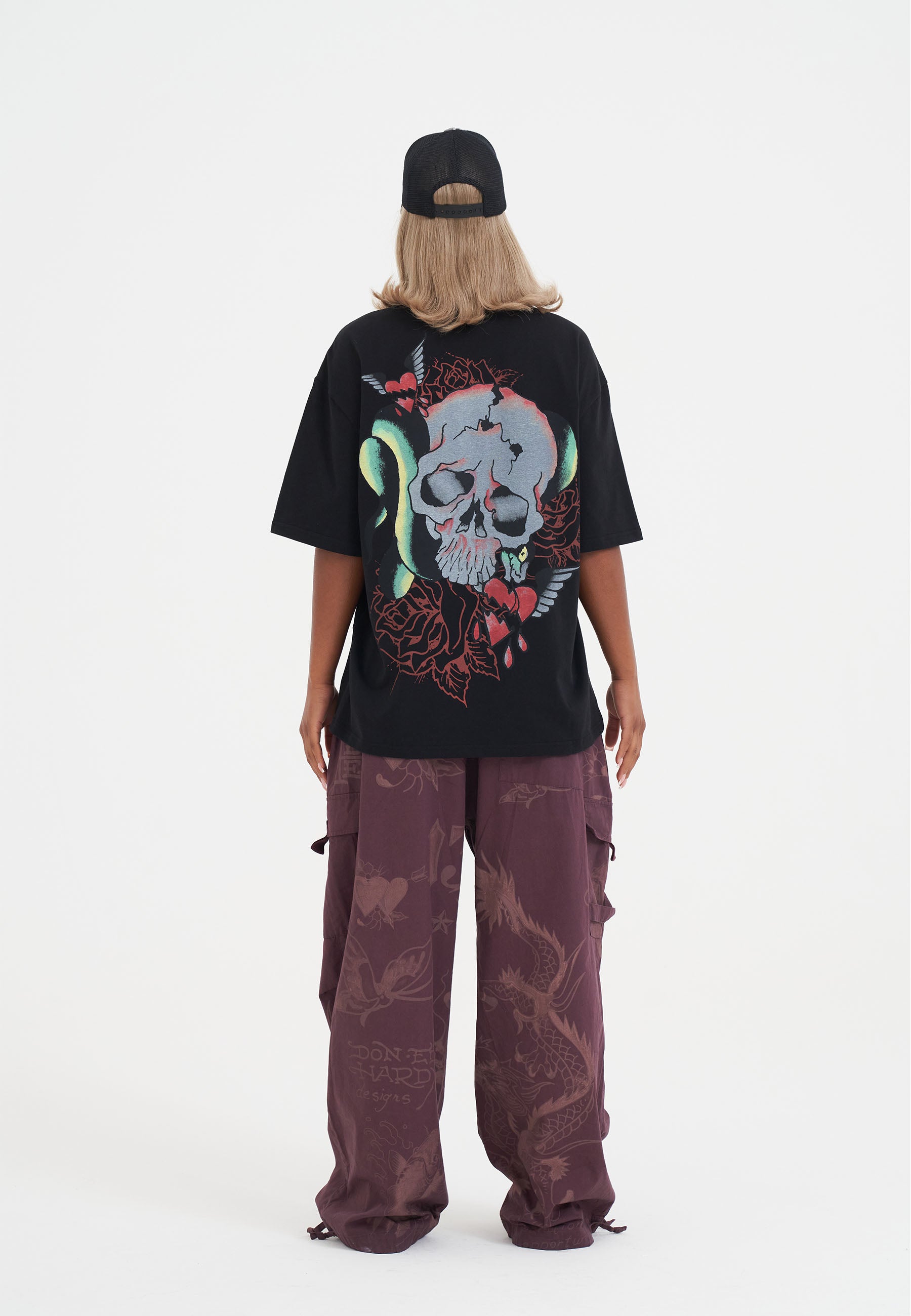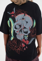 WOMENS SNAKE SKULL BACKPRINT T-SHIRT in Black