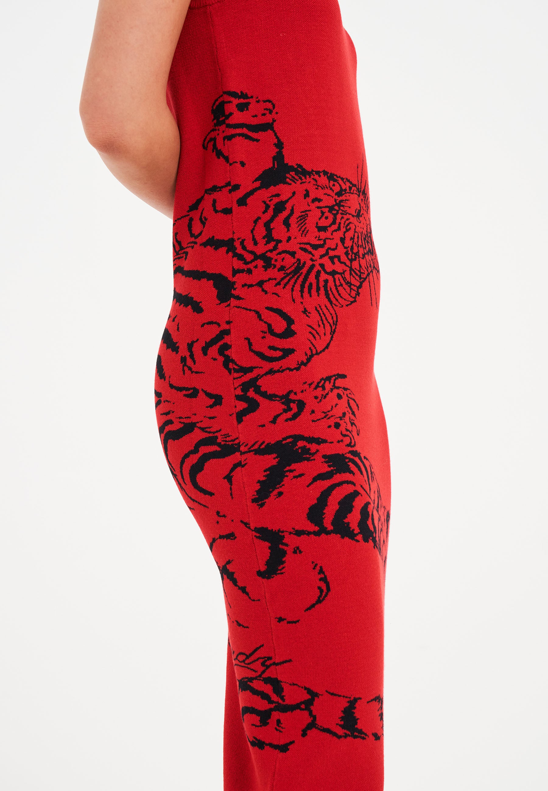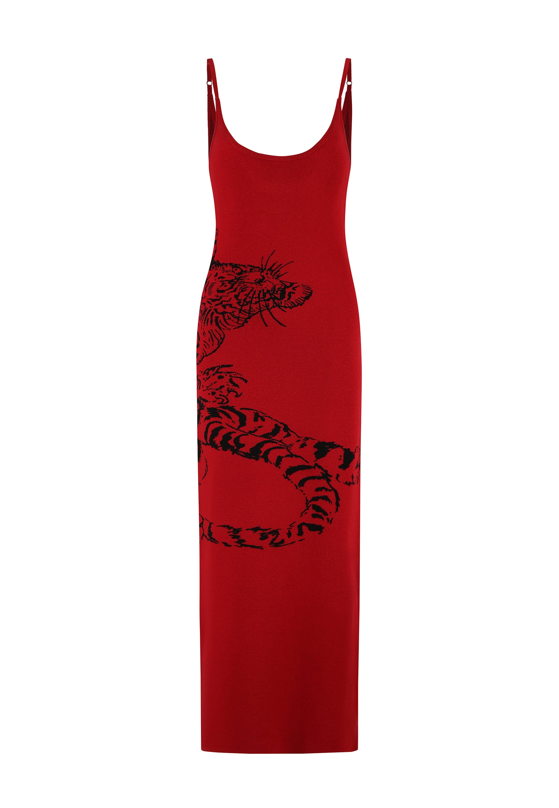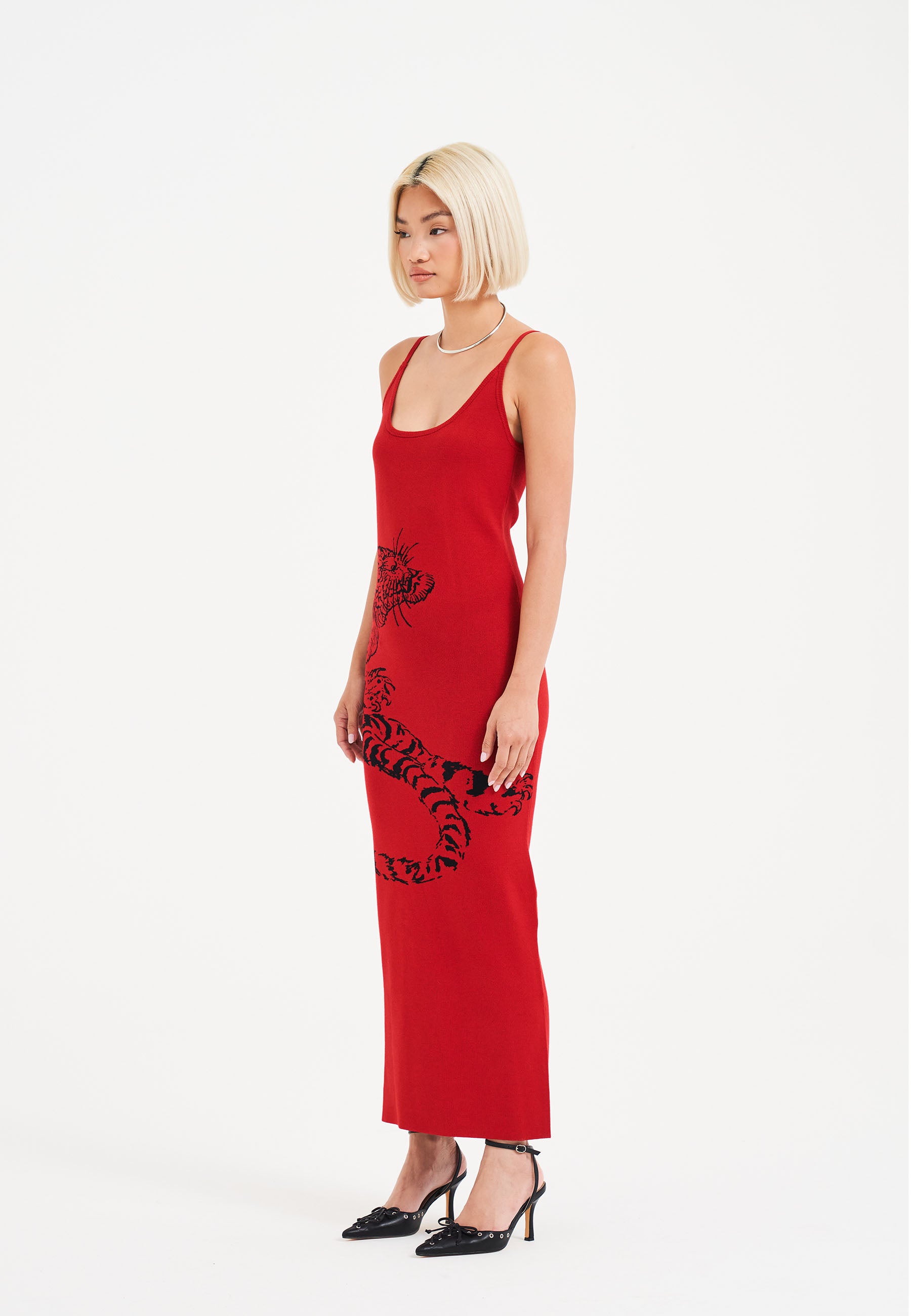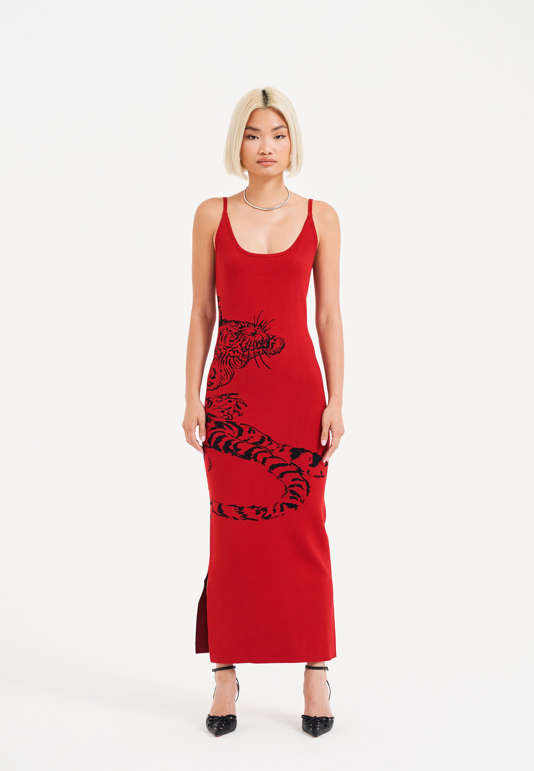 Womens Snow Tiger Knitted Maxi Dress - Red