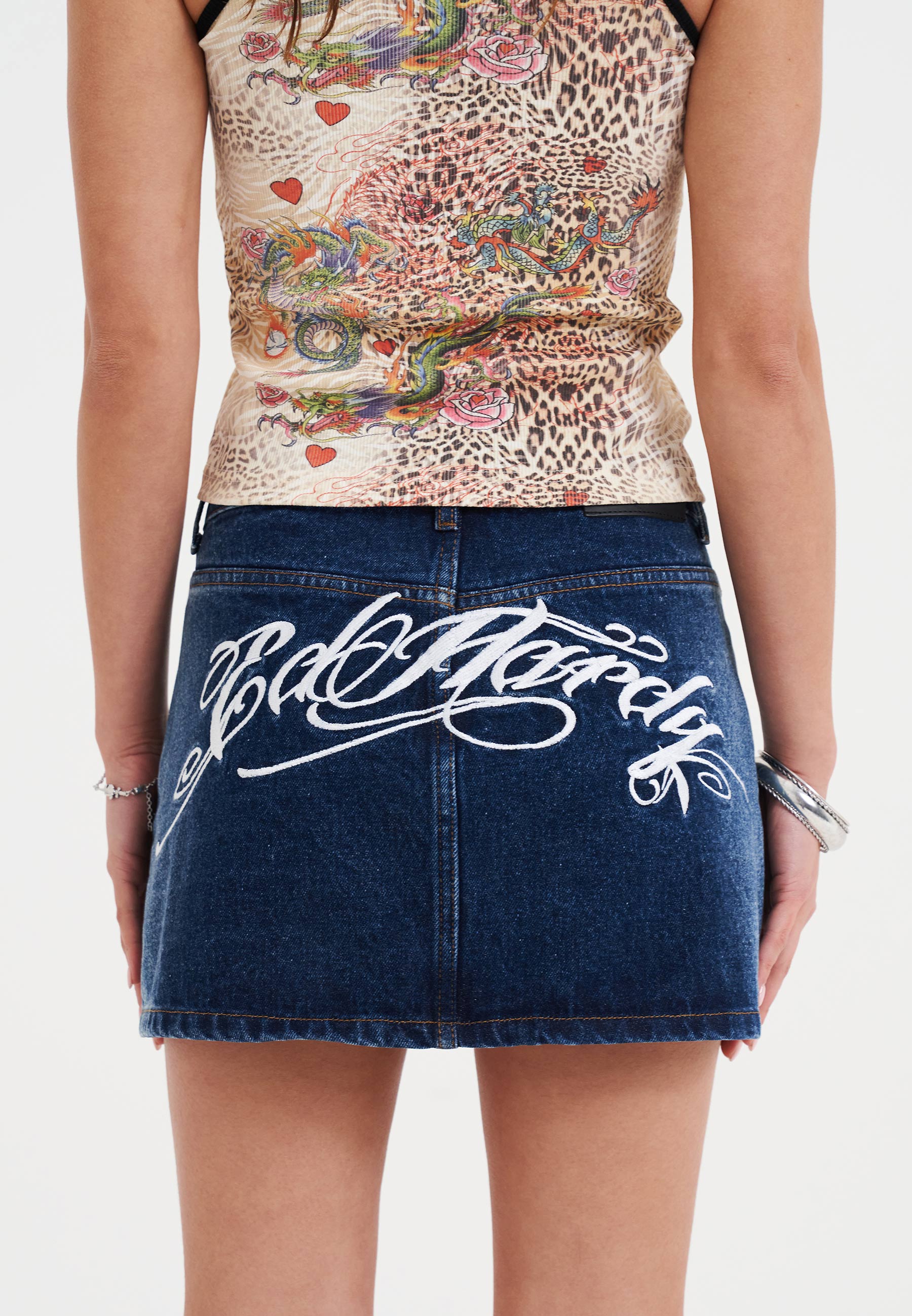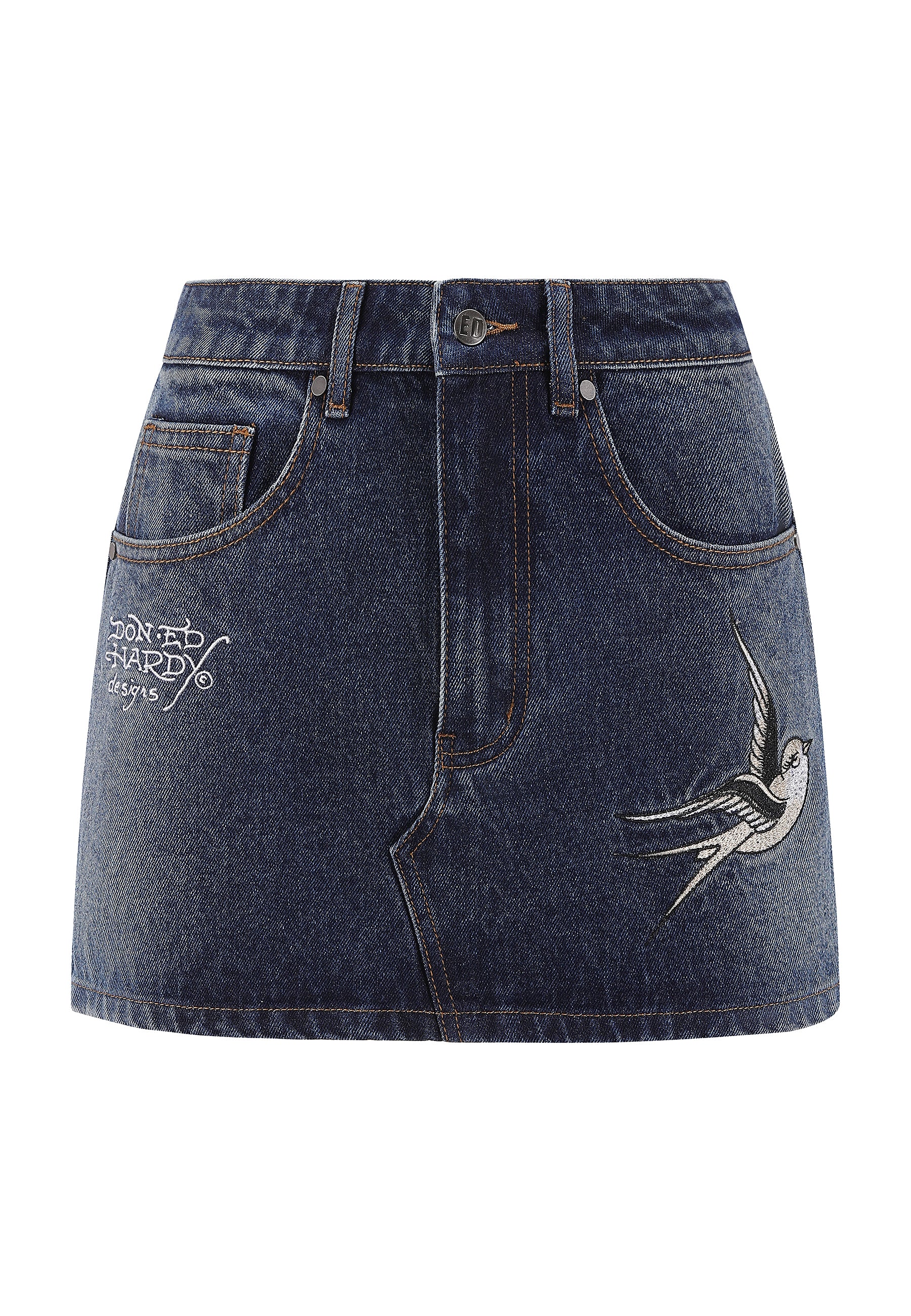 Womens Swallow Side Washed Denim Skirt - Indigo