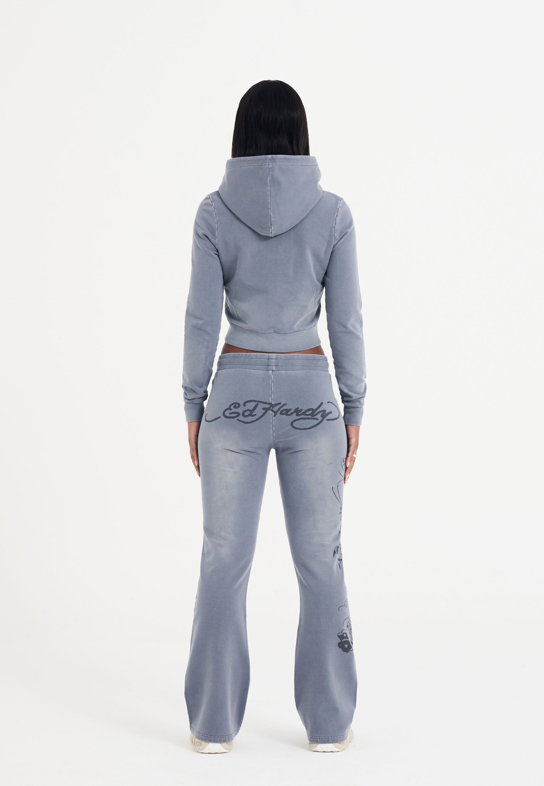 Part of a matching jogger set, these hip-rise, flared-leg pants feature a faded butterfly graphic, synonymous with Ed’s iconic tattoo art.
