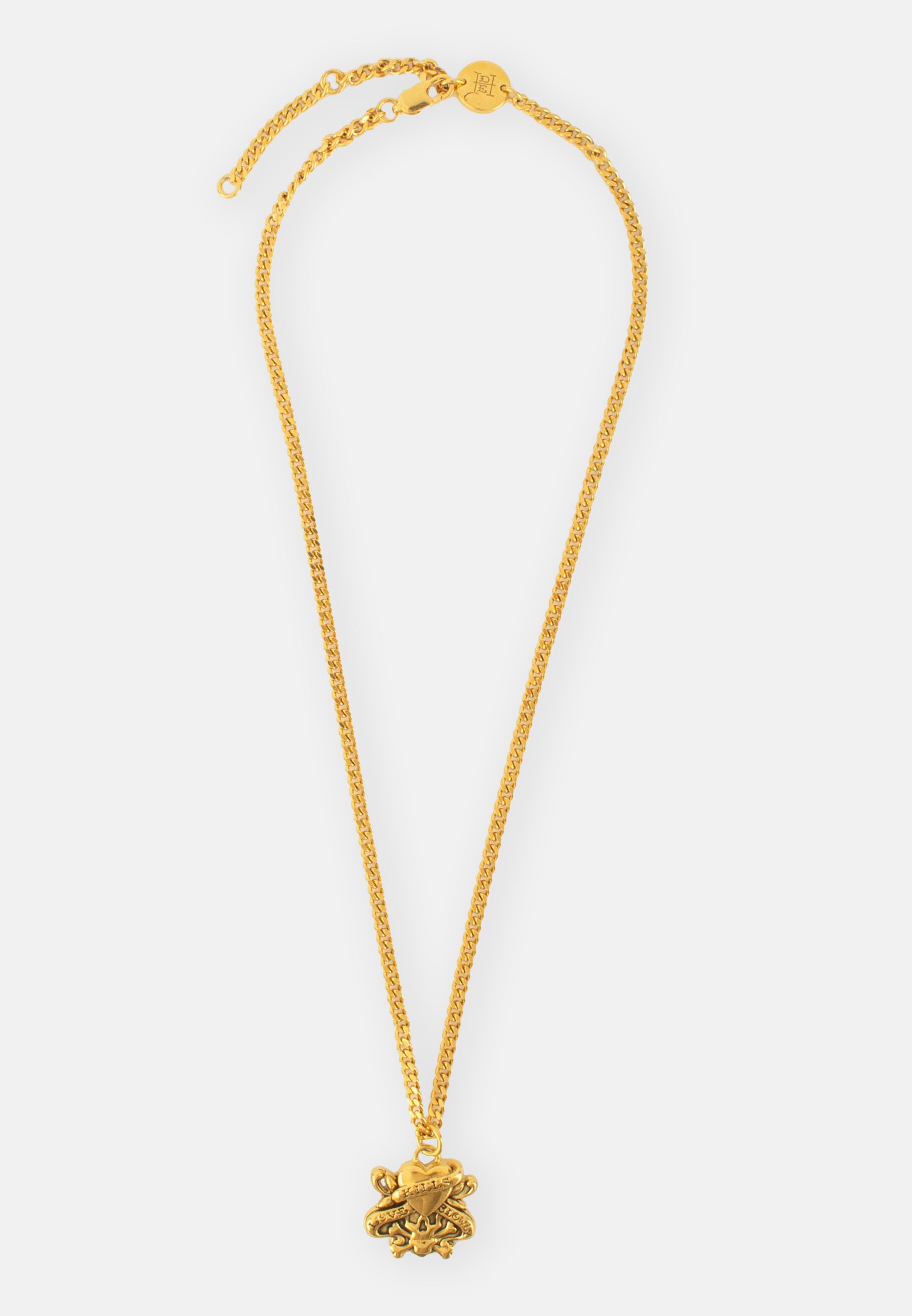 Ed Hardy Mini Flaming Heart Charm Necklace - Gold
