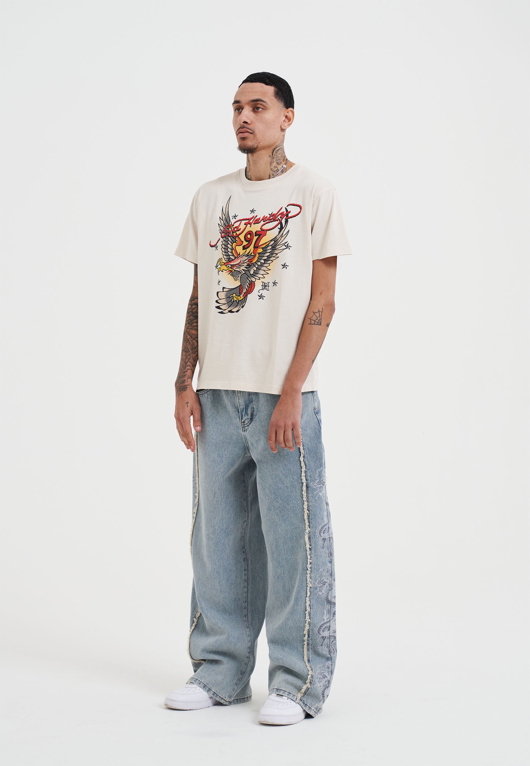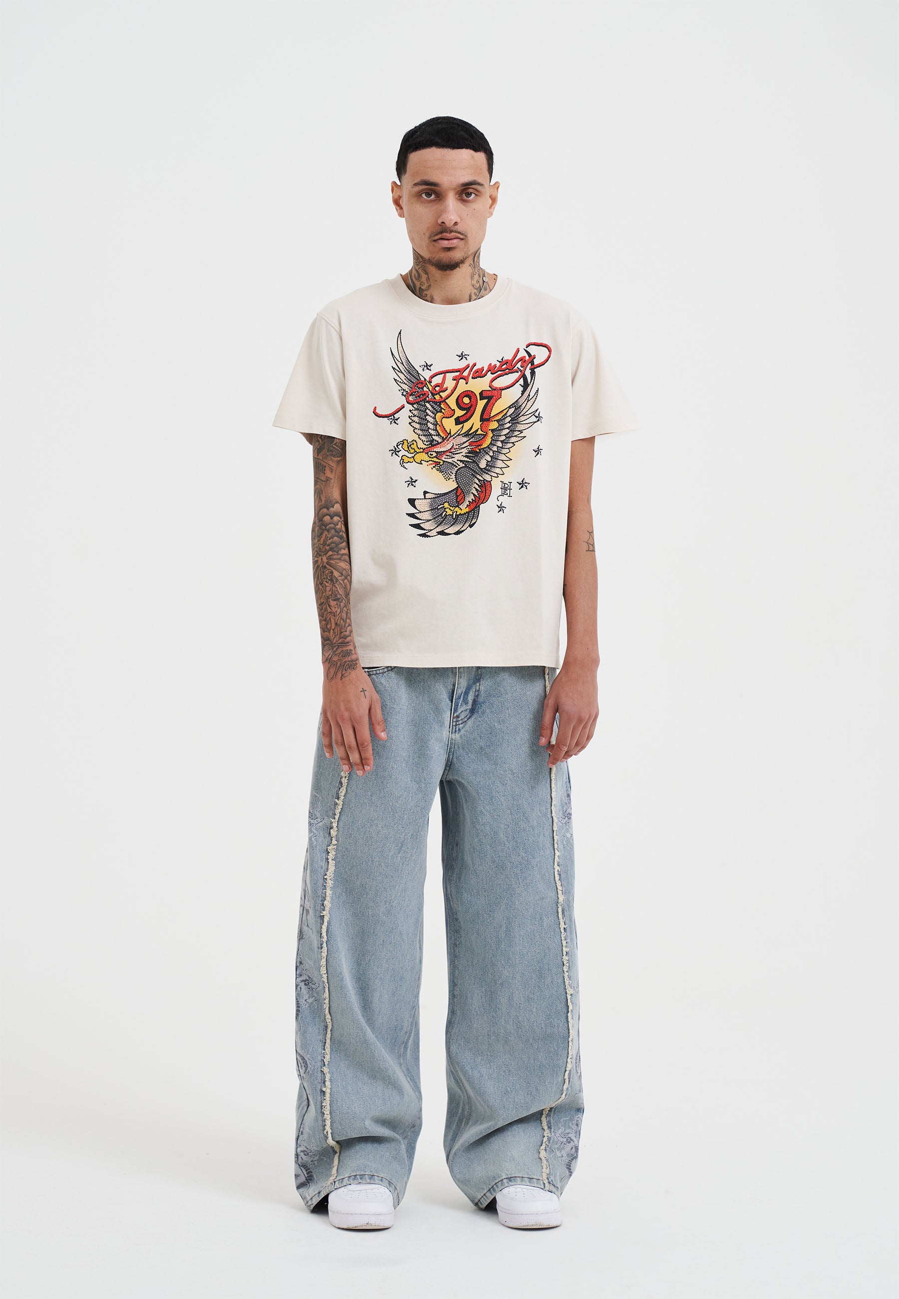 Mens 97 Eagle Diamante T-Shirt - Beige