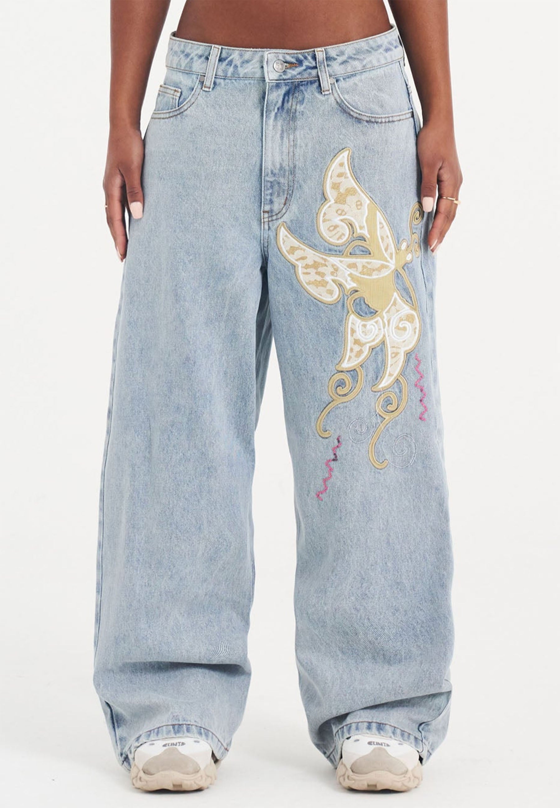 Womens Antique Butterfly Xtra Denim Trousers Jeans - Mid Blue