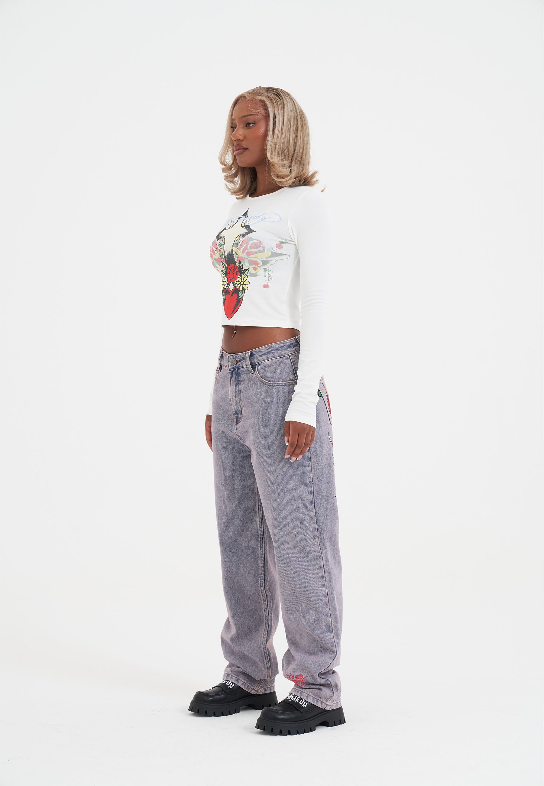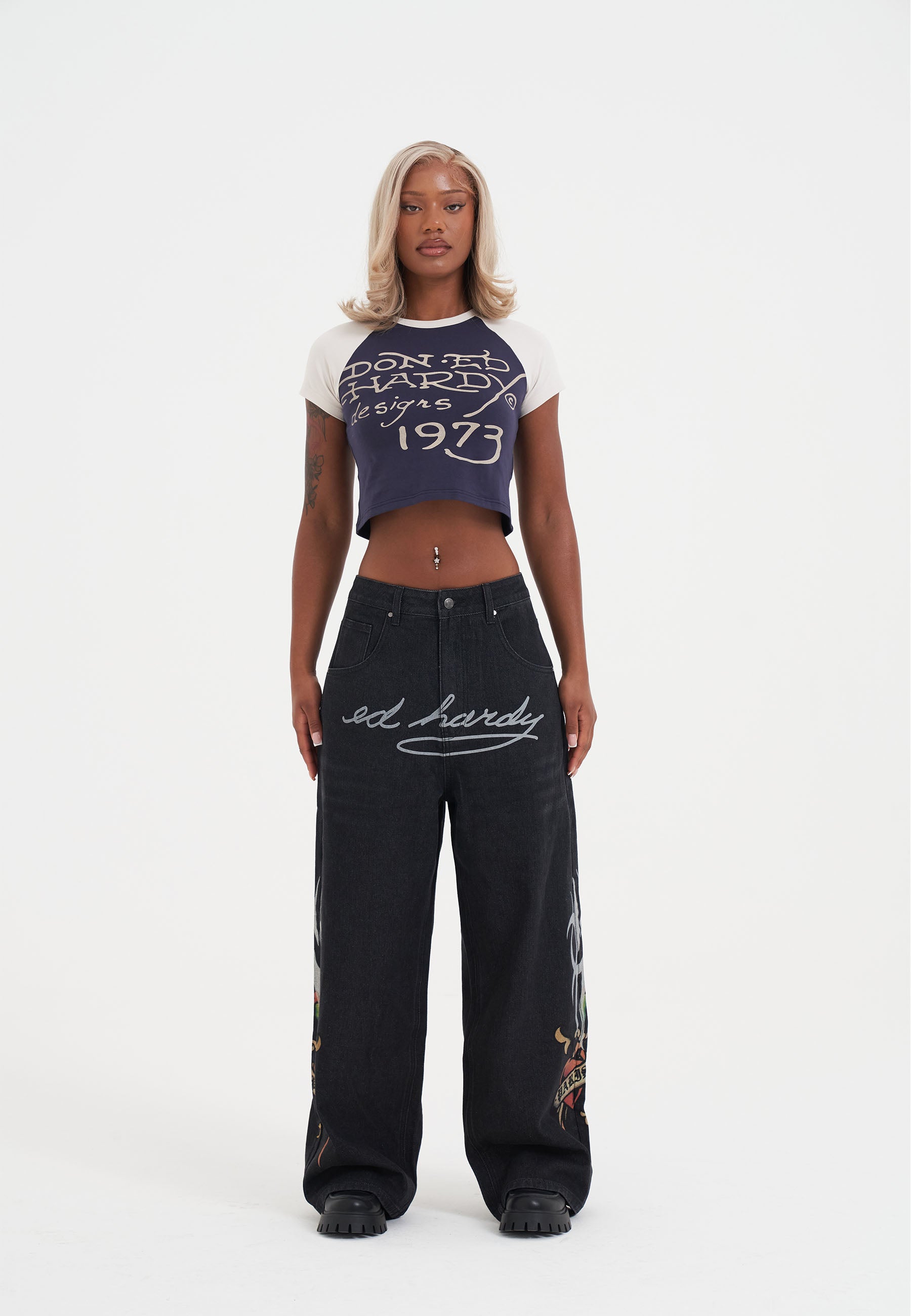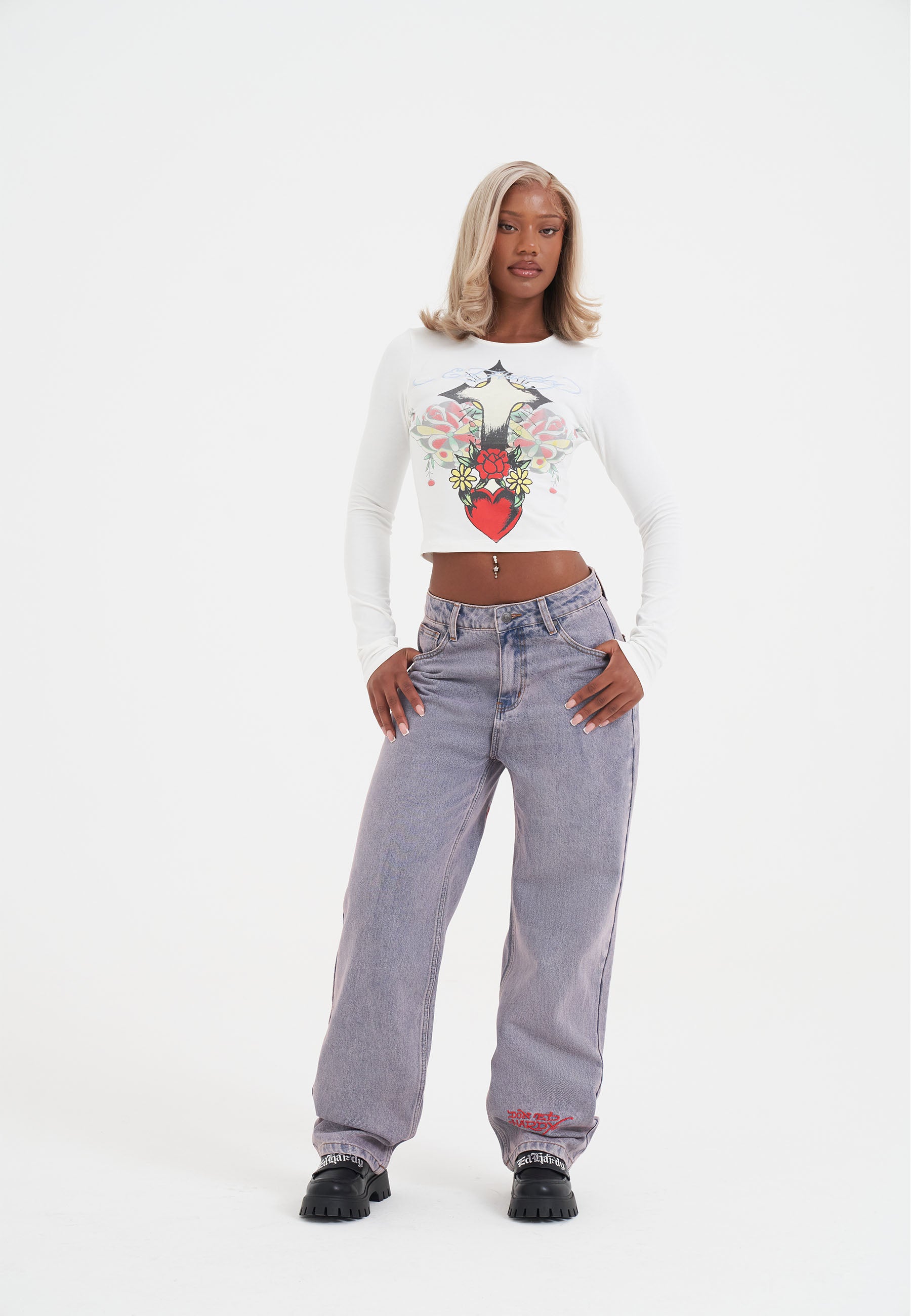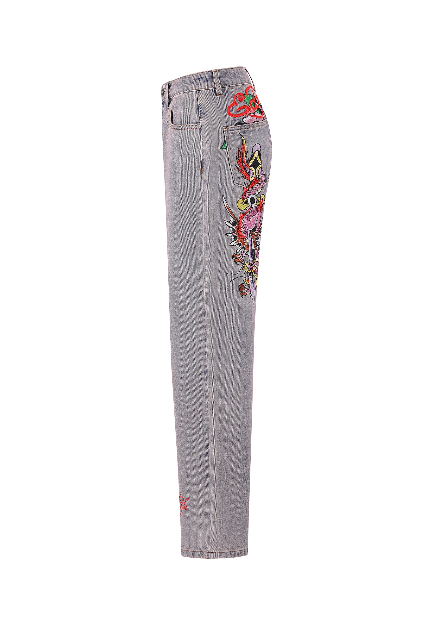 Womens Dragon And Sword Relaxed Jeans - Purple