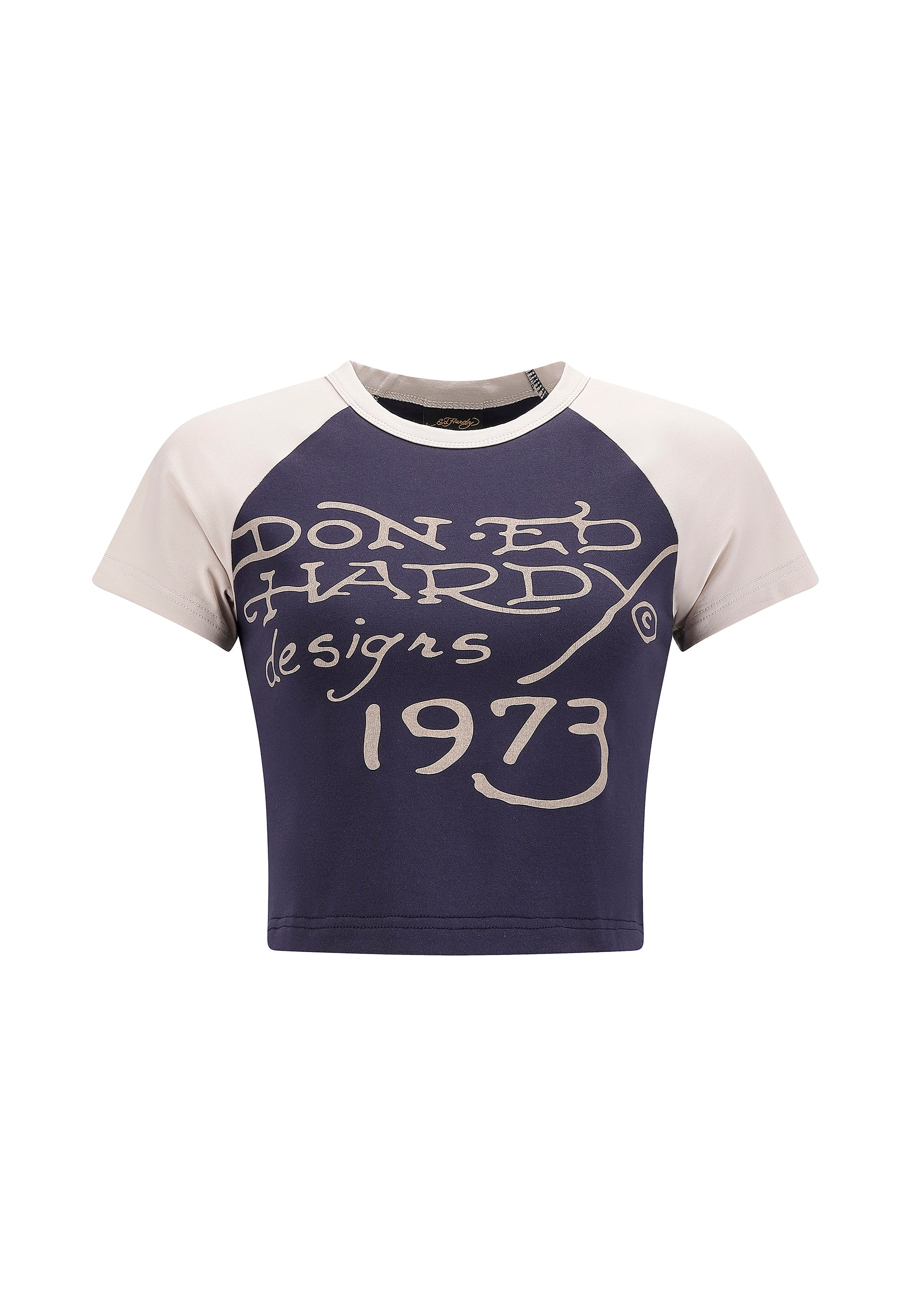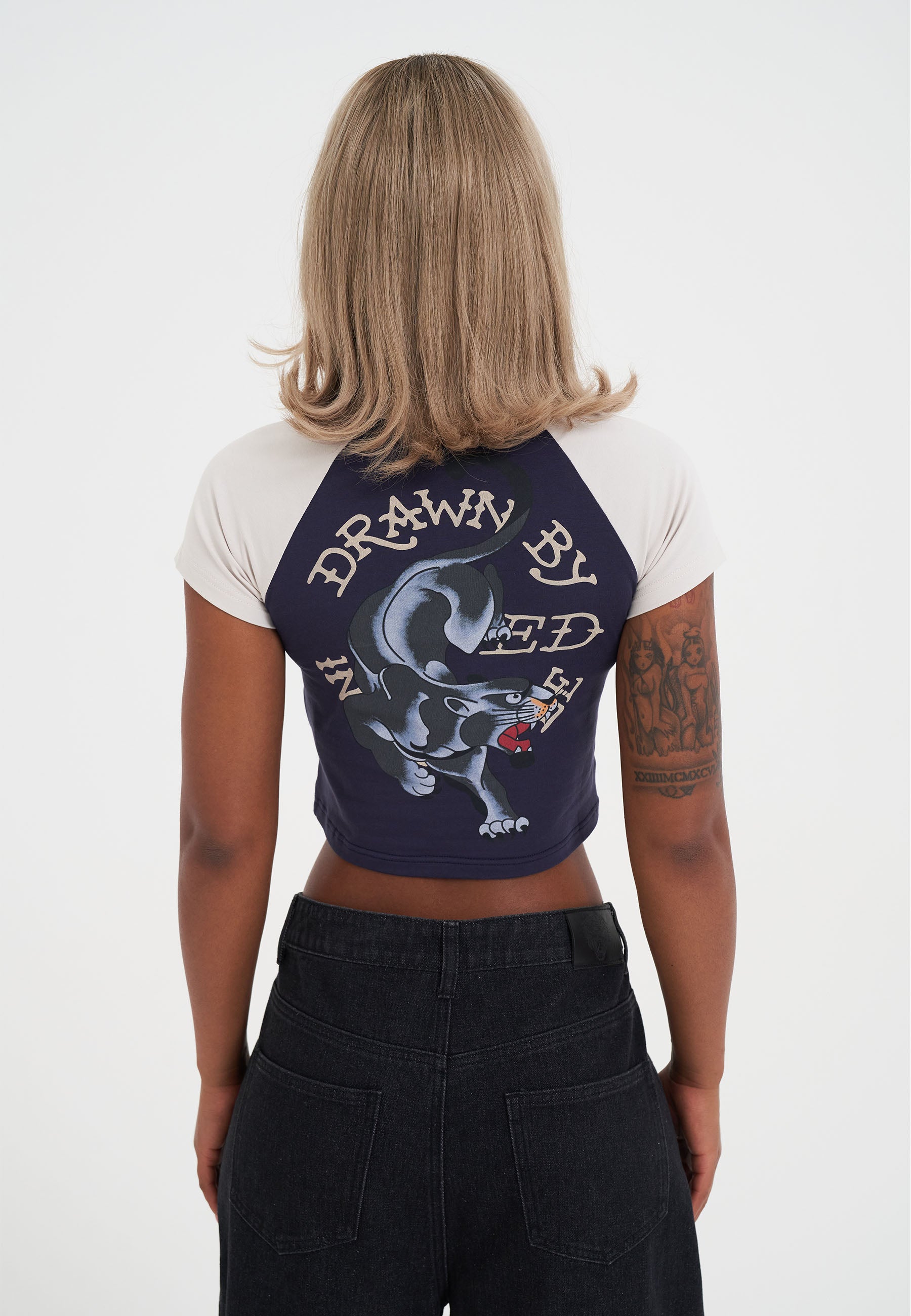 Womens Drawn Panther Ringer Baby T-Shirt Top - Navy