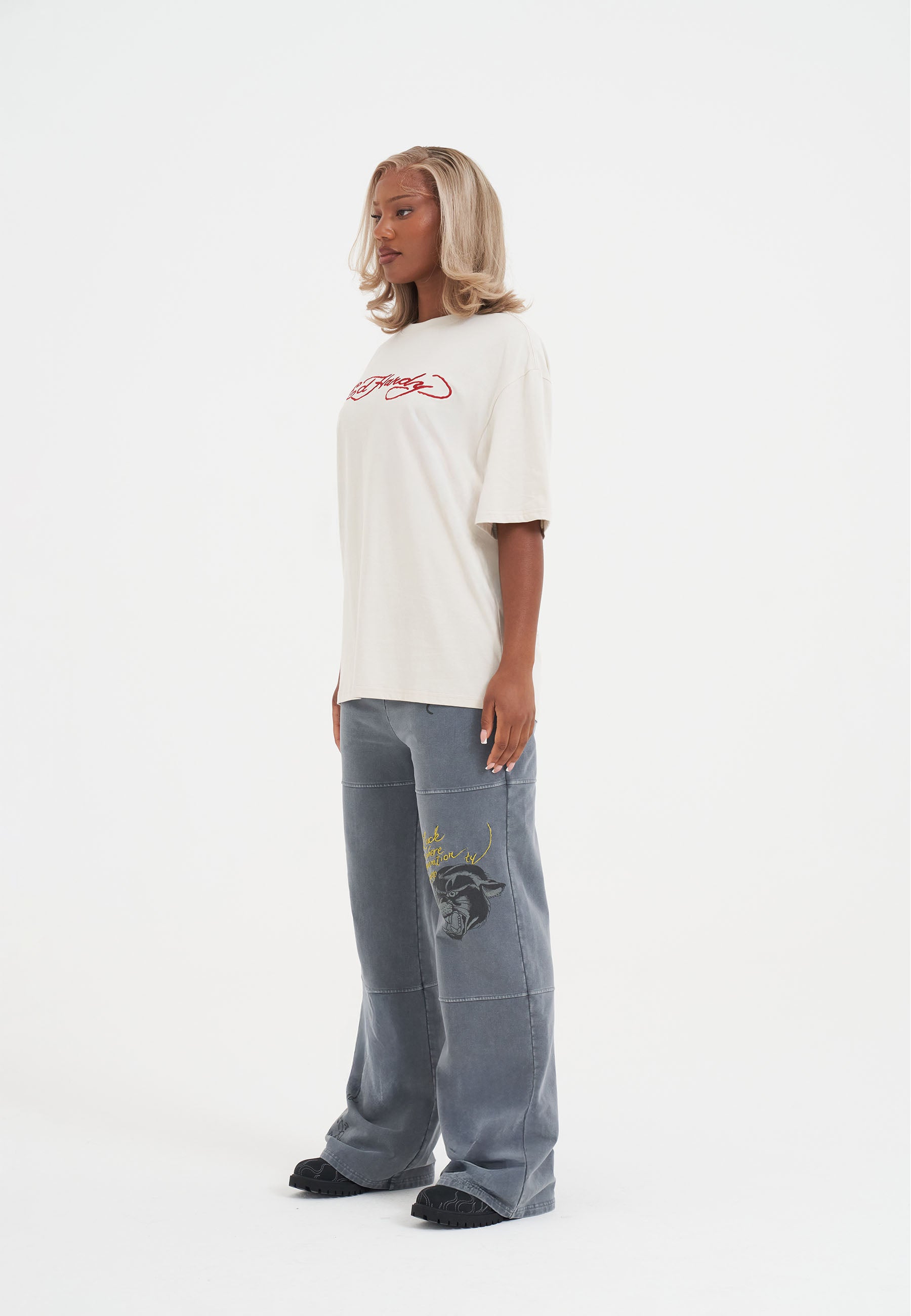 Damen La Tiger Vintage Diamante T-Shirt - Grau