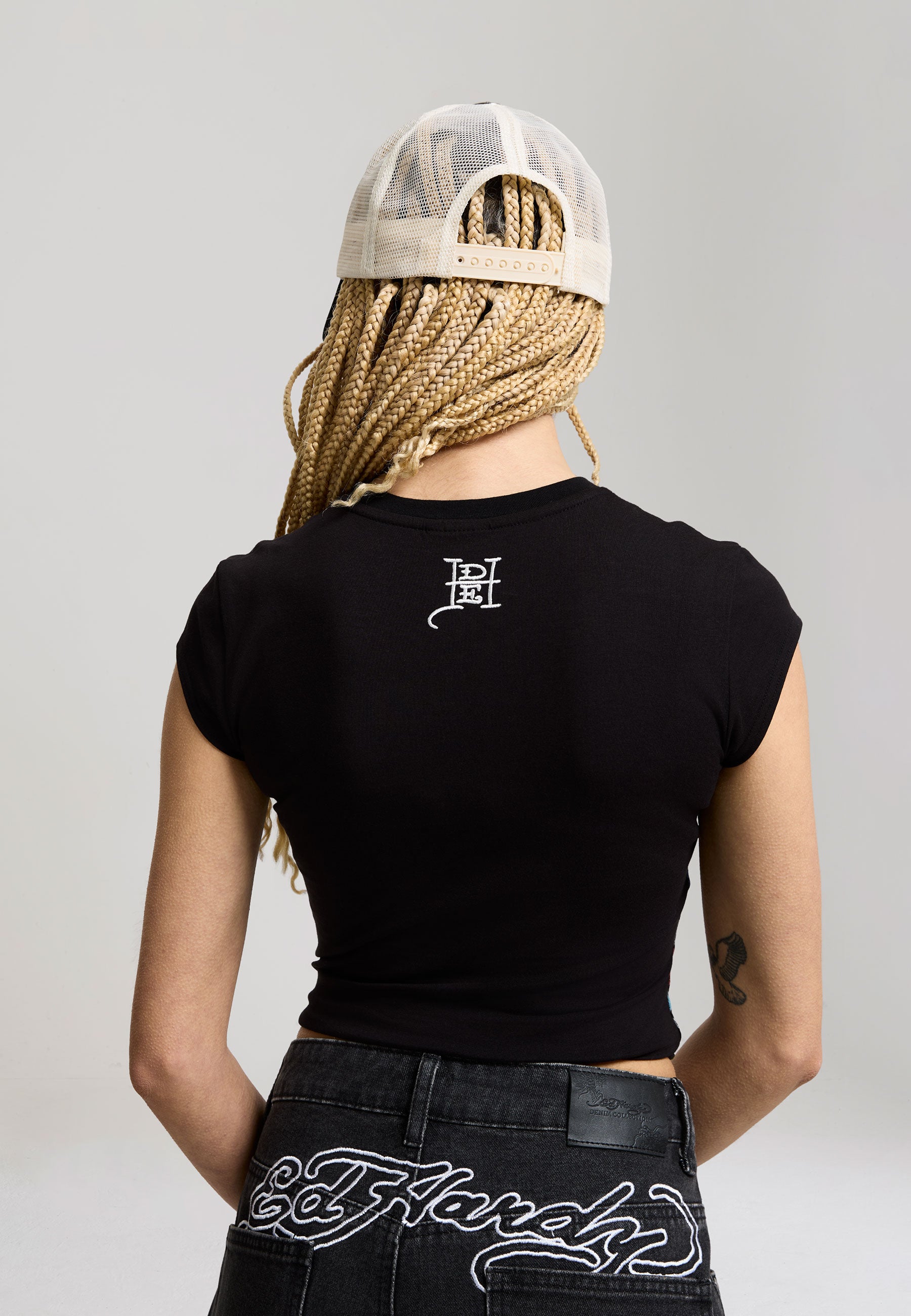 Womens Varsity Dragon Cap Sleeve Tee - Black