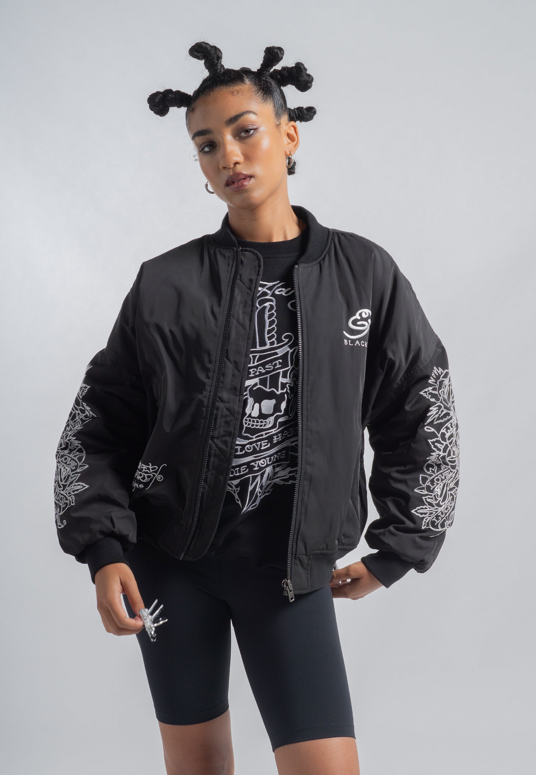 Damen Bomberjacke „Snake & Dagger Tonal“ – Schwarz