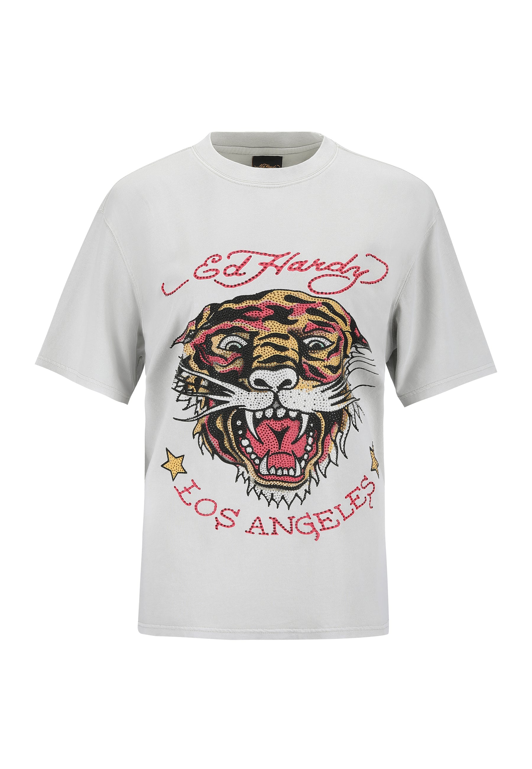 Das LA Tiger Diamante T-Shirt wertet Eds ikonisches Kunstwerk durch aufwendige Strassapplikationen auf und ist ein unverzichtbarer Kauf. Übertreffen Sie alle Erwartungen mit dem vollfarbigen Strass-Design.