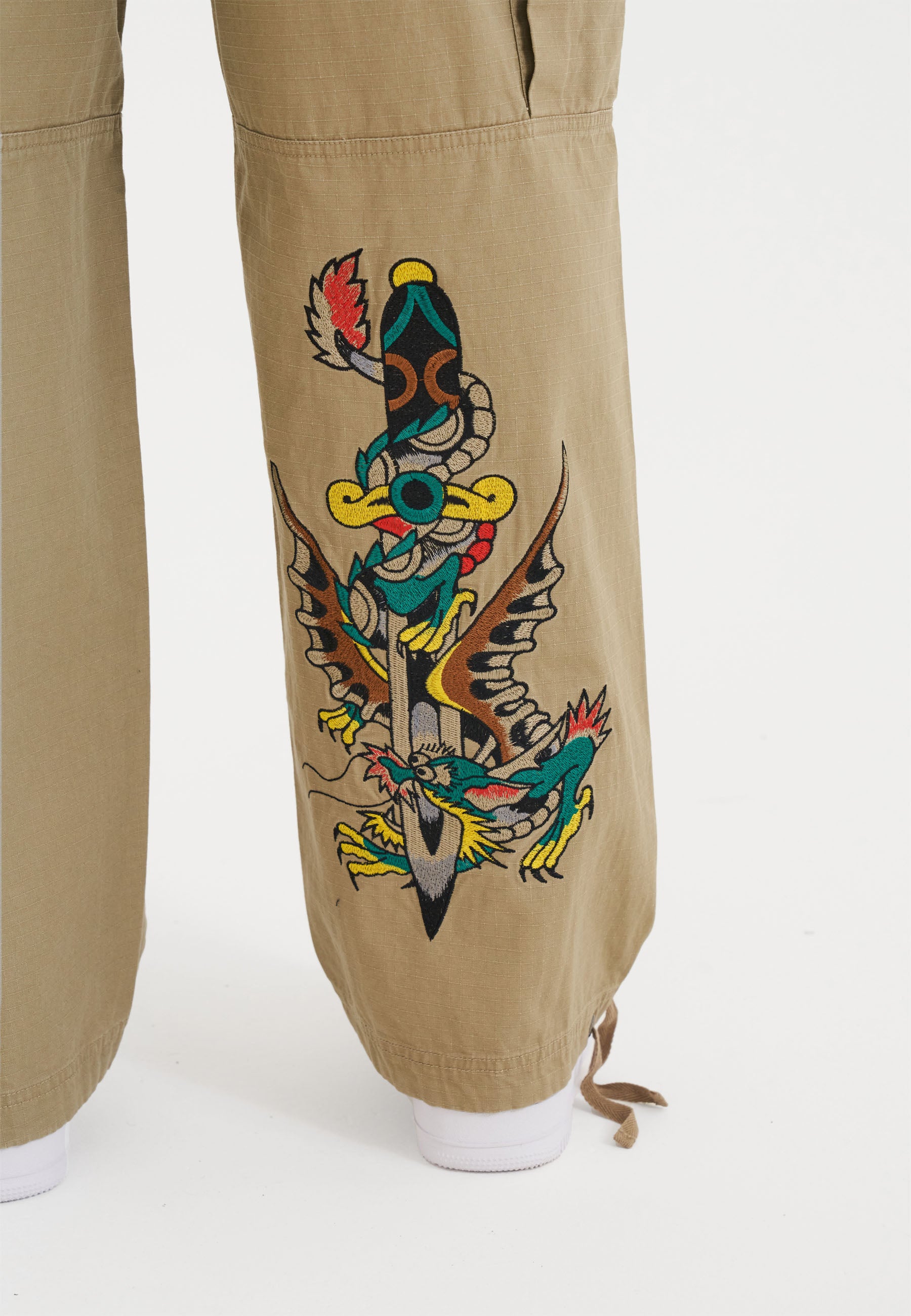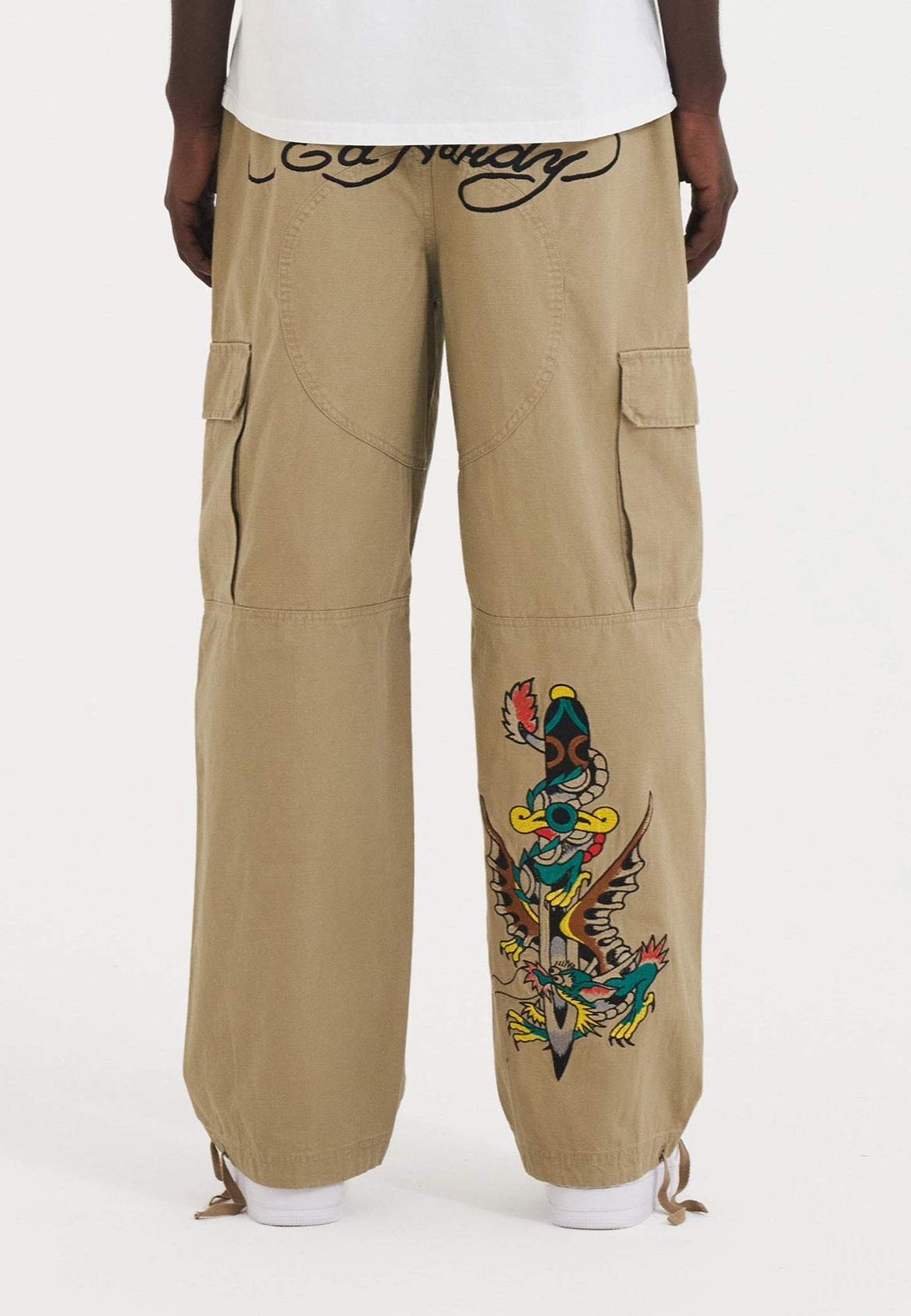 Herren Sword Dragon Ripstop gewebte Cargohose – Beige