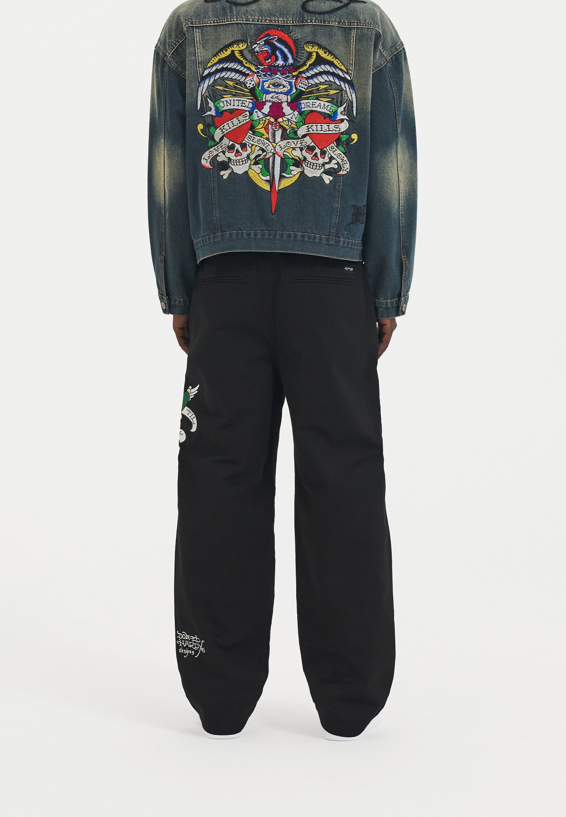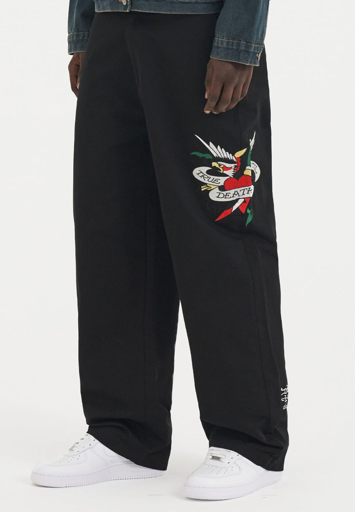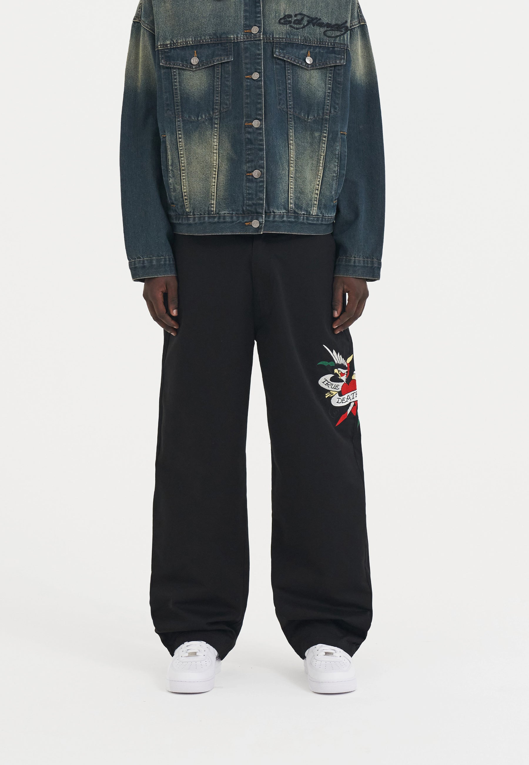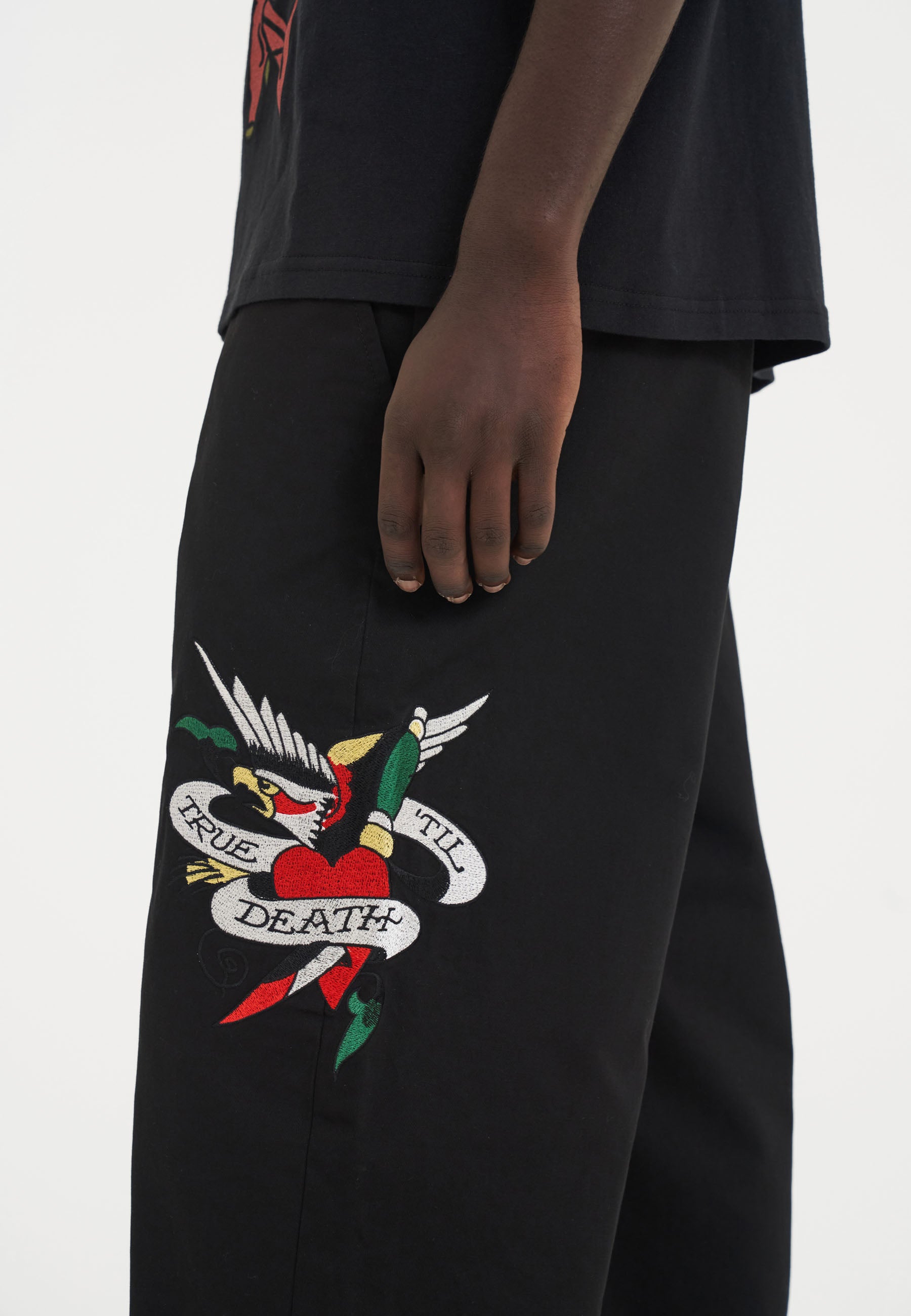 Die True Till Death Baggy Skater Chinos bieten eine entspannte Passform für erstklassigen Komfort und Stil – hervorgehoben durch Eds berühmte gestickte True Til Death-Designergrafik.