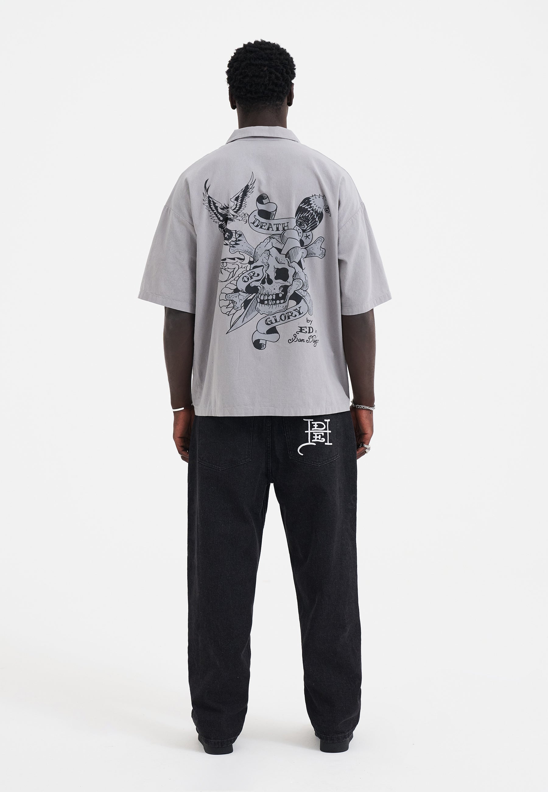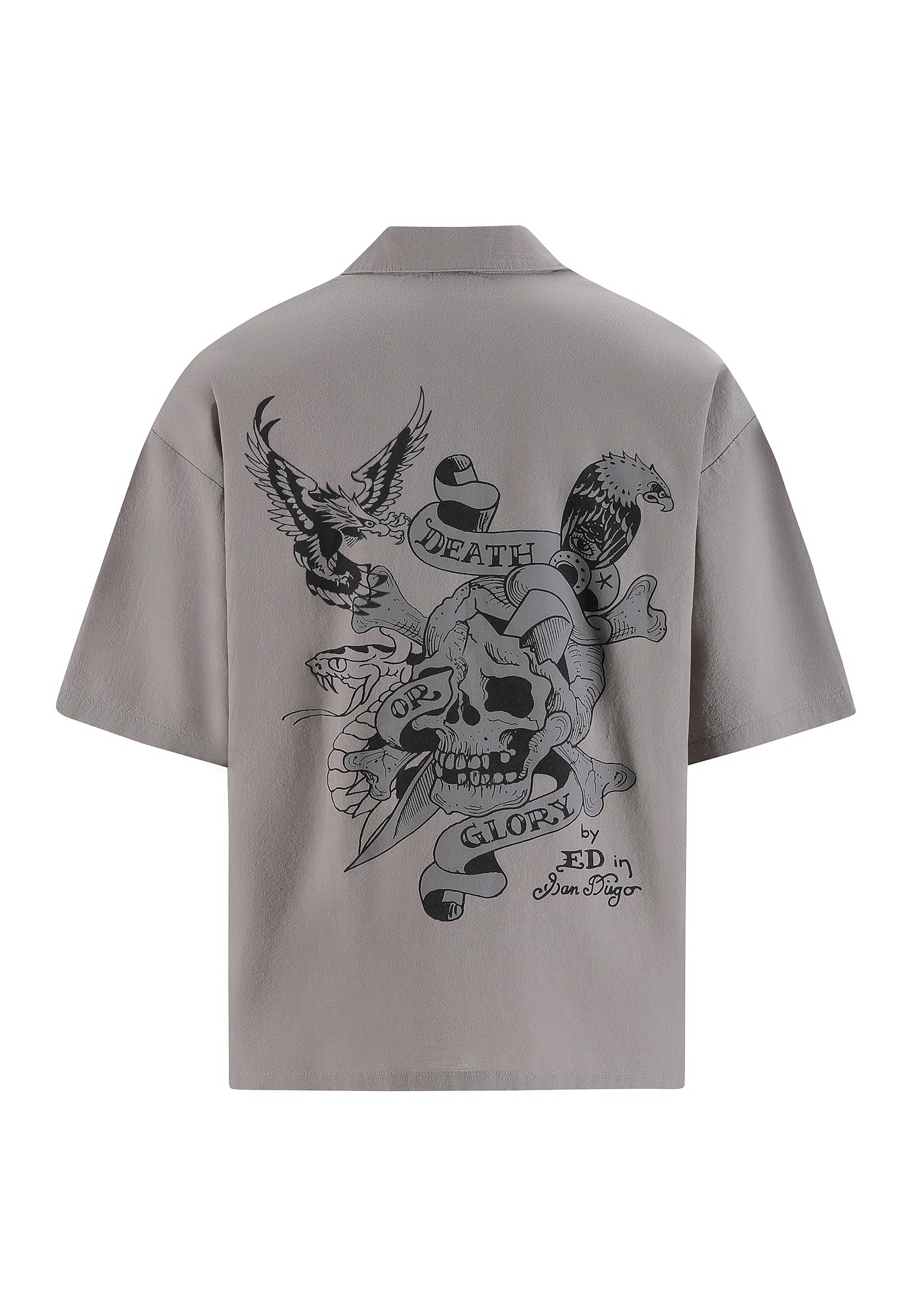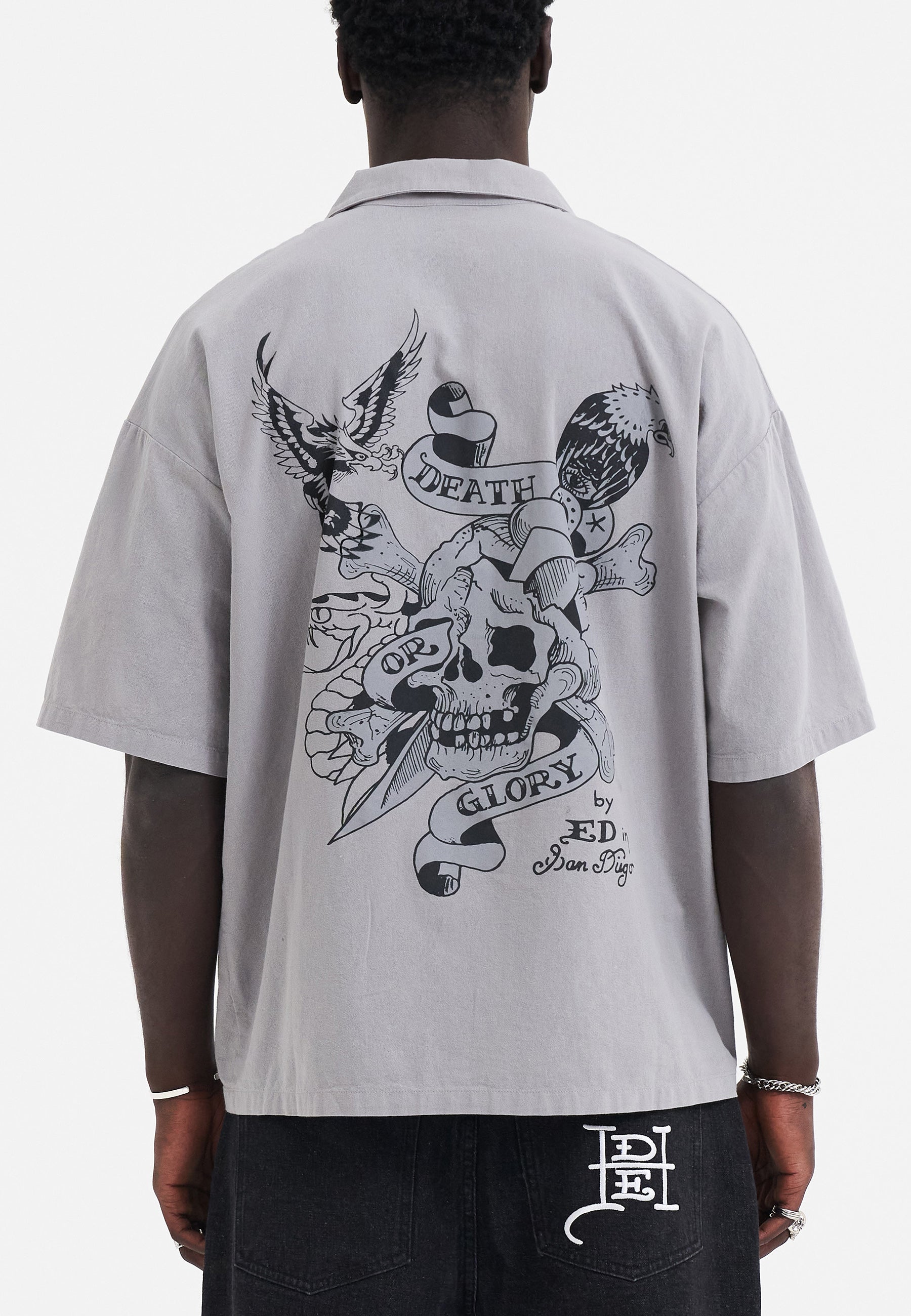 Mens Death Before Glory Mono Printed Camp Shirt - Light Grey