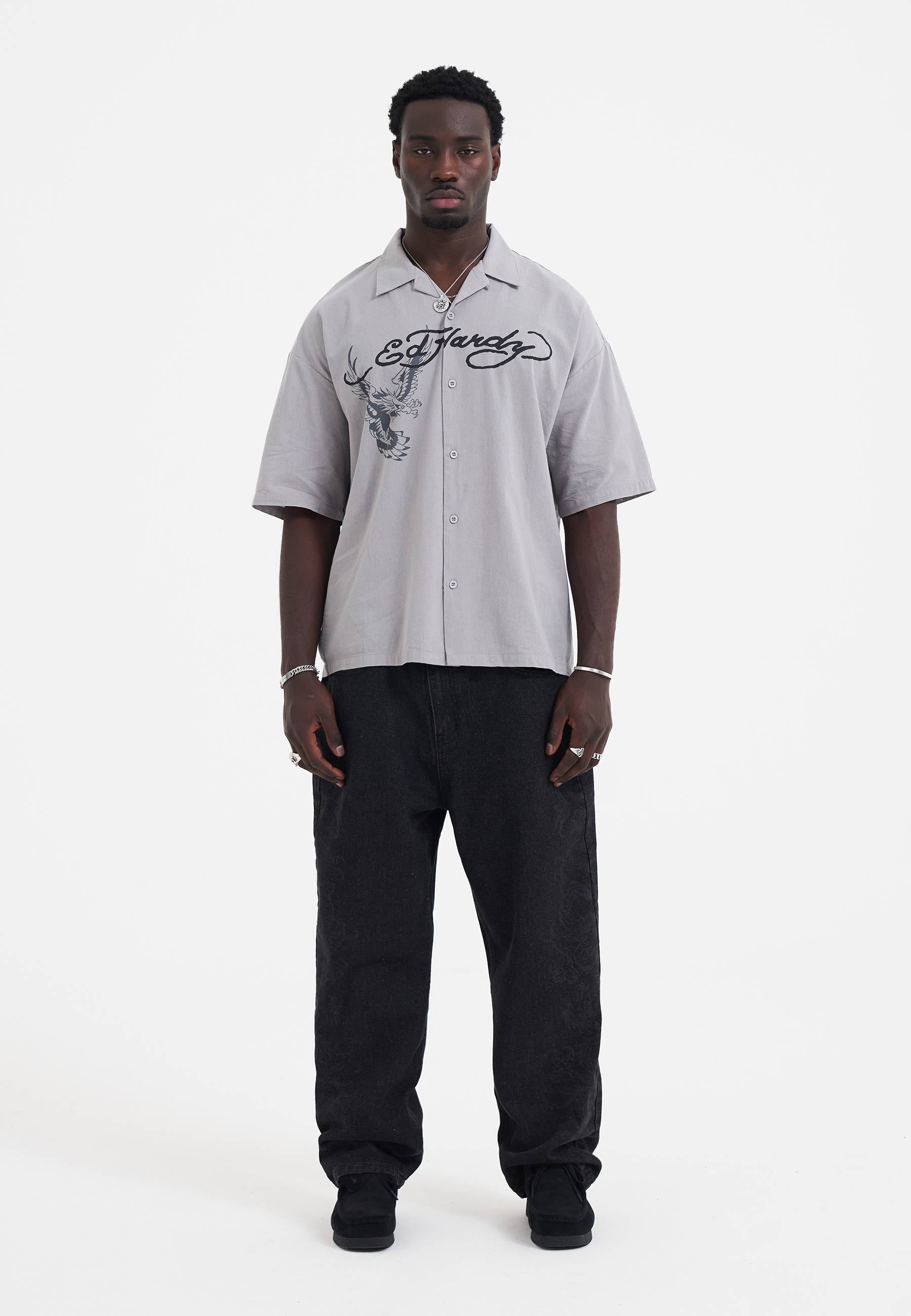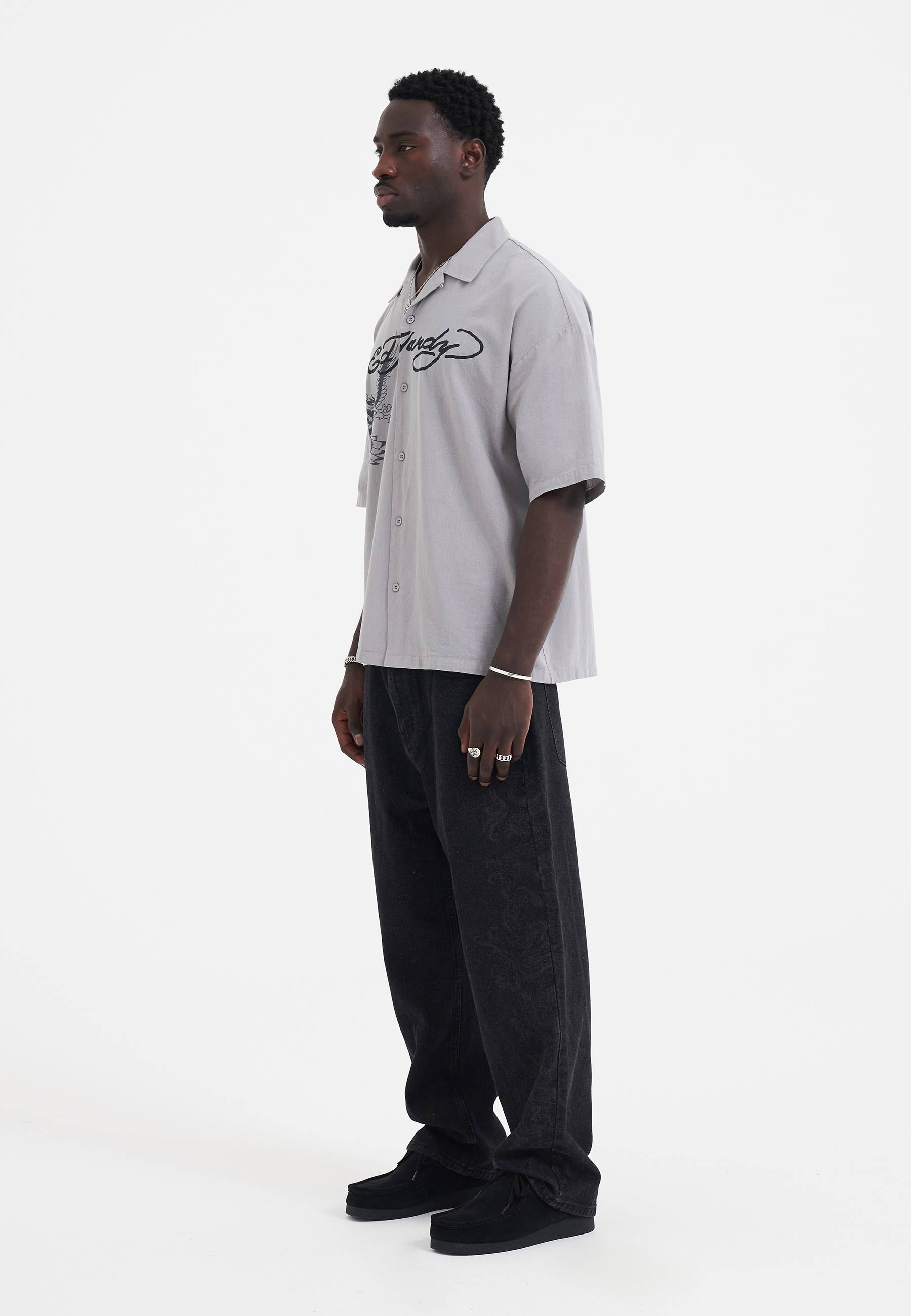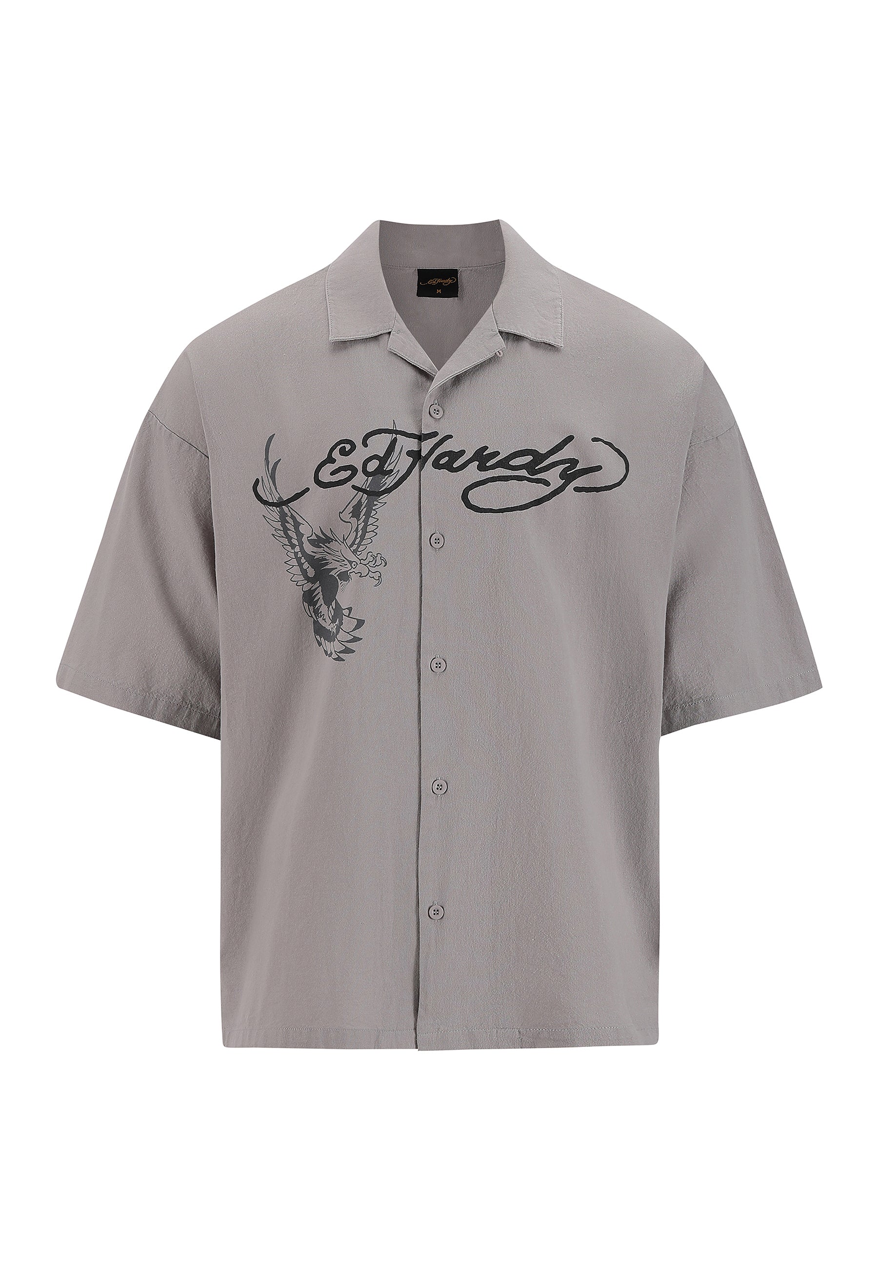 Mens Death Before Glory Mono Printed Camp Shirt - Light Grey