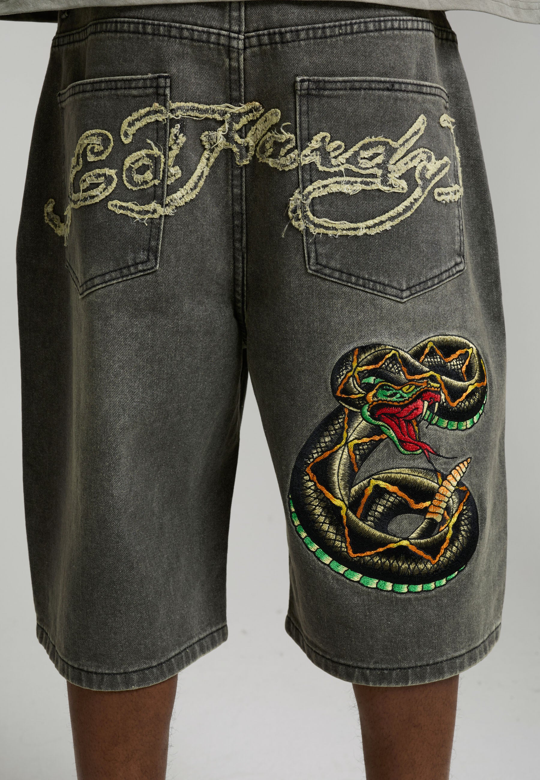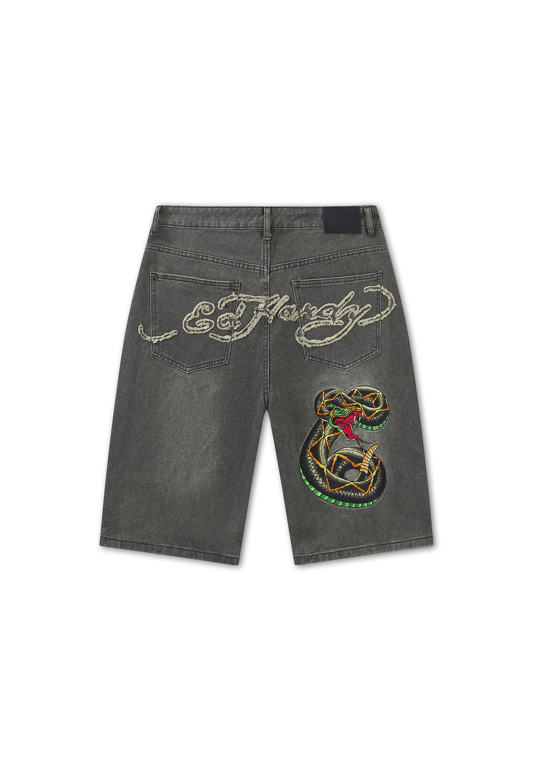 Mens Desert Snake Relaxed Denim Jort - Black Sandy Wash