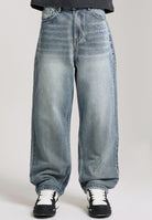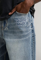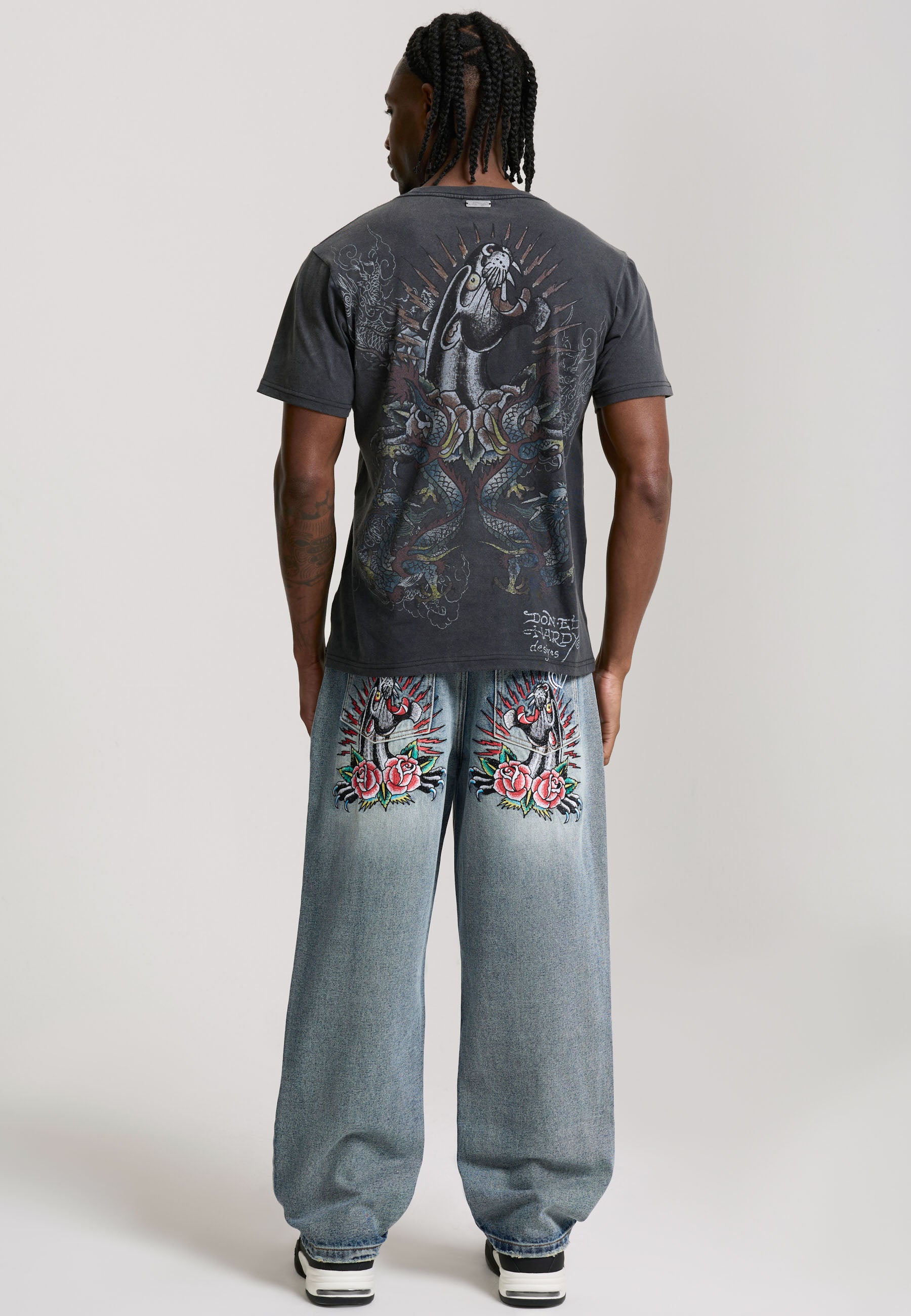 Mens Embroidered Panther Relaxed Jeans - Blue Blasted Wash