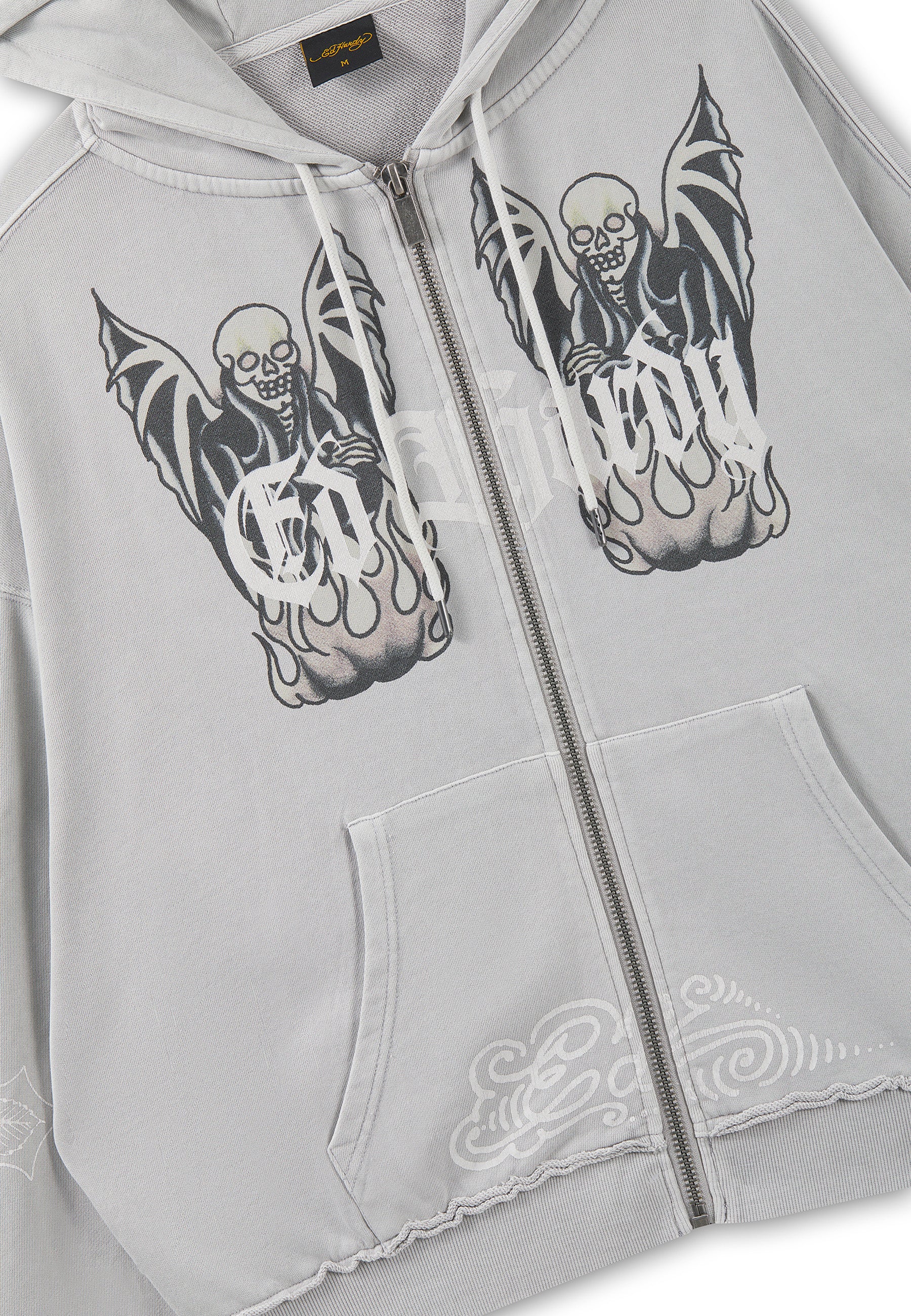 100% COTTON 350GSM BOXY FIT DISTRESSED SEAMS ED HARDY METAL TAB DETAIL KANGAROO POCKET ED HARDY SKULL GRAPHIC GARMENT DYE